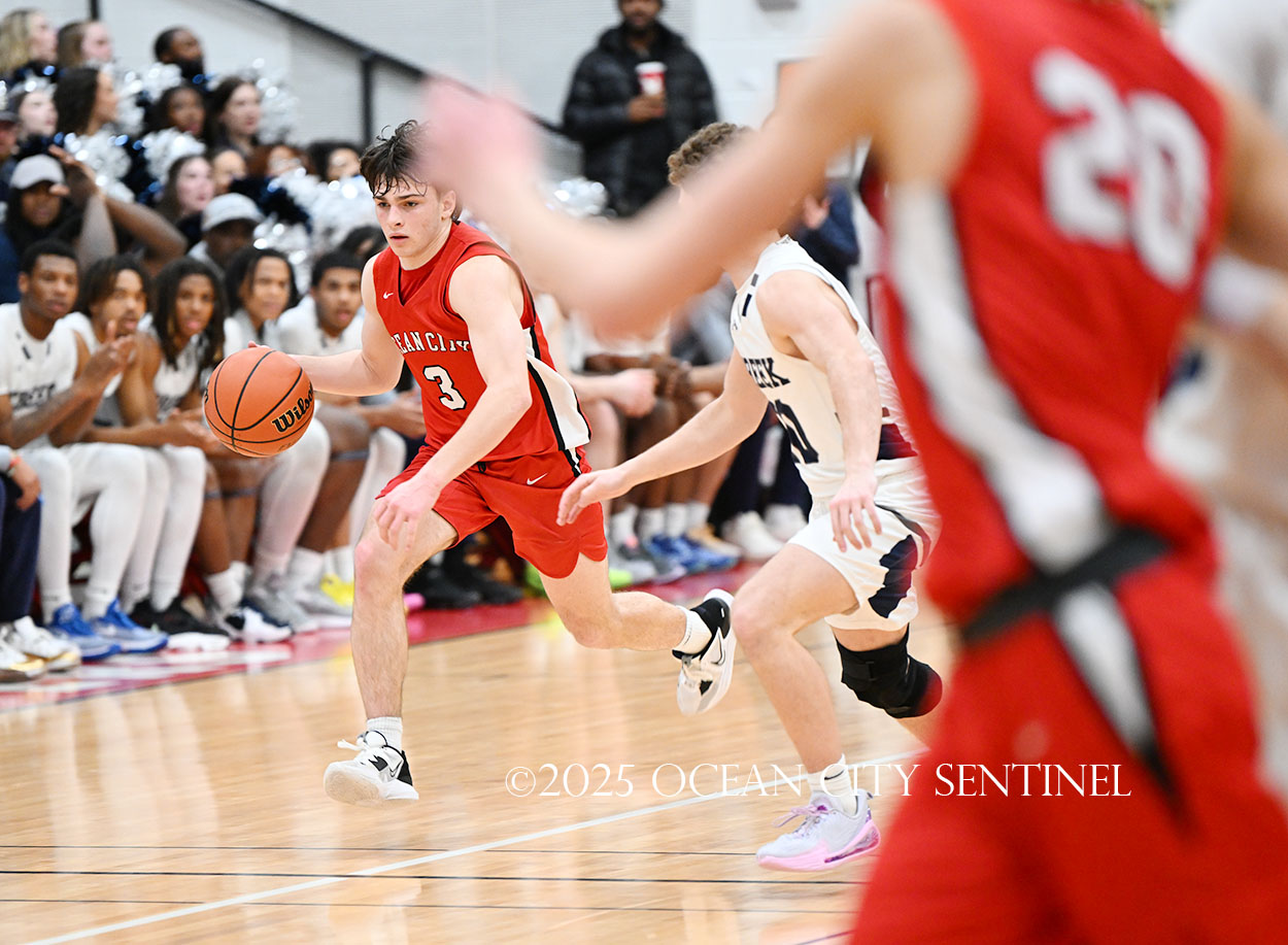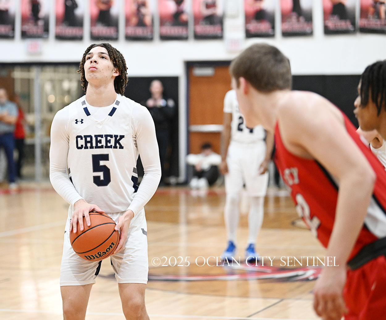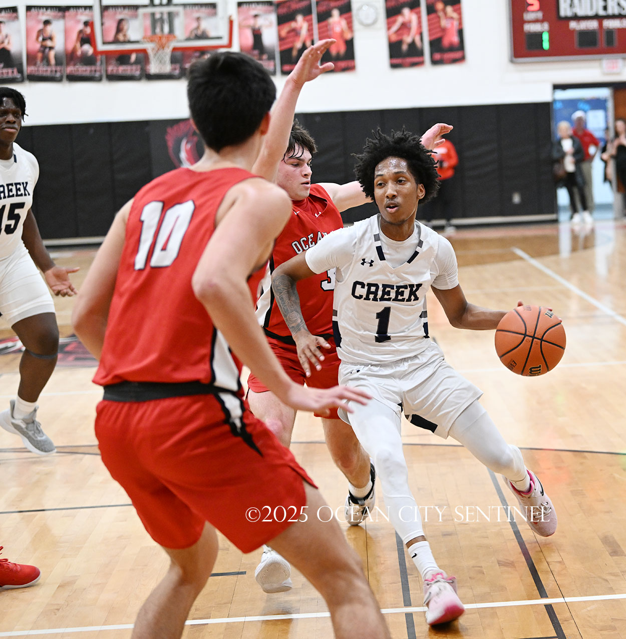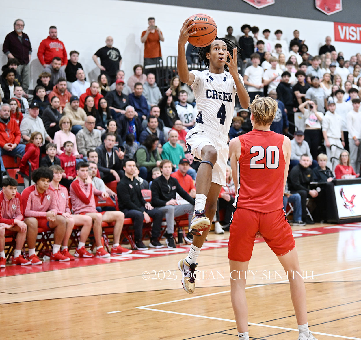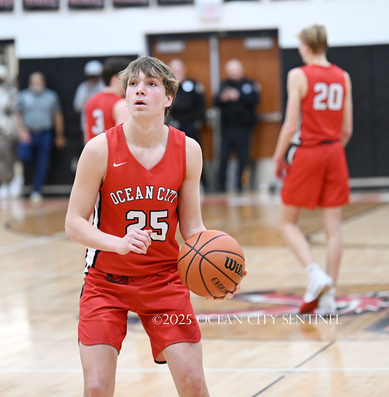 Four foul shots by Tjourmakaris and a three-pointer by Leon Brown helped put Ocean City up 33-24 early in the third quarter, but Timber Creek responded to narrow it to 35-32 with under two minutes to go. Lenko hit a trey with another score by the visitors for a four-point, 38-34 lead heading into the fourth quarter.