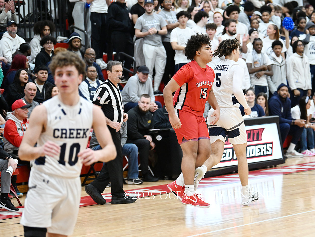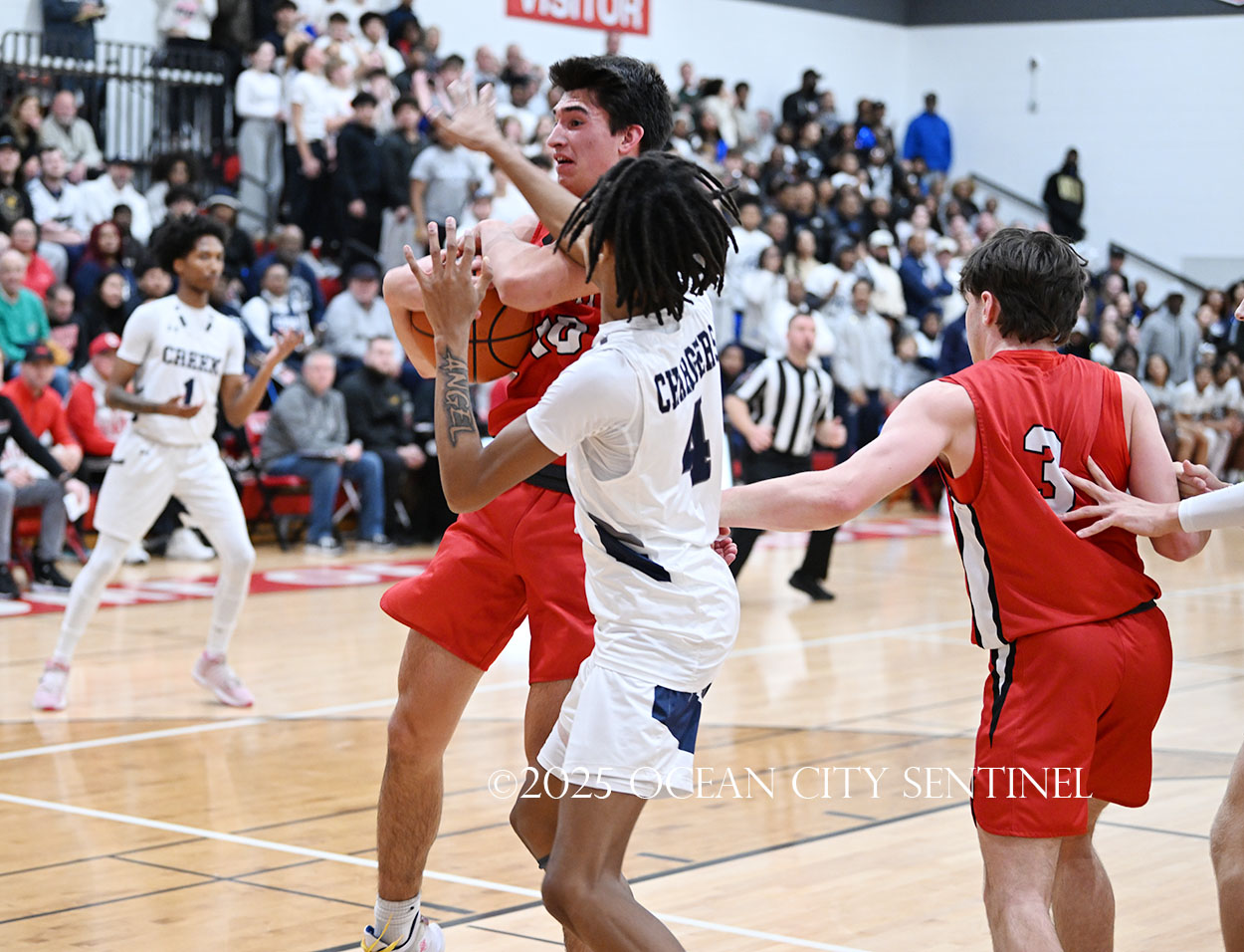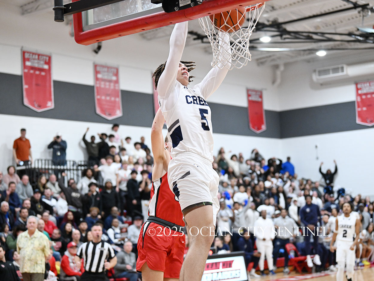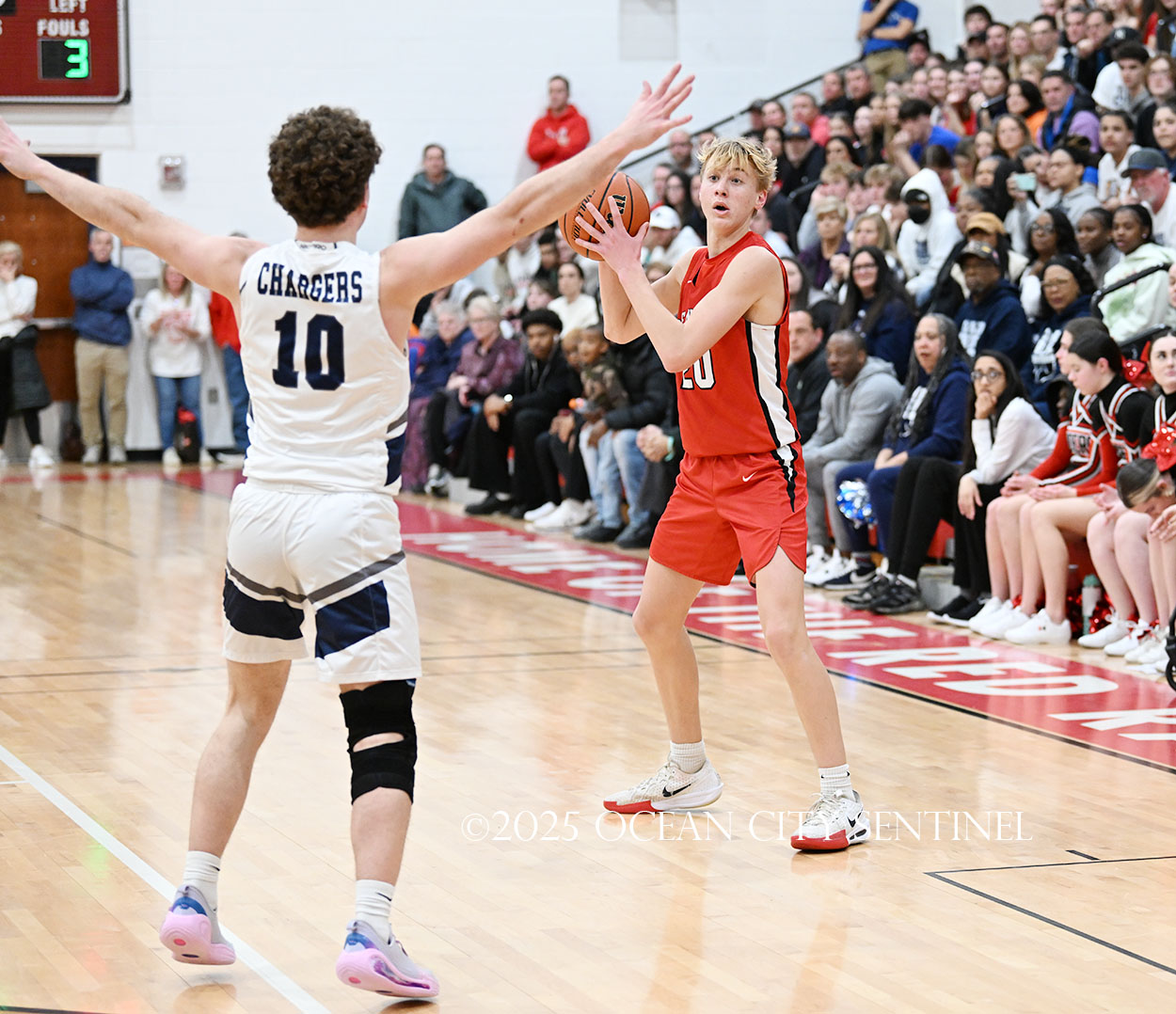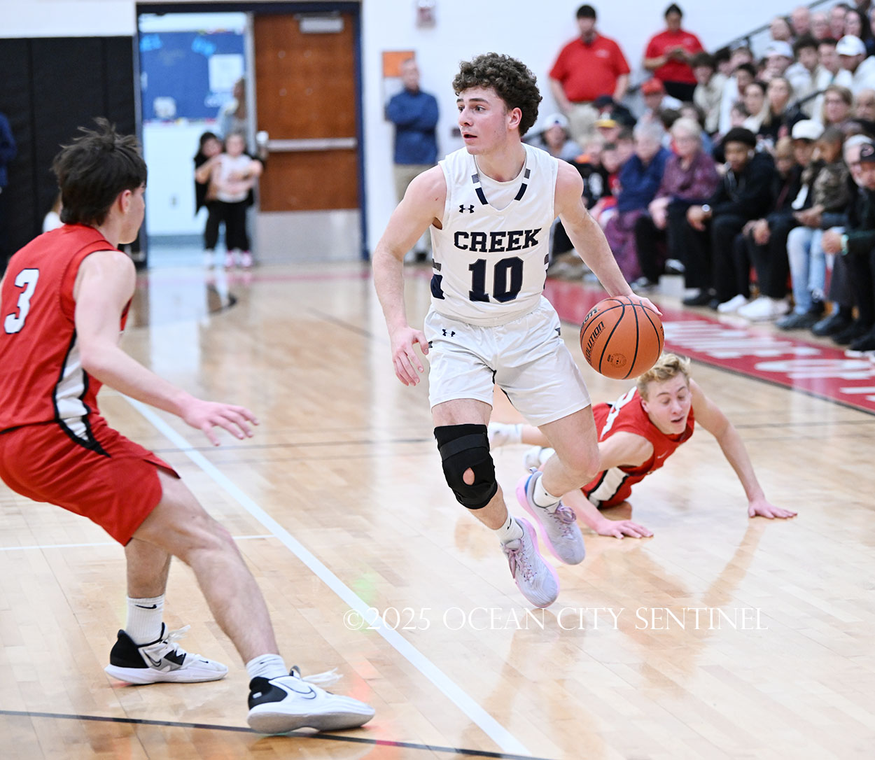 Four foul shots by Tjourmakaris and a three-pointer by Leon Brown helped put Ocean City up 33-24 early in the third quarter, but Timber Creek responded to narrow it to 35-32 with under two minutes to go. Lenko hit a trey with another score by the visitors for a four-point, 38-34 lead heading into the fourth quarter.