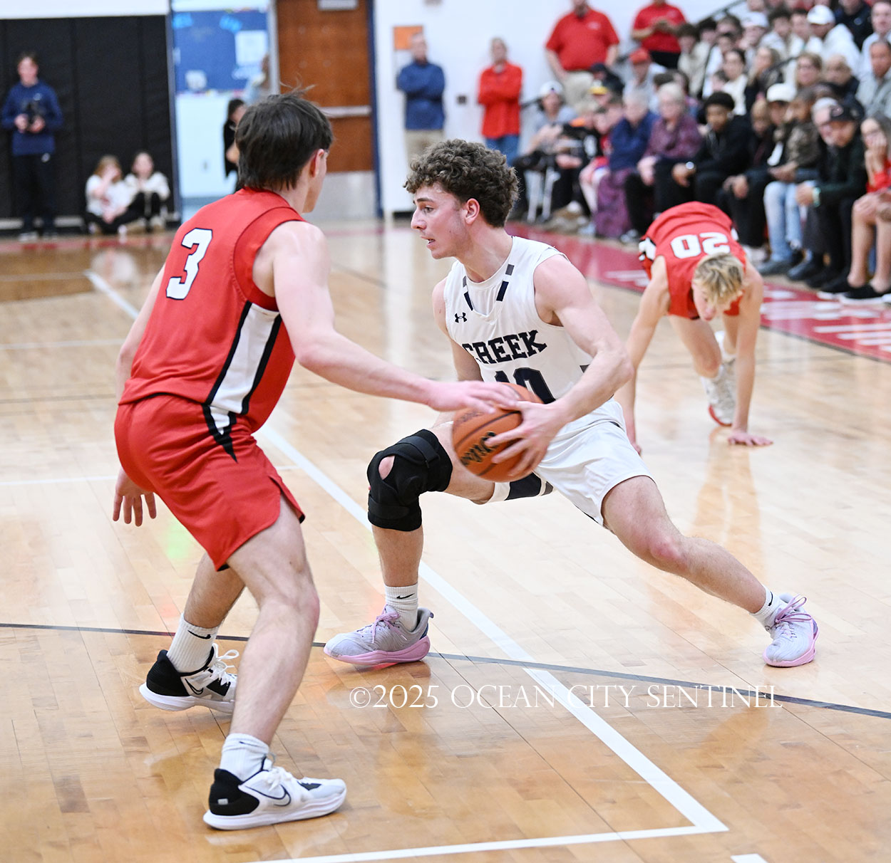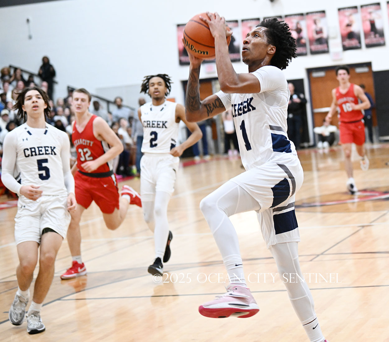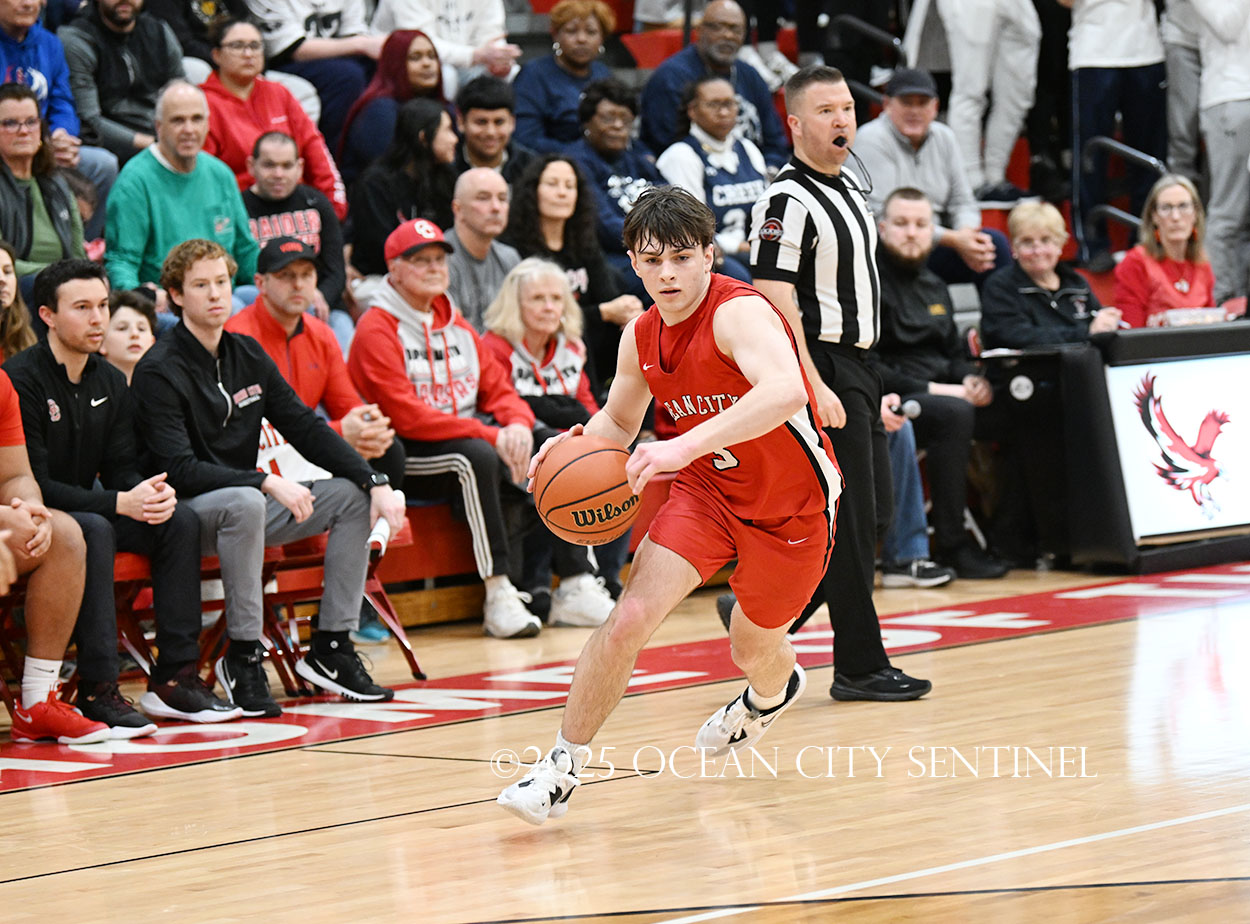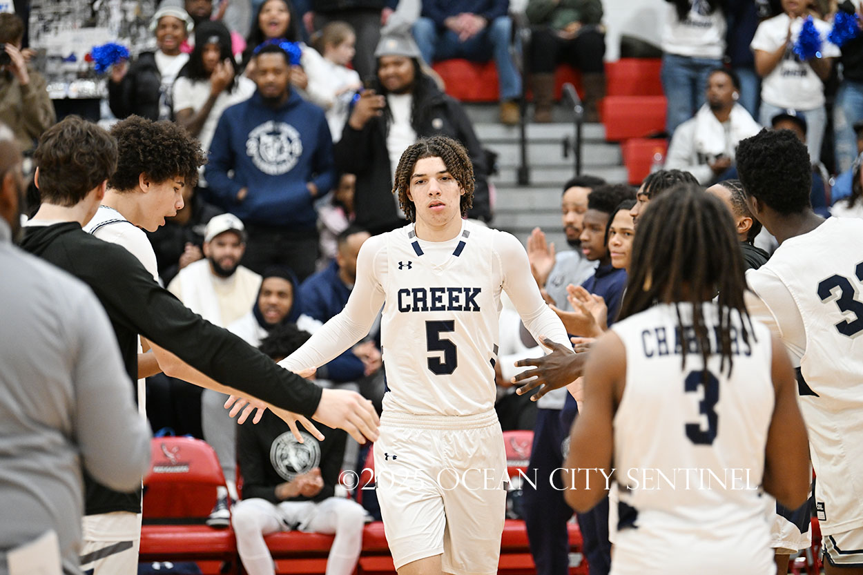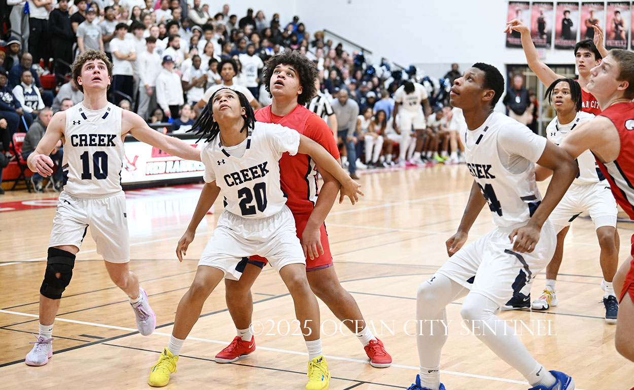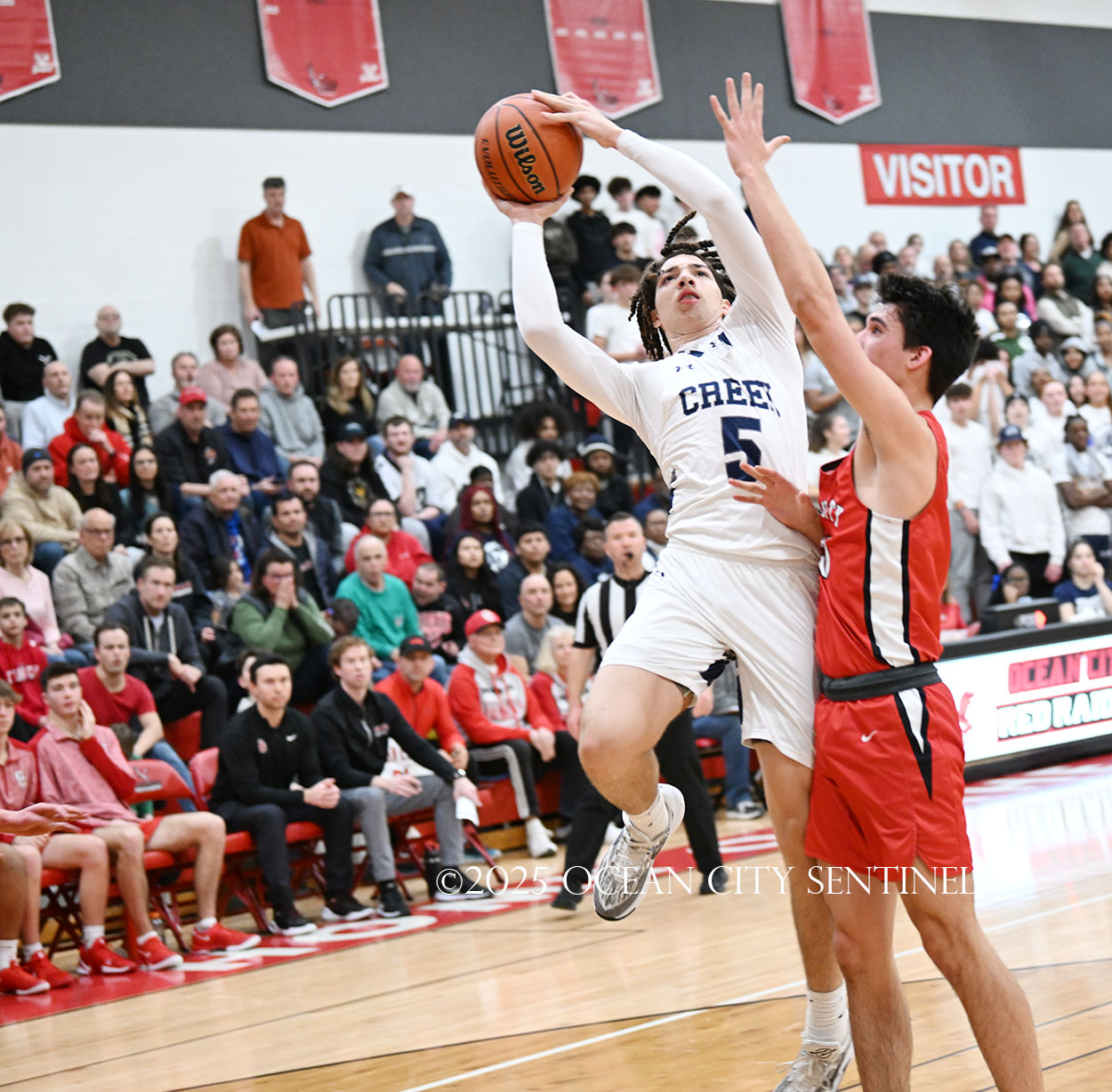 Four foul shots by Tjourmakaris and a three-pointer by Leon Brown helped put Ocean City up 33-24 early in the third quarter, but Timber Creek responded to narrow it to 35-32 with under two minutes to go. Lenko hit a trey with another score by the visitors for a four-point, 38-34 lead heading into the fourth quarter.