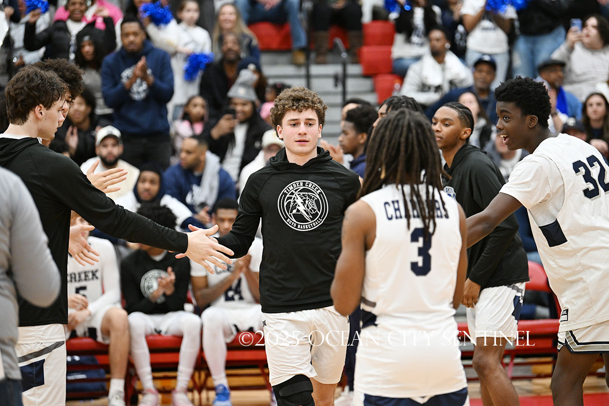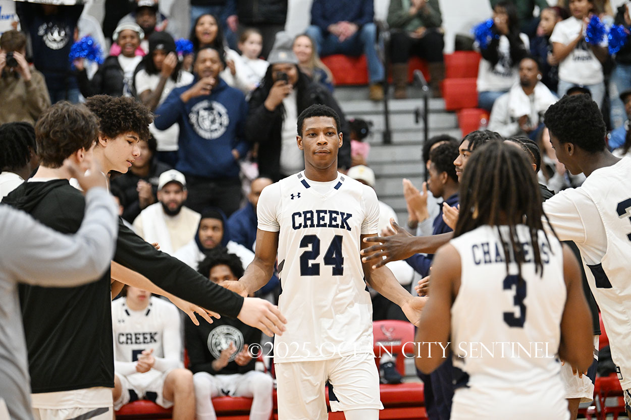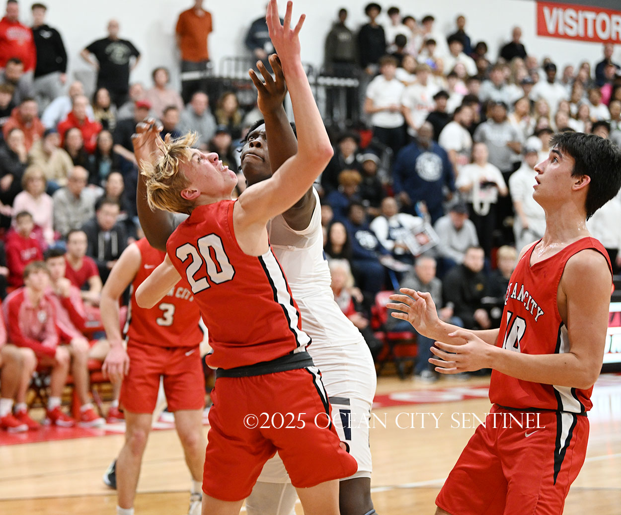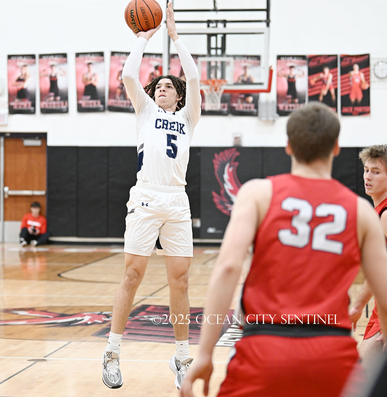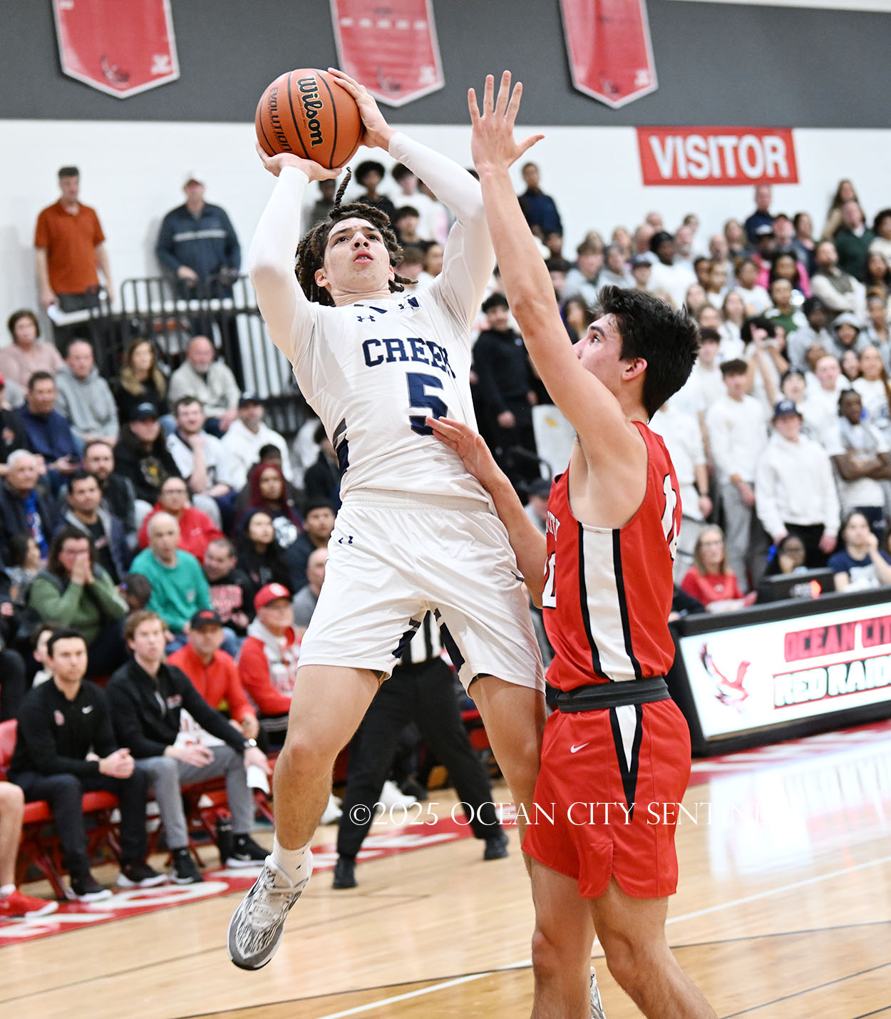 Four foul shots by Tjourmakaris and a three-pointer by Leon Brown helped put Ocean City up 33-24 early in the third quarter, but Timber Creek responded to narrow it to 35-32 with under two minutes to go. Lenko hit a trey with another score by the visitors for a four-point, 38-34 lead heading into the fourth quarter.