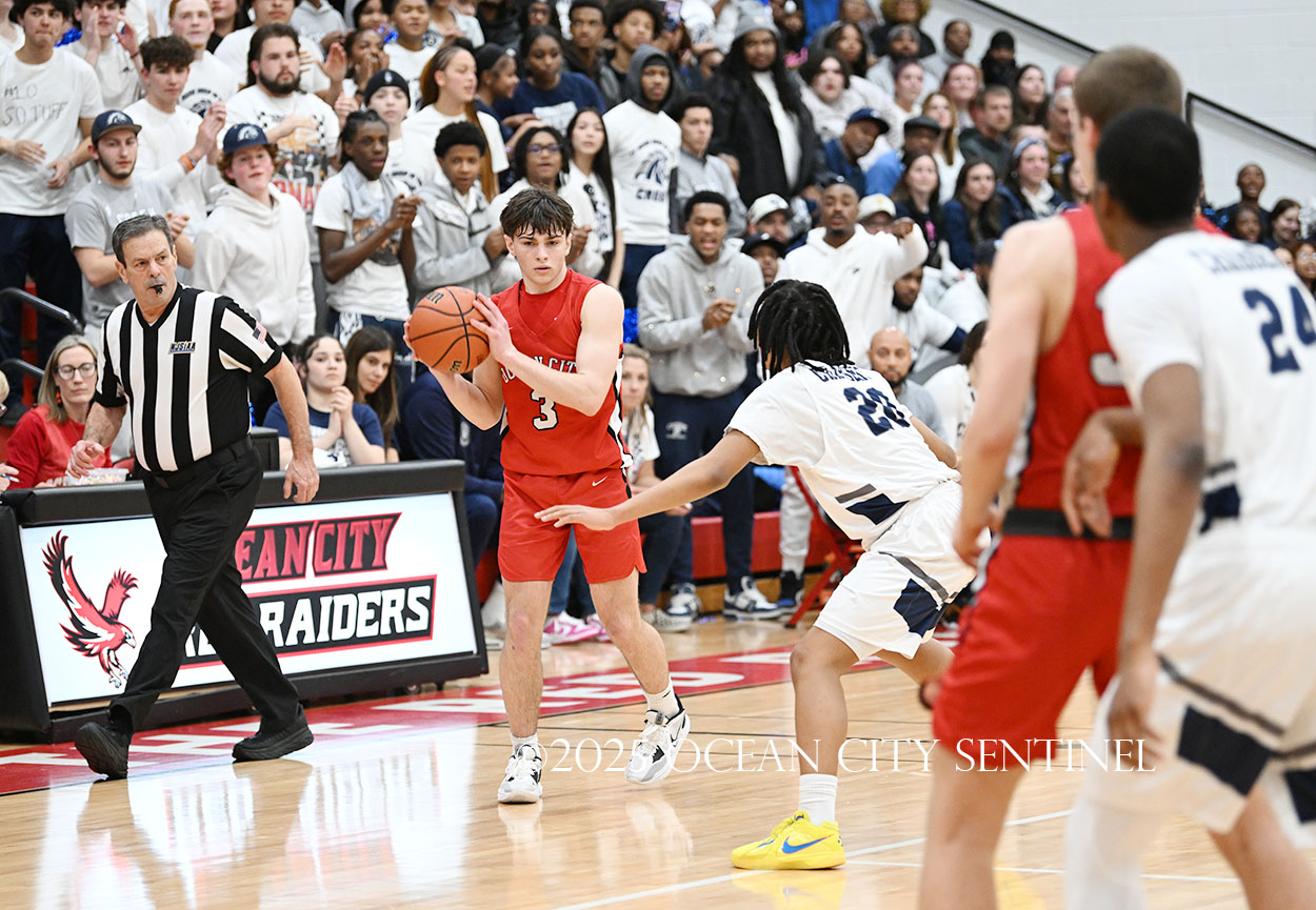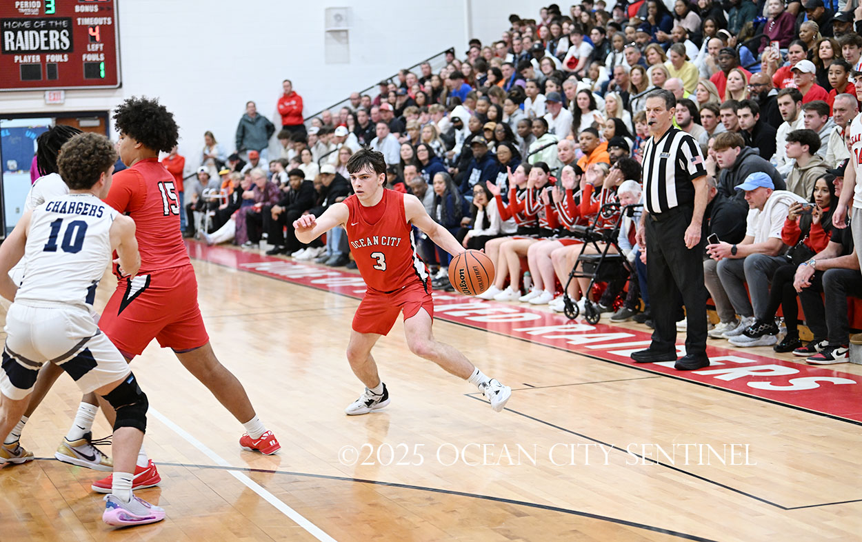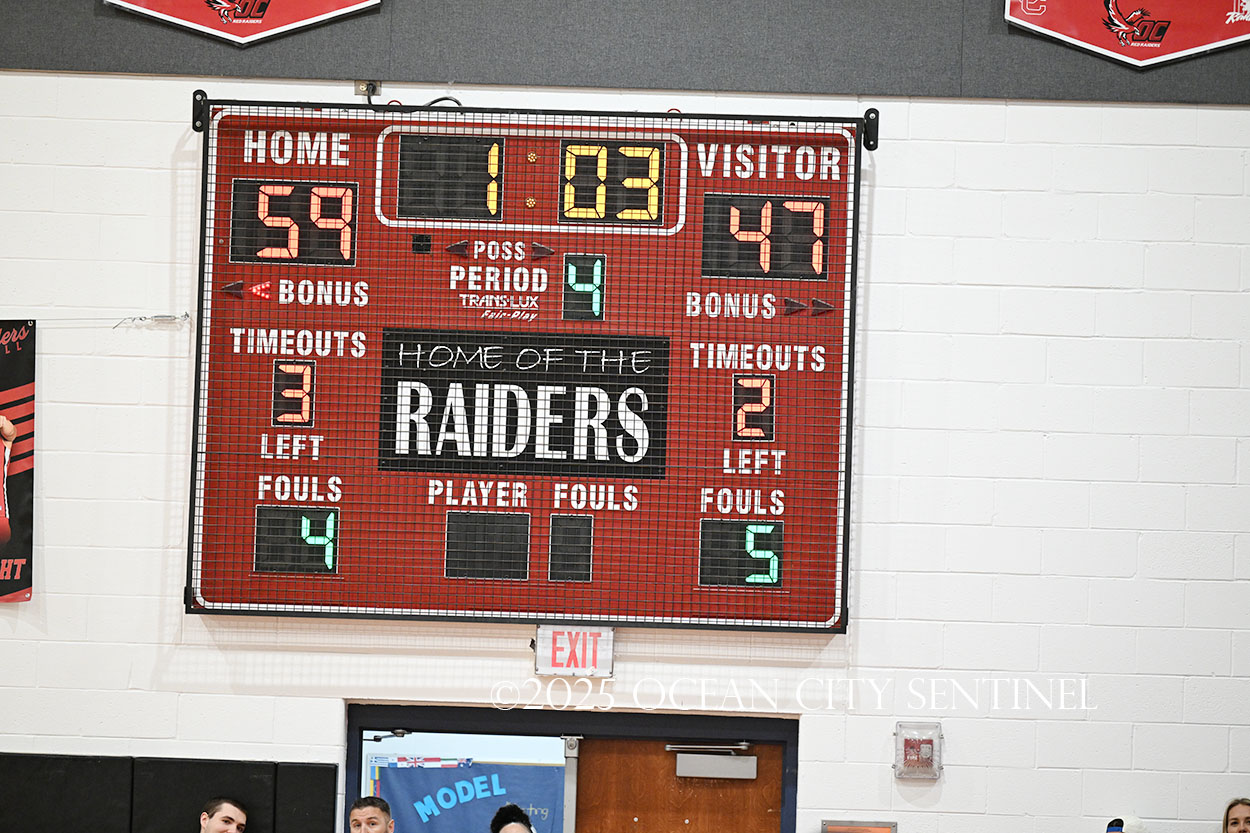 Ocean City (22-7) faced Colts Neck (19-9) in the Group III semifinal Tuesday evening after the Sentinel sports section went to press. The Raiders’ season came to an end in a close game as Colts Neck came back in the fourth quarter to win 47-45.