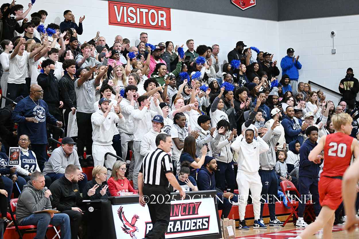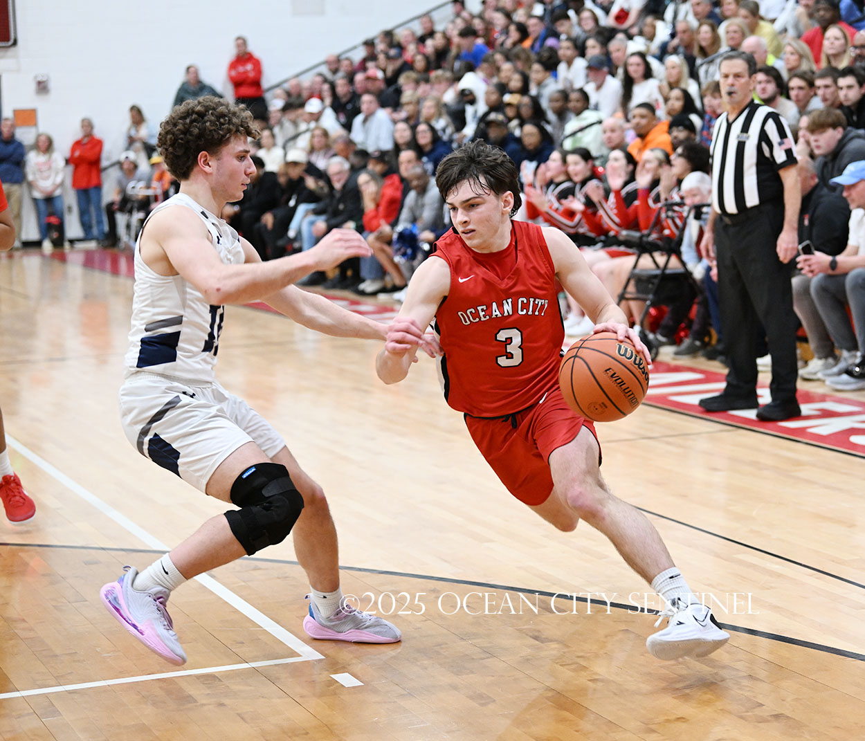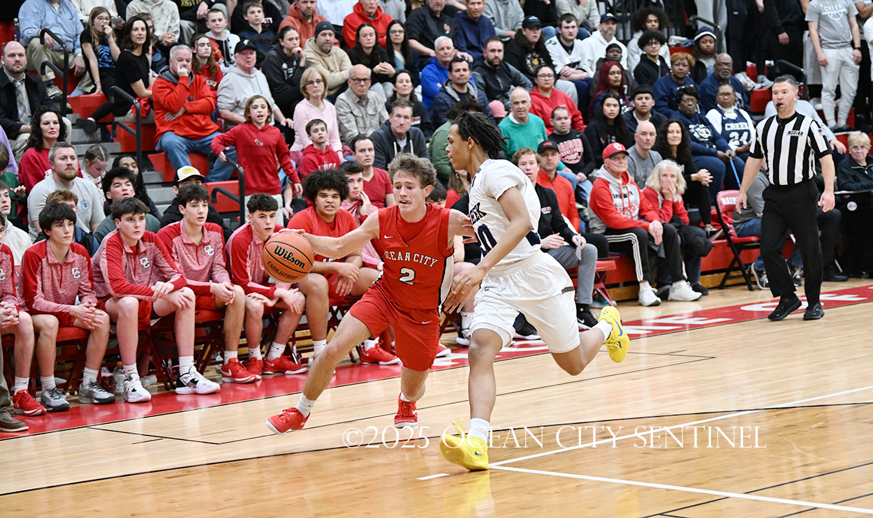 Ocean City (22-7) faced Colts Neck (19-9) in the Group III semifinal Tuesday evening after the Sentinel sports section went to press. The Raiders’ season came to an end in a close game as Colts Neck came back in the fourth quarter to win 47-45.