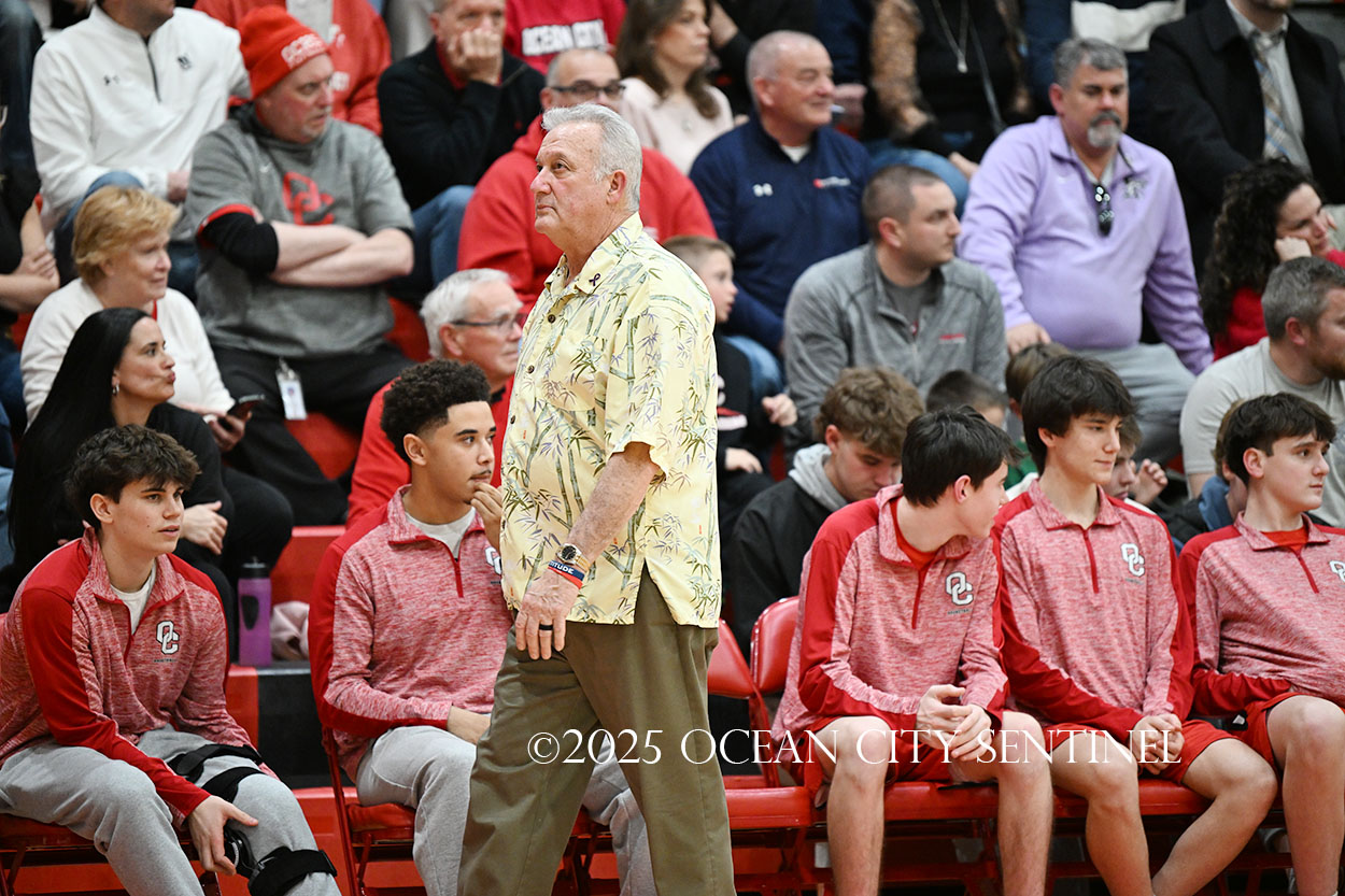 Ocean City High School head coach John Bruno, who is in his 36th year at the helm and won his 500th career game in mid-January, sat stunned in the locker room after the game, thinking about what his boys accomplished.