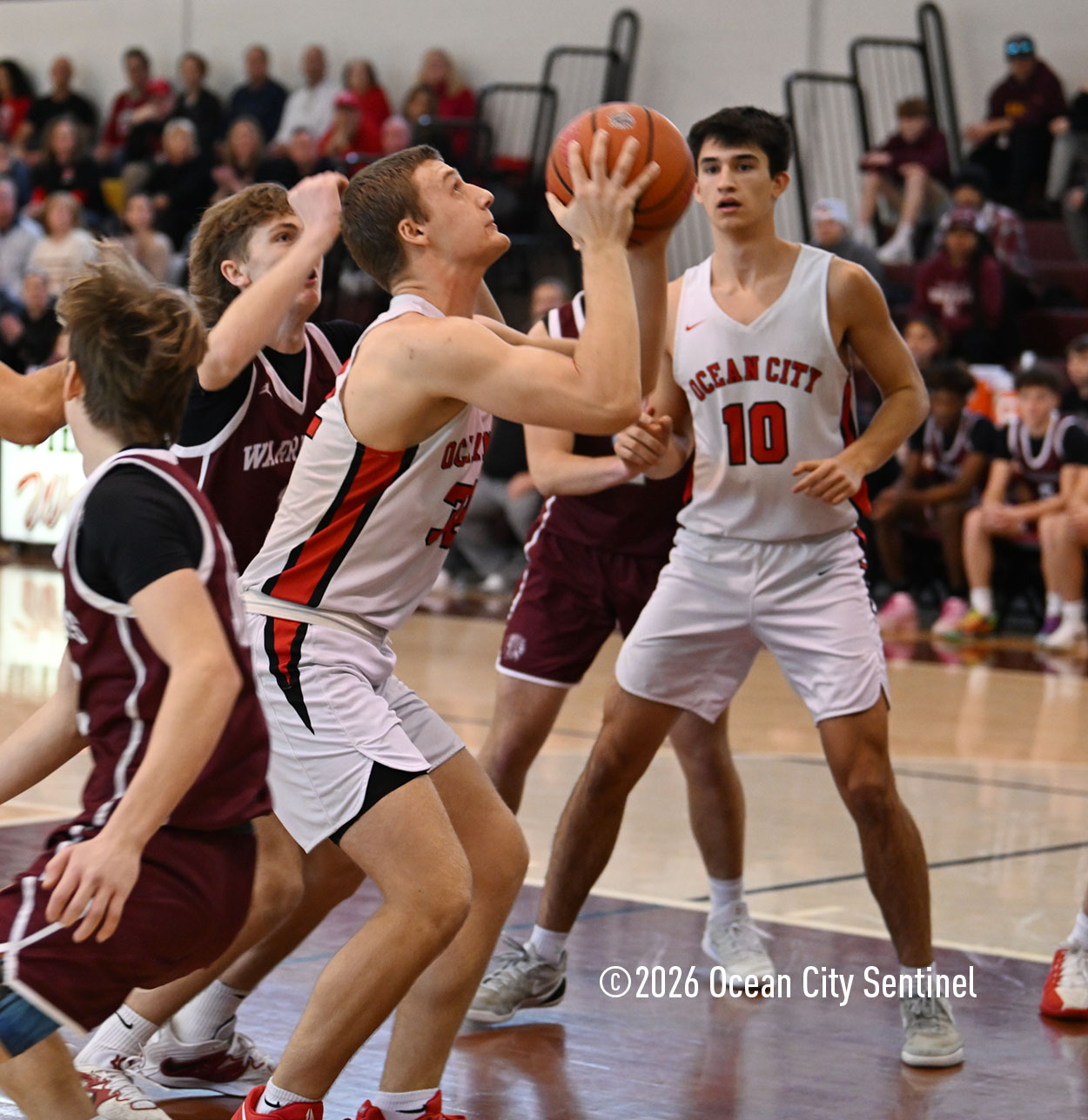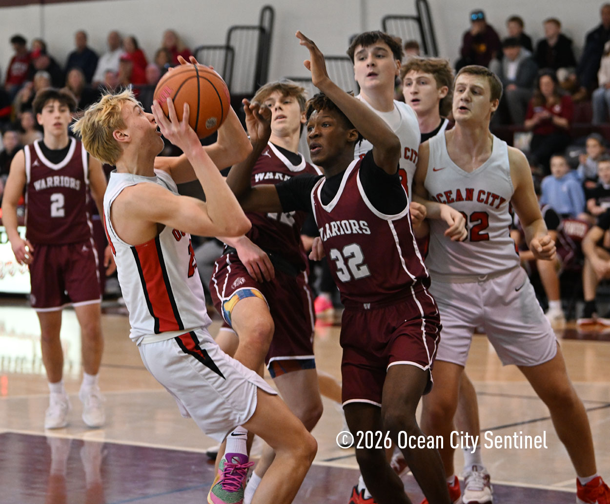 WILDWOOD – Despite a barrage of three-pointers by the Wildwood Warriors, Josh Lenko and the Ocean City Red Raiders managed to hold onto their fifth straight win.