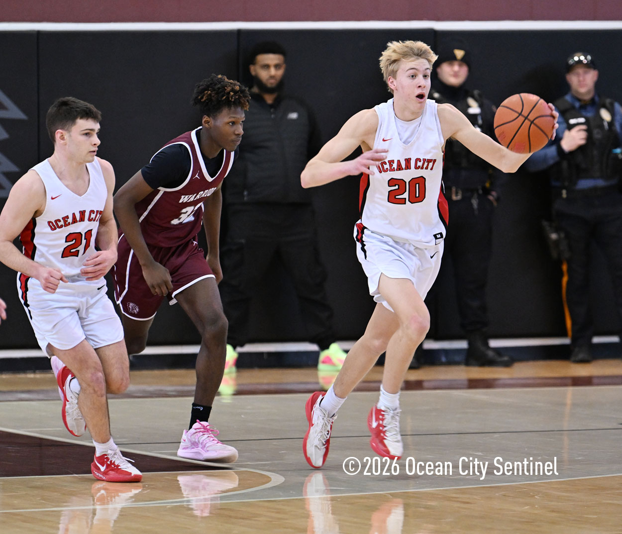 Ocean City swarmed to the ball and forced four consecutive Warrior turnovers that were converted into easy points on the other end of the court. Lenko scored 12 points in the final quarter and was the beneficiary of some of the turnovers created by Lappin and Luke Tjoumakaris. He was most effective attacking the basket where he got to the foul line eight times along with nine made shots from the floor. He only missed one free throw and set up the rest of the team to close out the Warriors.