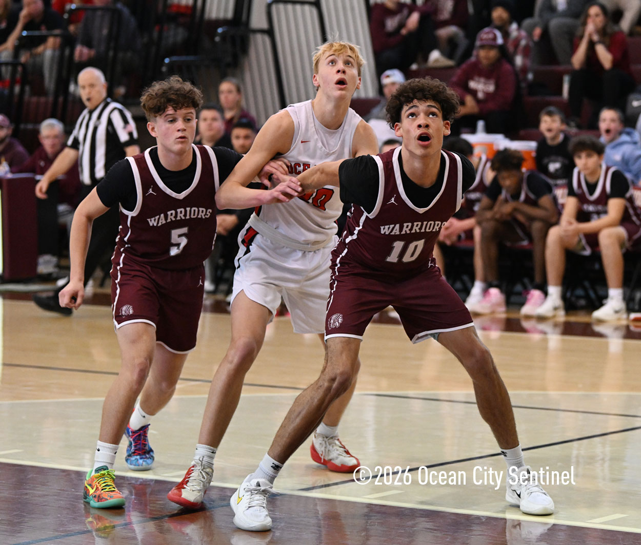 Warrior duo Trevor Troiano and Nolan Mawhinney each scored 14 and had six three-pointers between them. They forced Lenko and Ocean City to stay locked into the game and wait for their moment to strike.