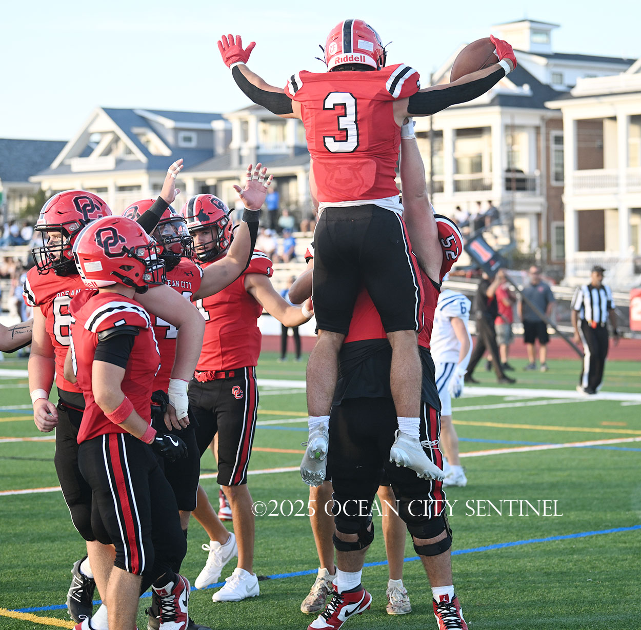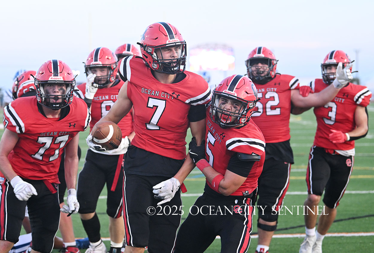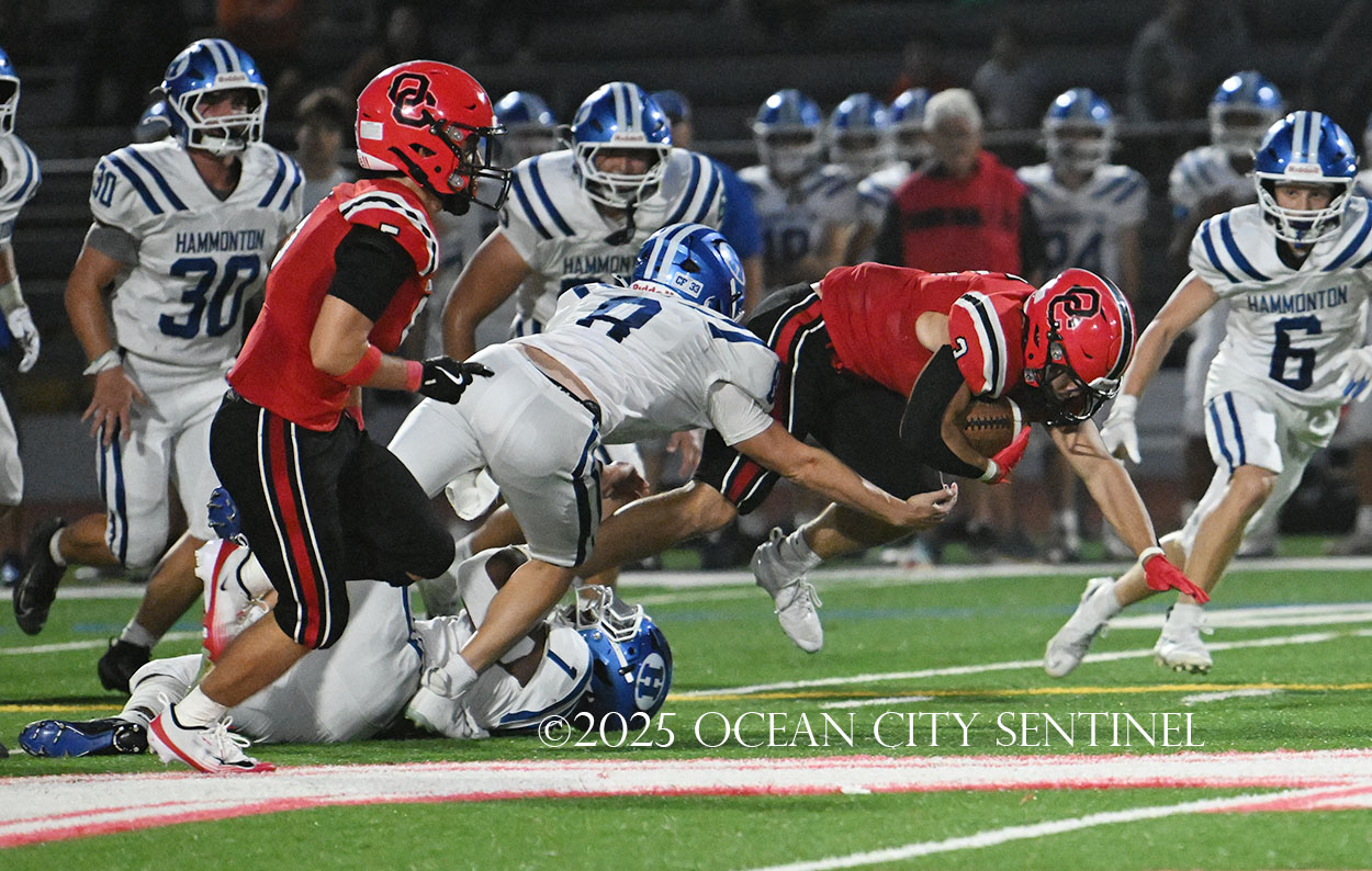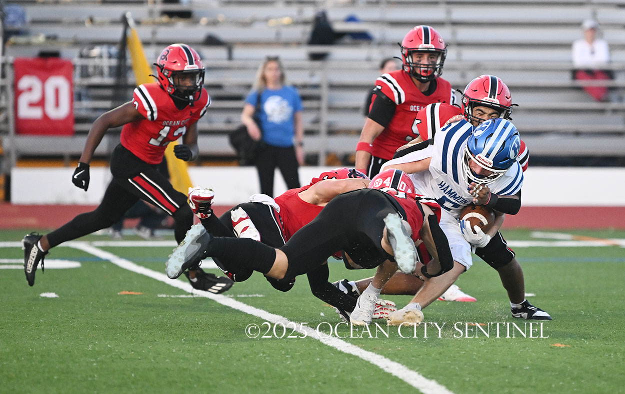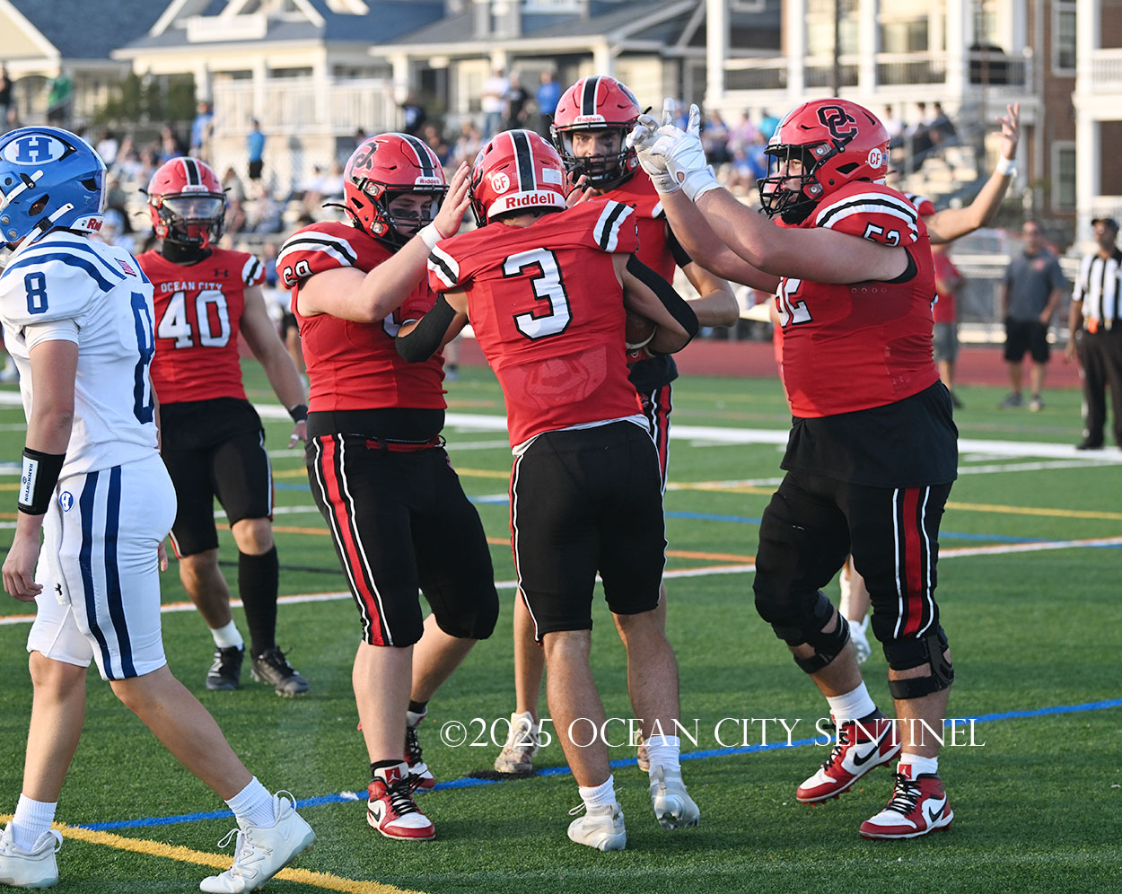 OCEAN CITY – At the halfway point of the regular season, the Ocean City Red Raiders improved to 3-2 after a gutsy win over the Hammonton Blue Devils Friday night, Sept. 26.