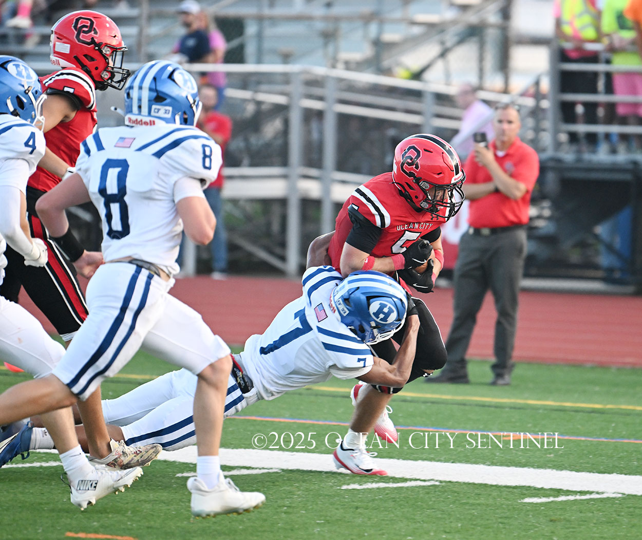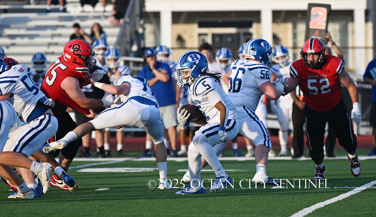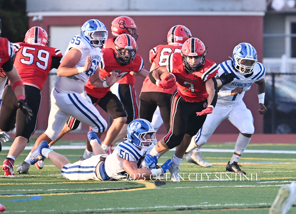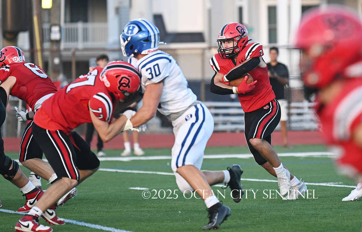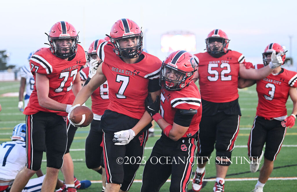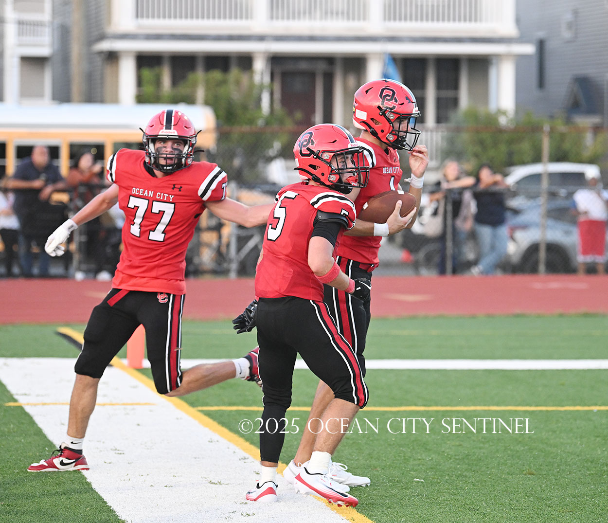 OCEAN CITY – At the halfway point of the regular season, the Ocean City Red Raiders improved to 3-2 after a gutsy win over the Hammonton Blue Devils Friday night, Sept. 26.