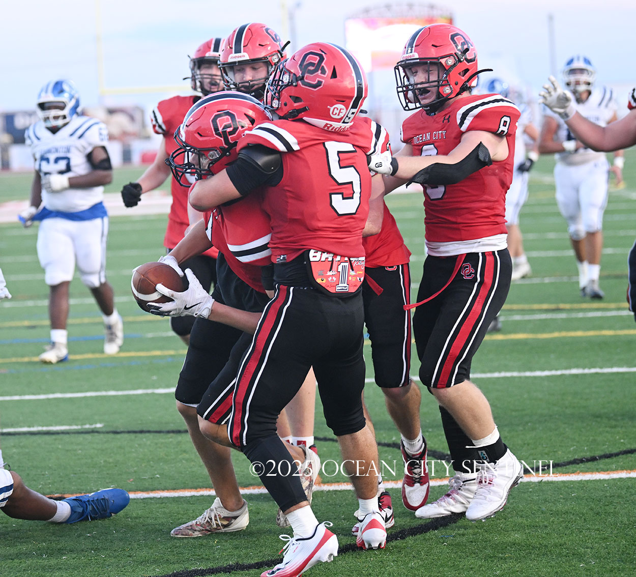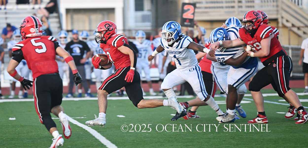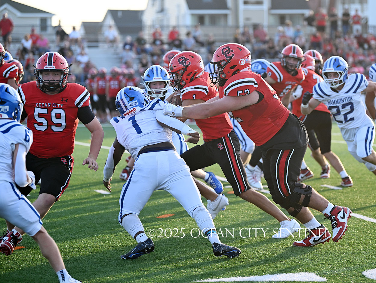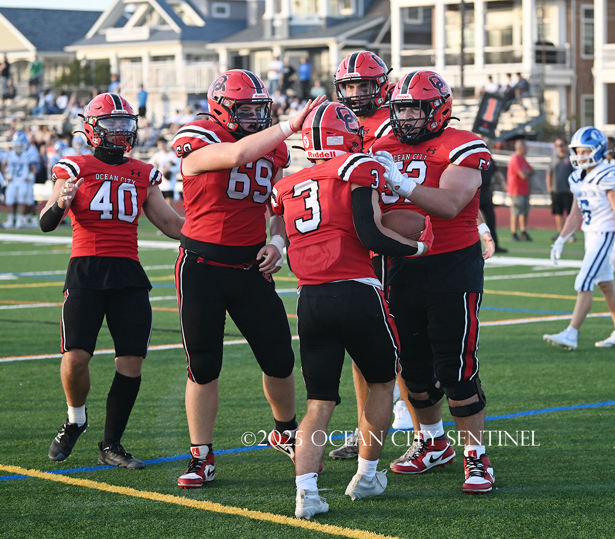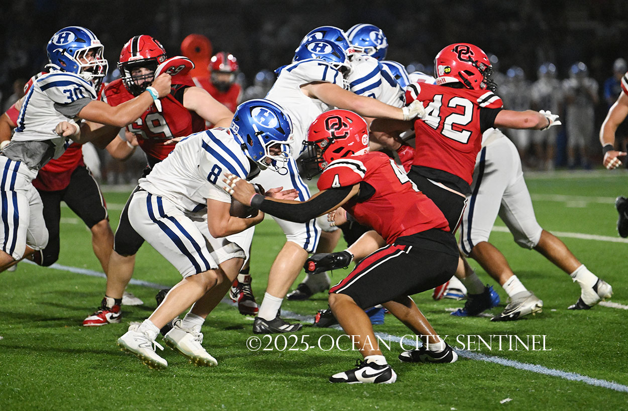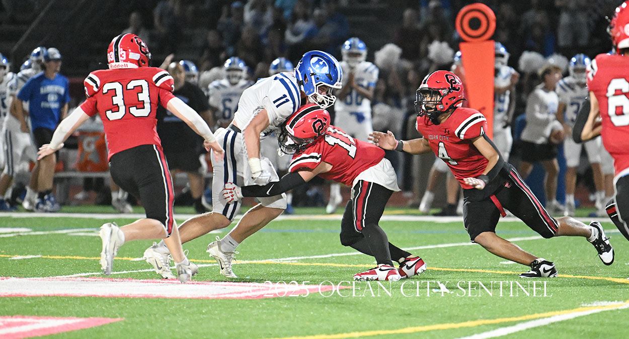 OCEAN CITY – At the halfway point of the regular season, the Ocean City Red Raiders improved to 3-2 after a gutsy win over the Hammonton Blue Devils Friday night, Sept. 26.