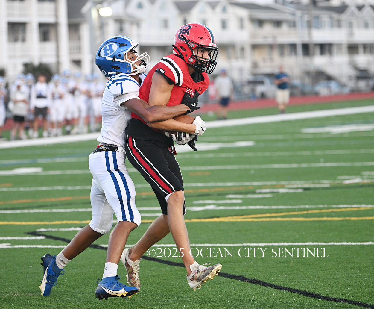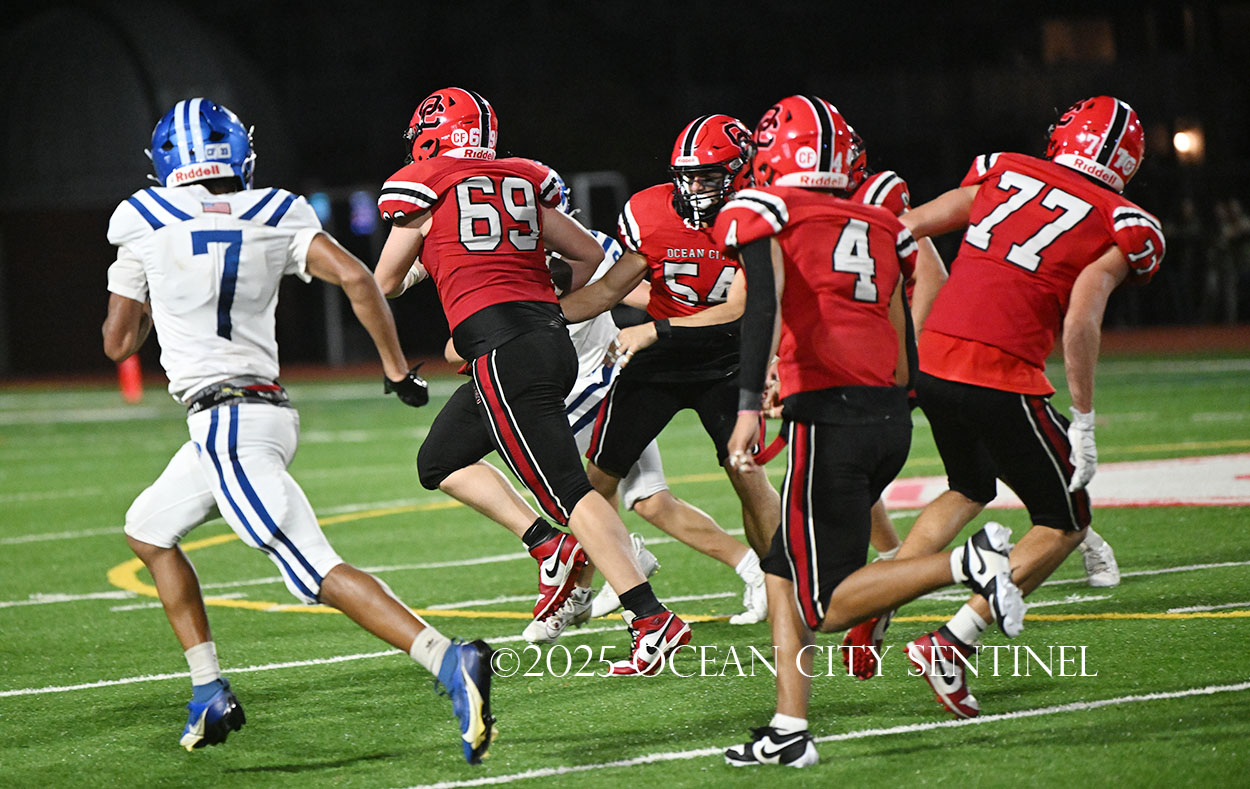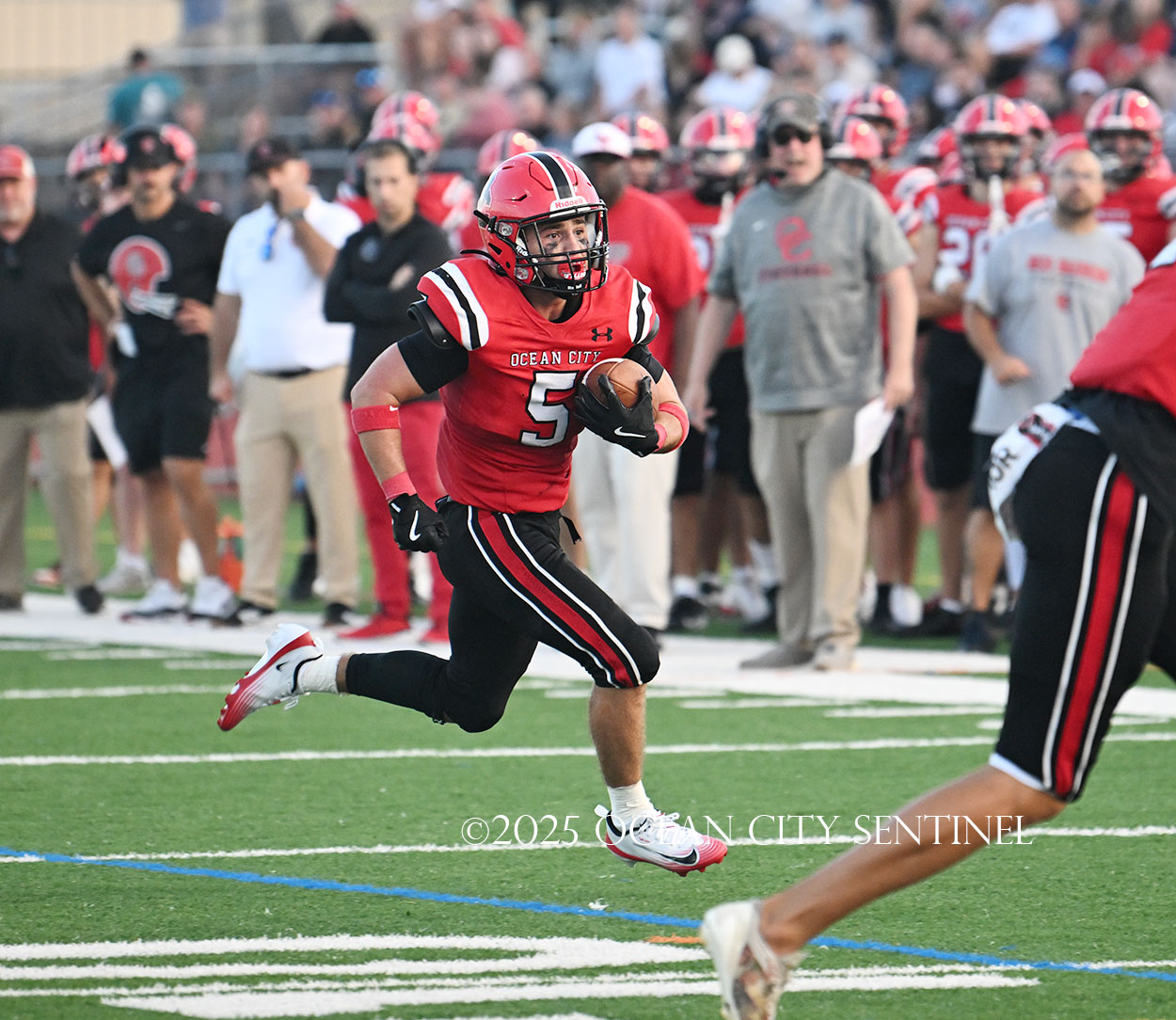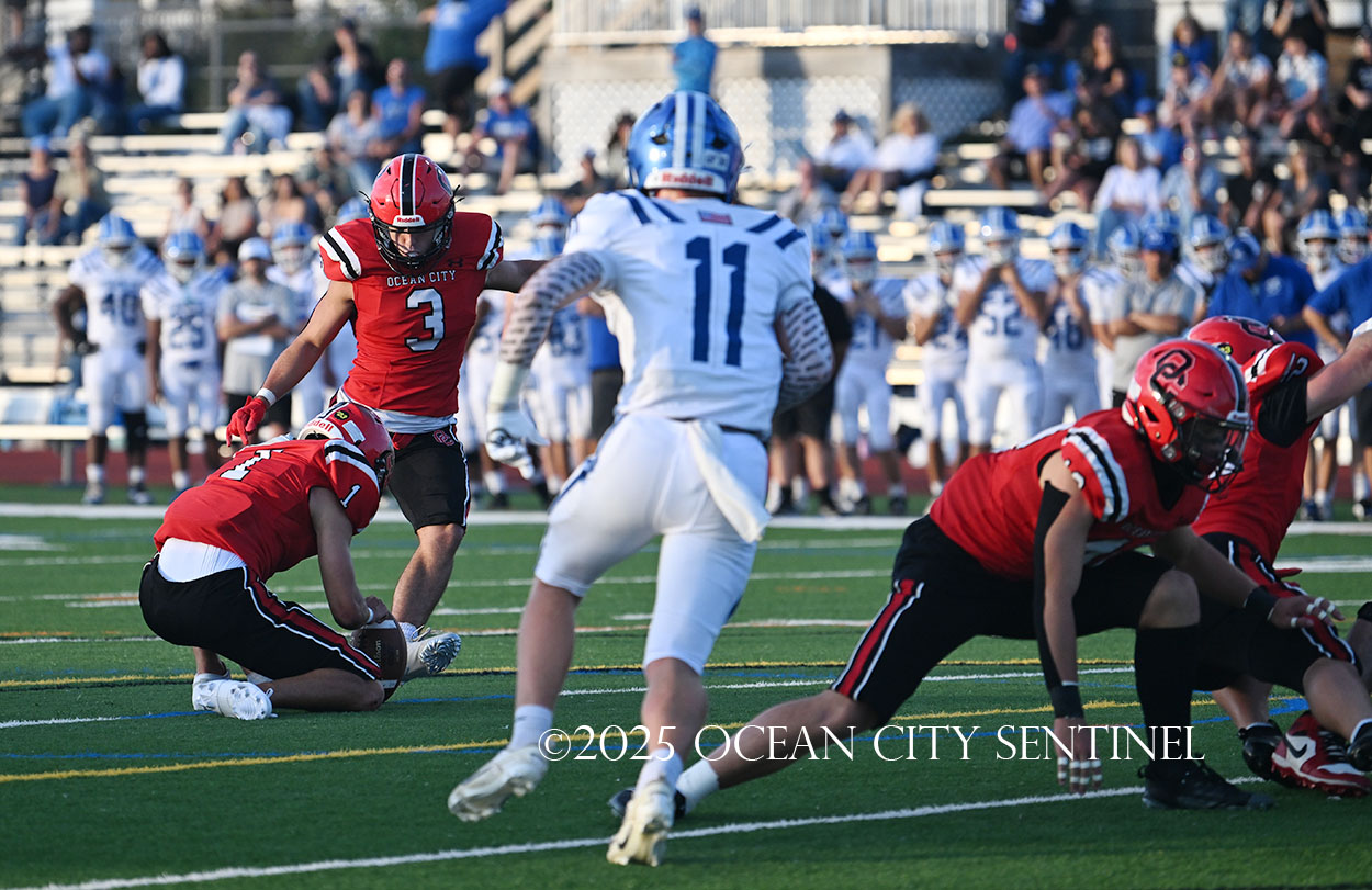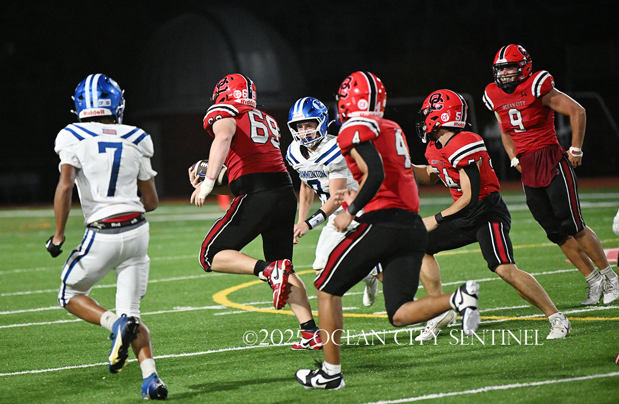 OCEAN CITY – At the halfway point of the regular season, the Ocean City Red Raiders improved to 3-2 after a gutsy win over the Hammonton Blue Devils Friday night, Sept. 26.