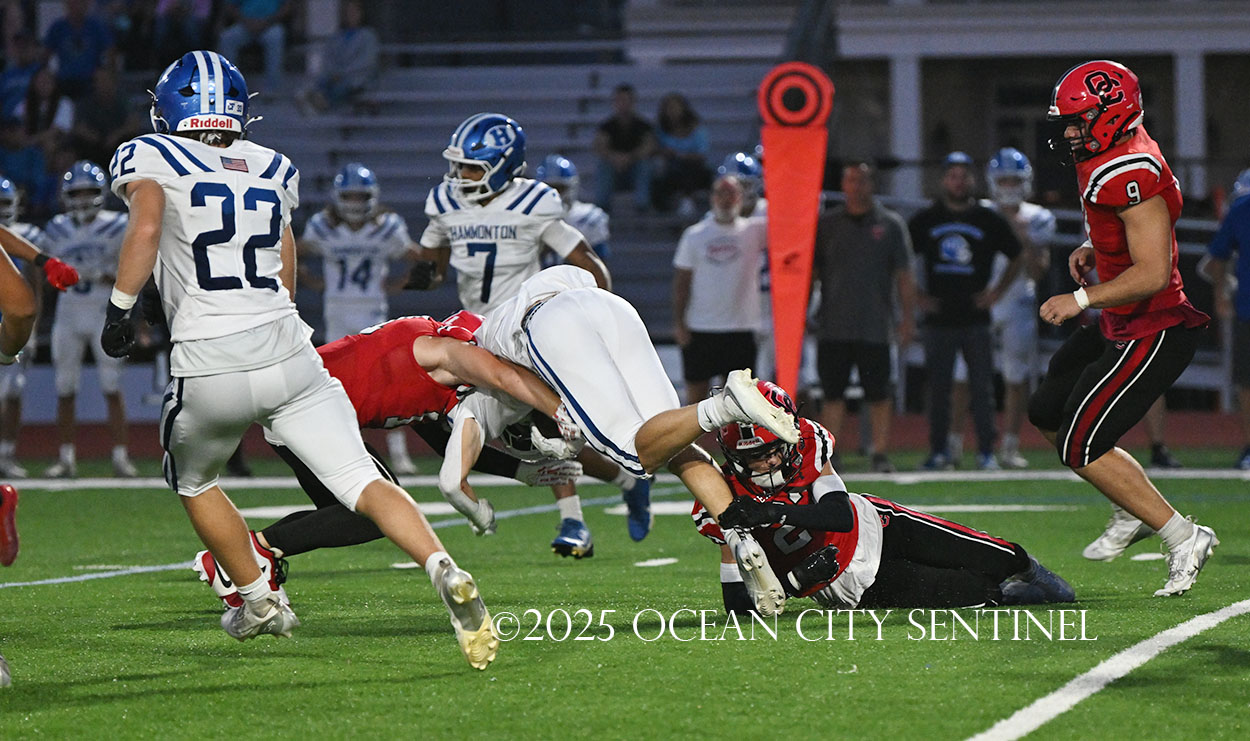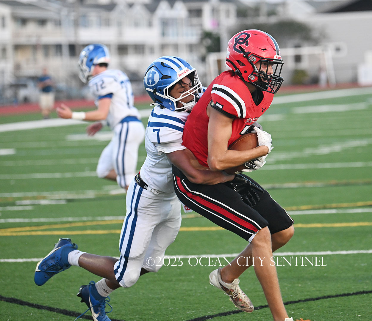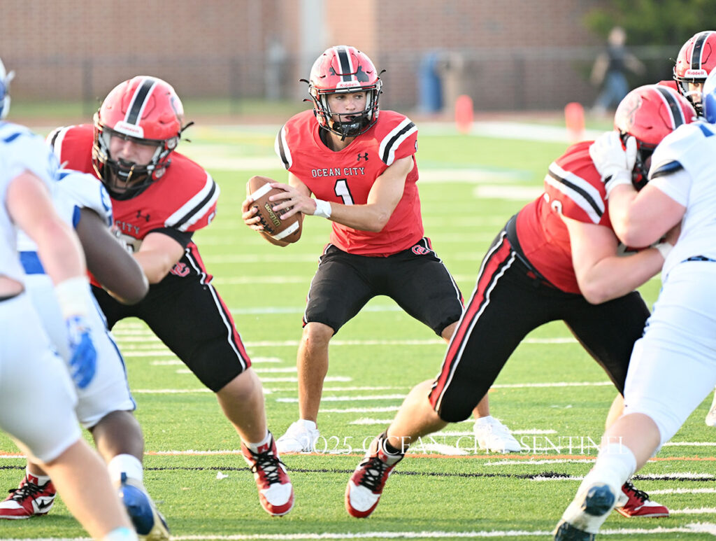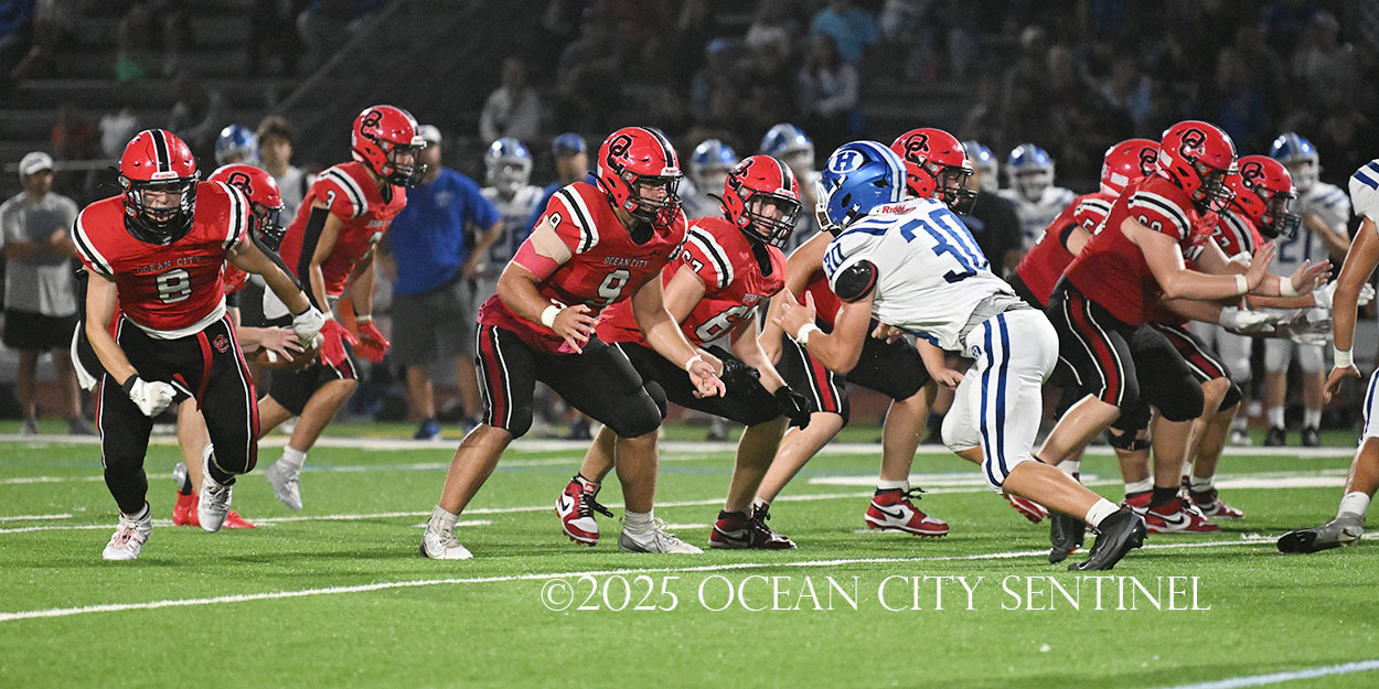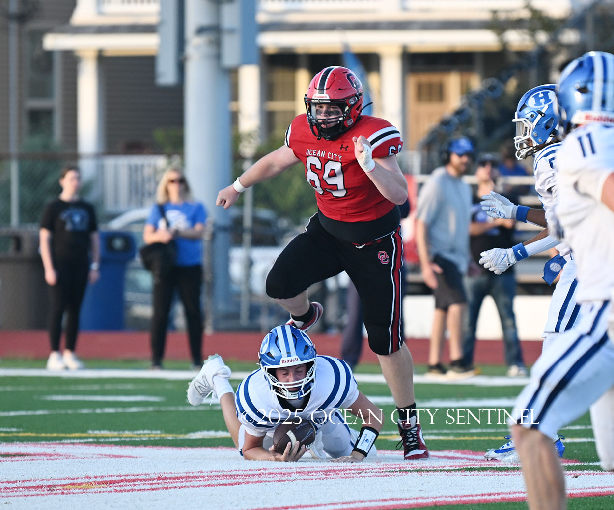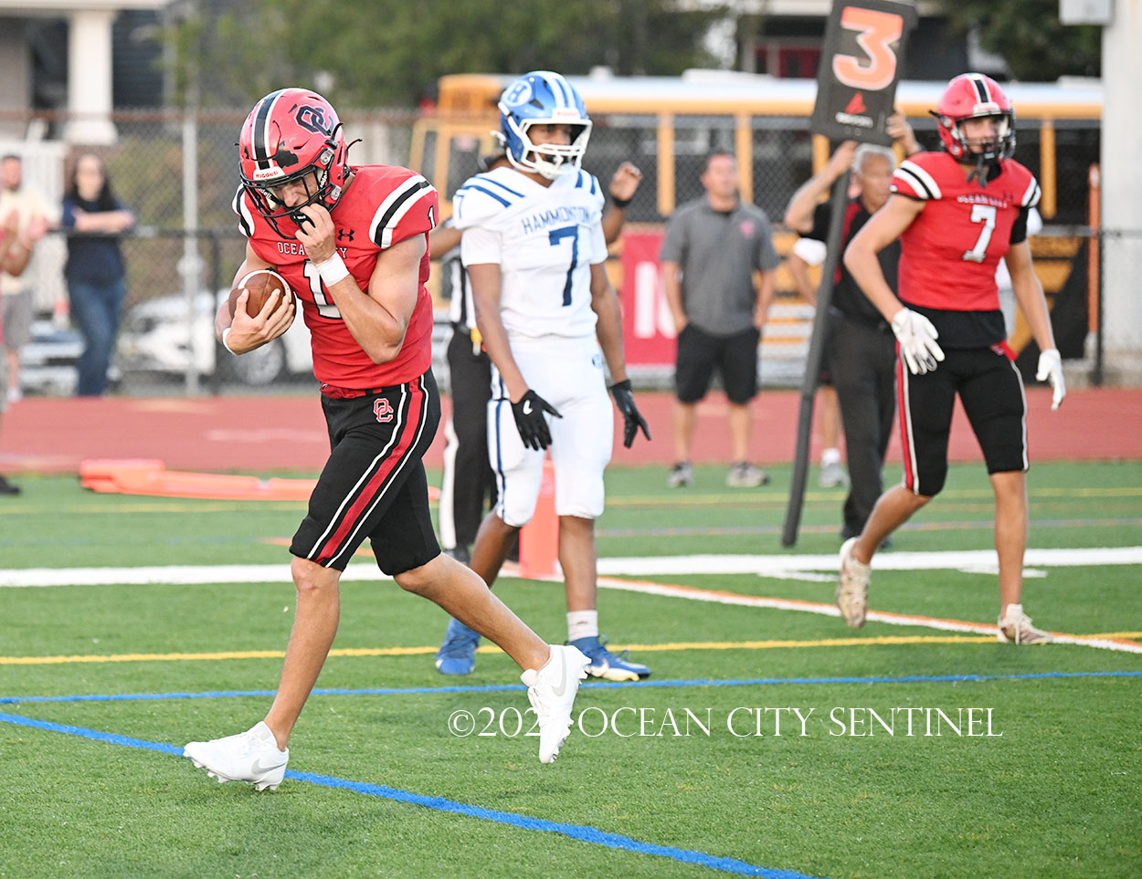 OCEAN CITY – At the halfway point of the regular season, the Ocean City Red Raiders improved to 3-2 after a gutsy win over the Hammonton Blue Devils Friday night, Sept. 26.