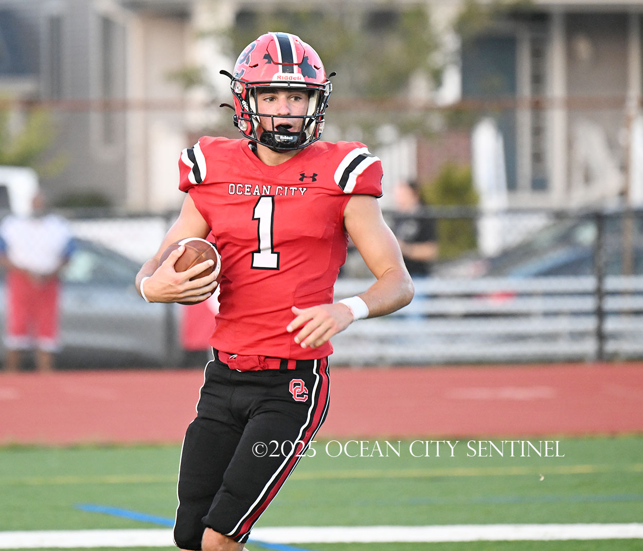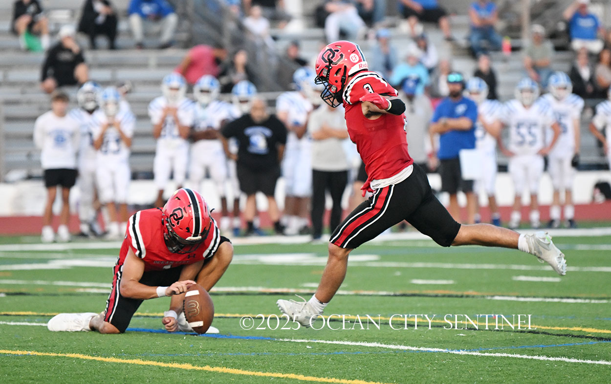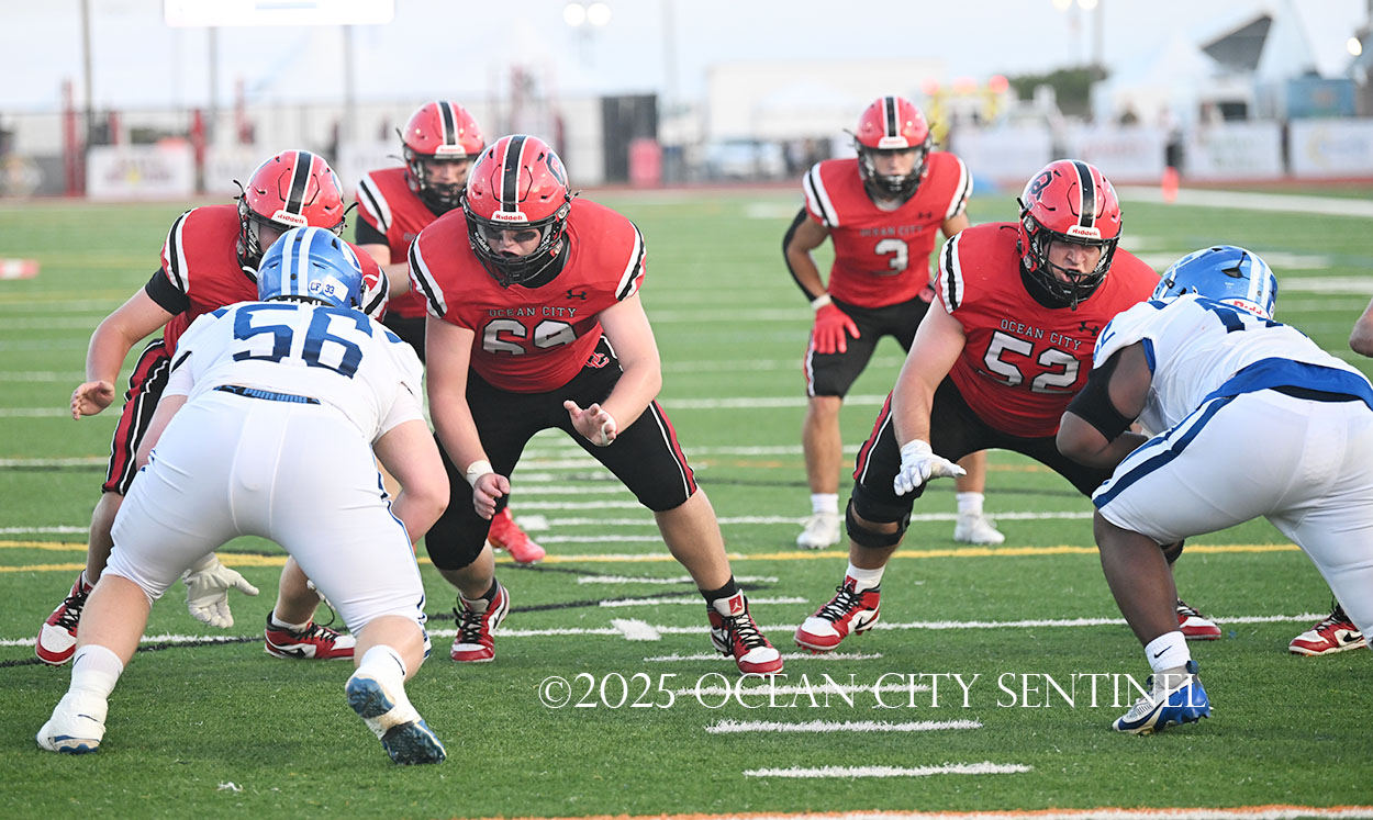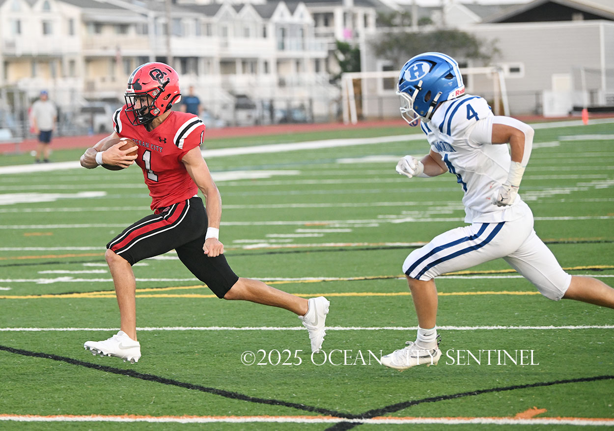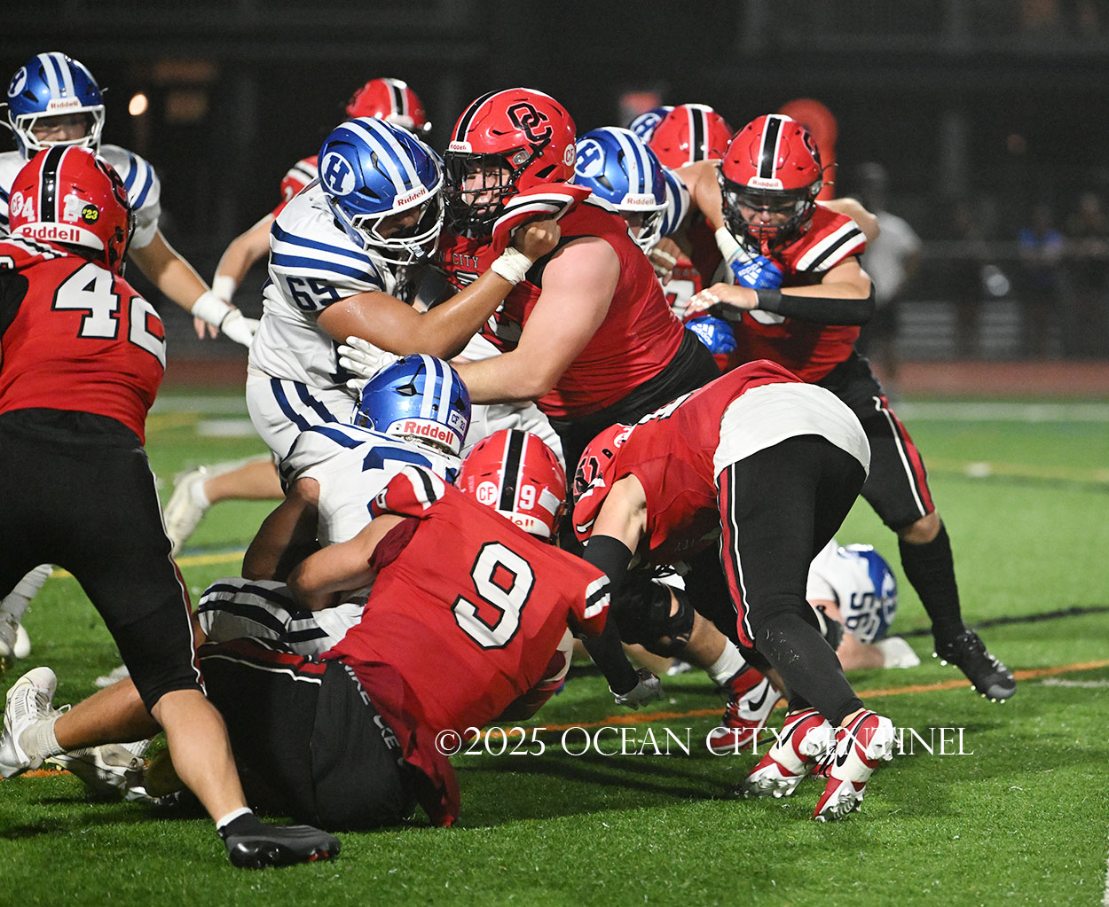 OCEAN CITY – At the halfway point of the regular season, the Ocean City Red Raiders improved to 3-2 after a gutsy win over the Hammonton Blue Devils Friday night, Sept. 26.