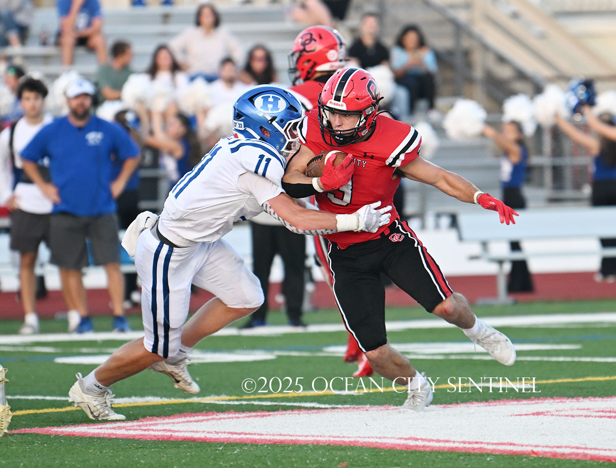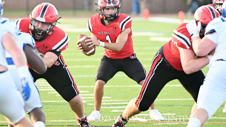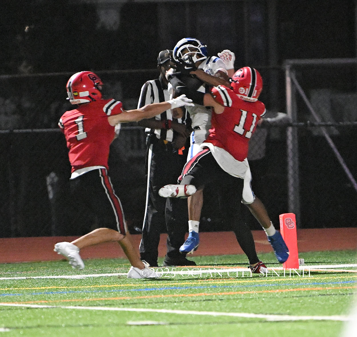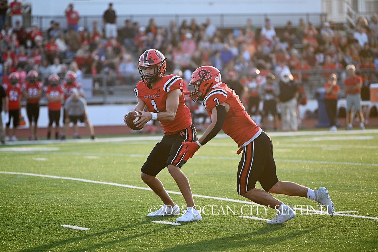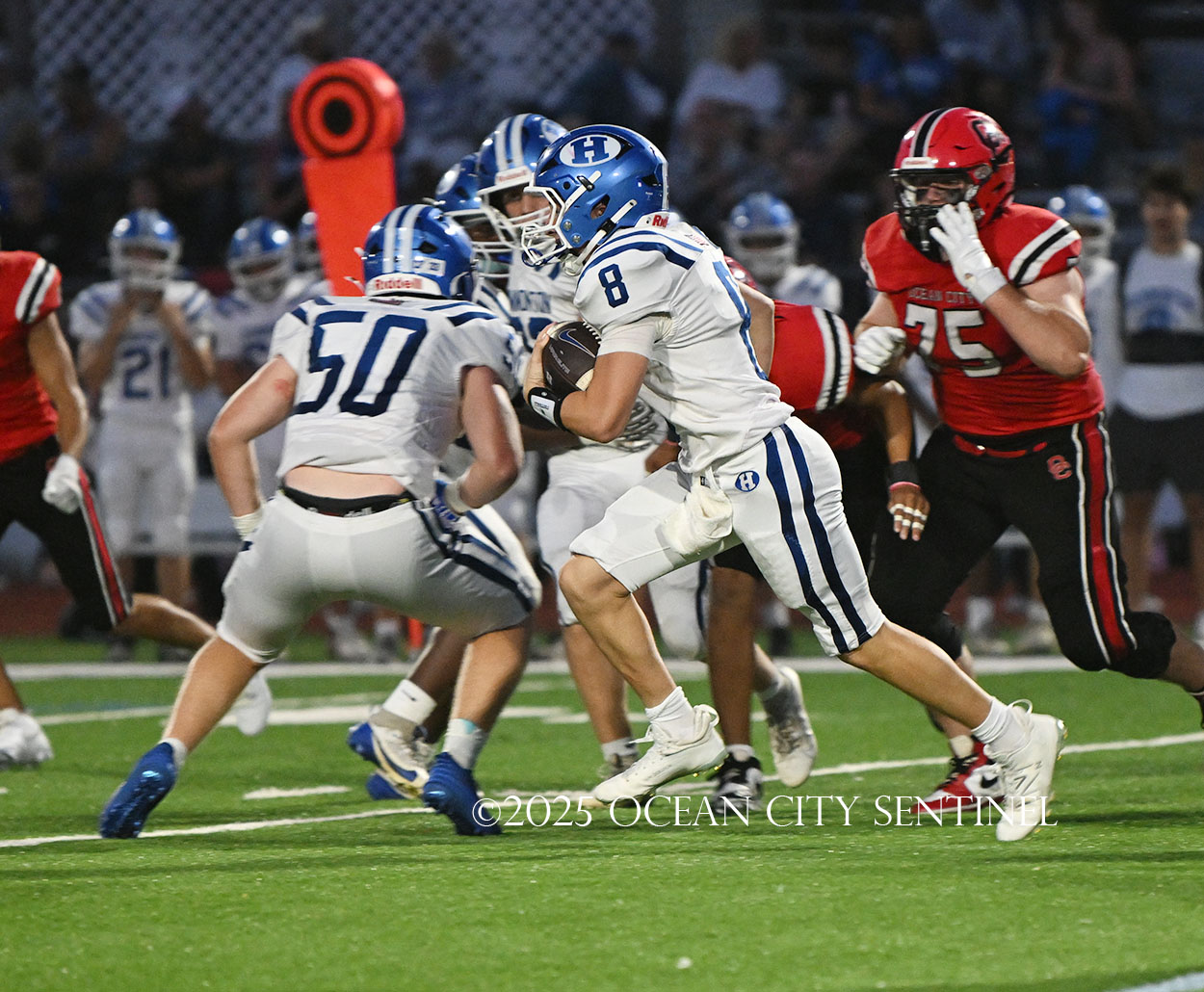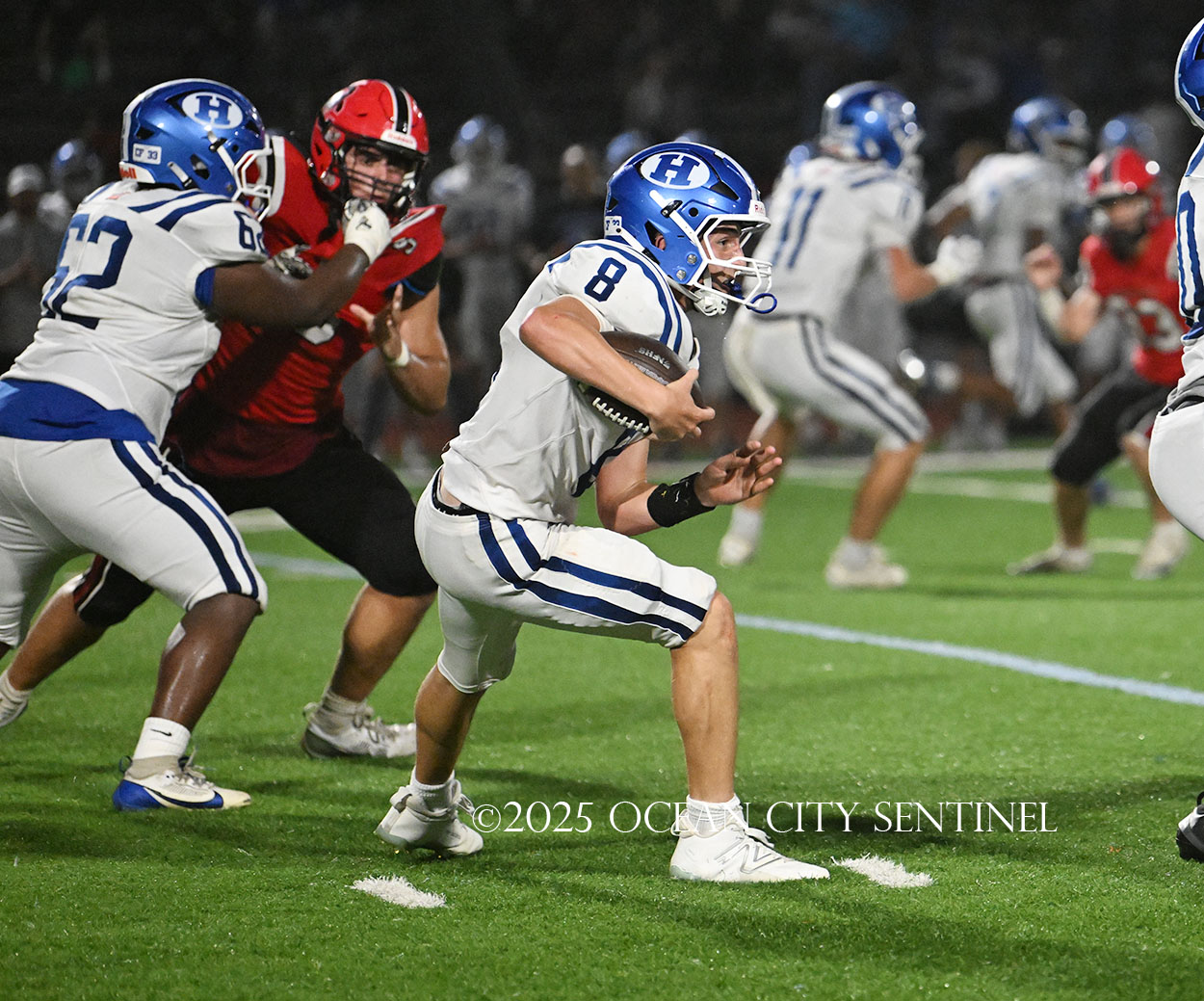 OCEAN CITY – At the halfway point of the regular season, the Ocean City Red Raiders improved to 3-2 after a gutsy win over the Hammonton Blue Devils Friday night, Sept. 26.