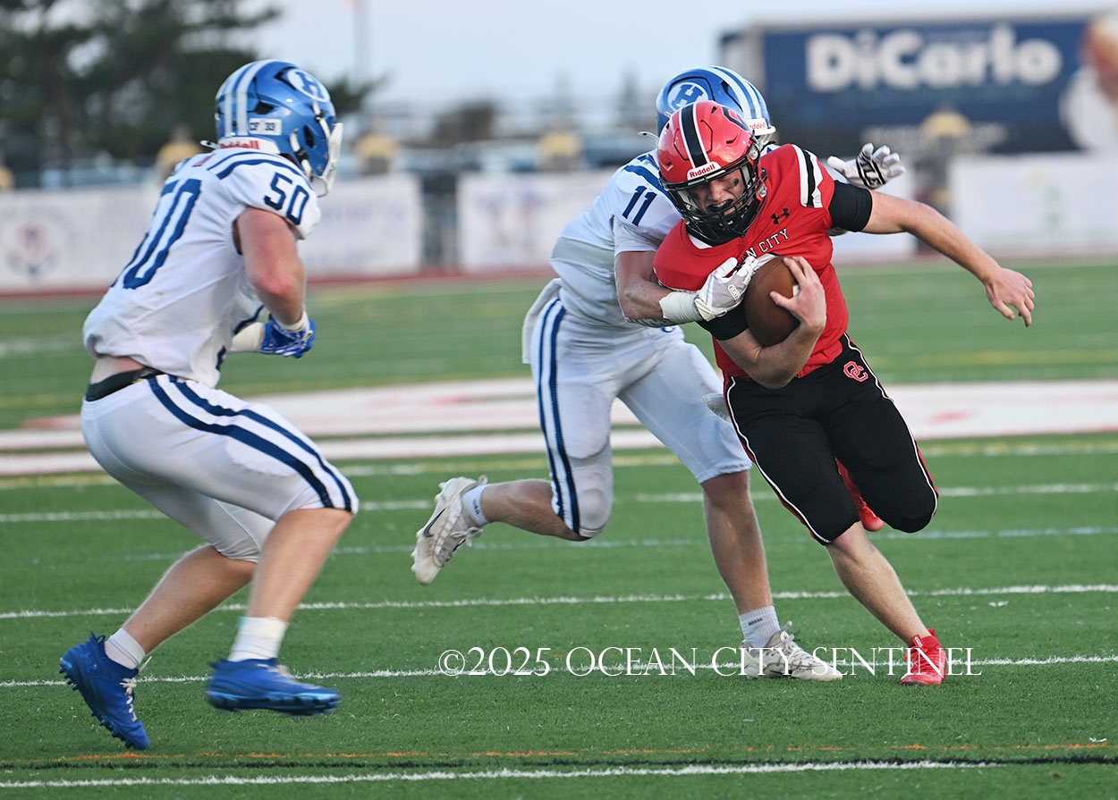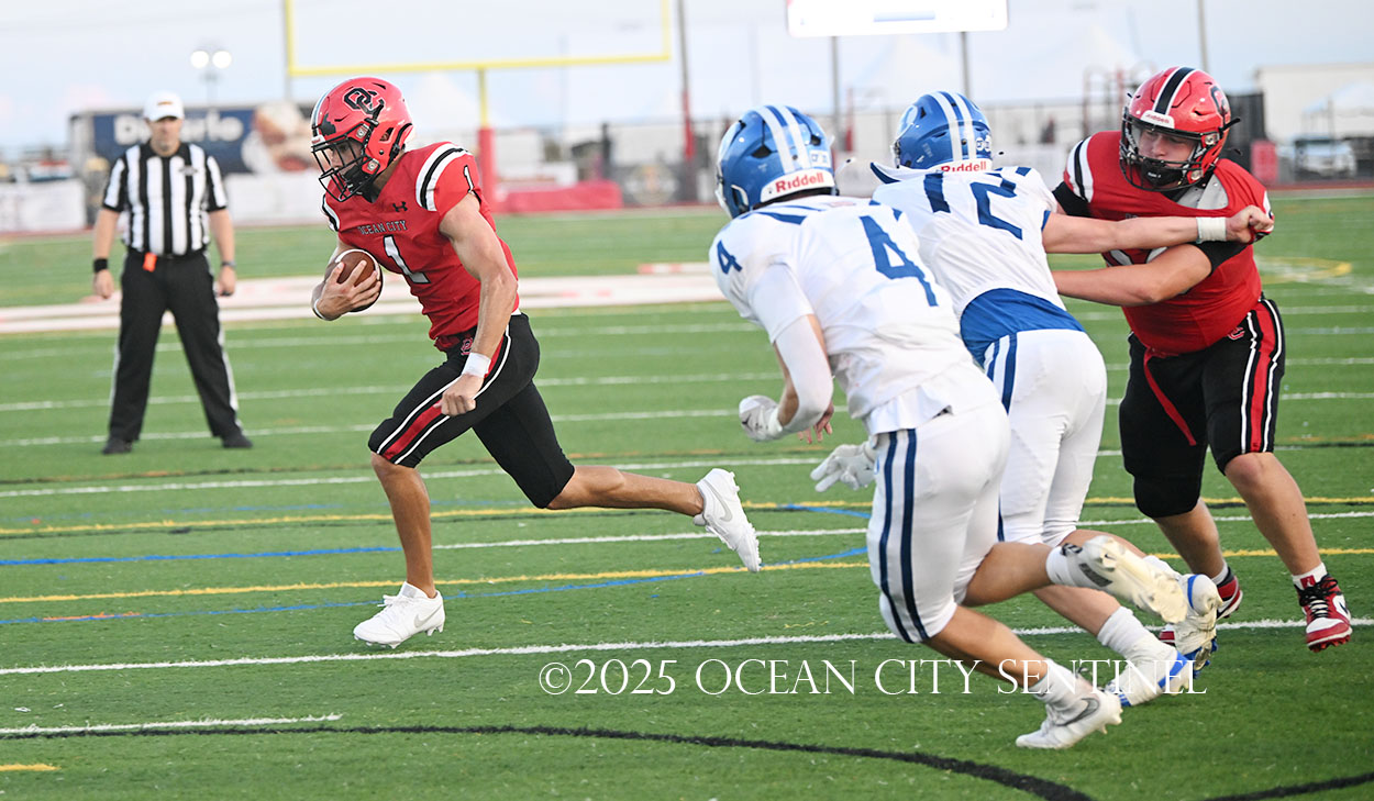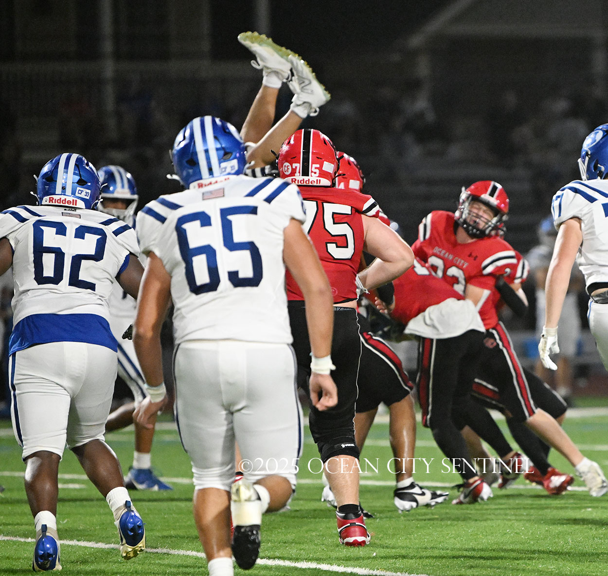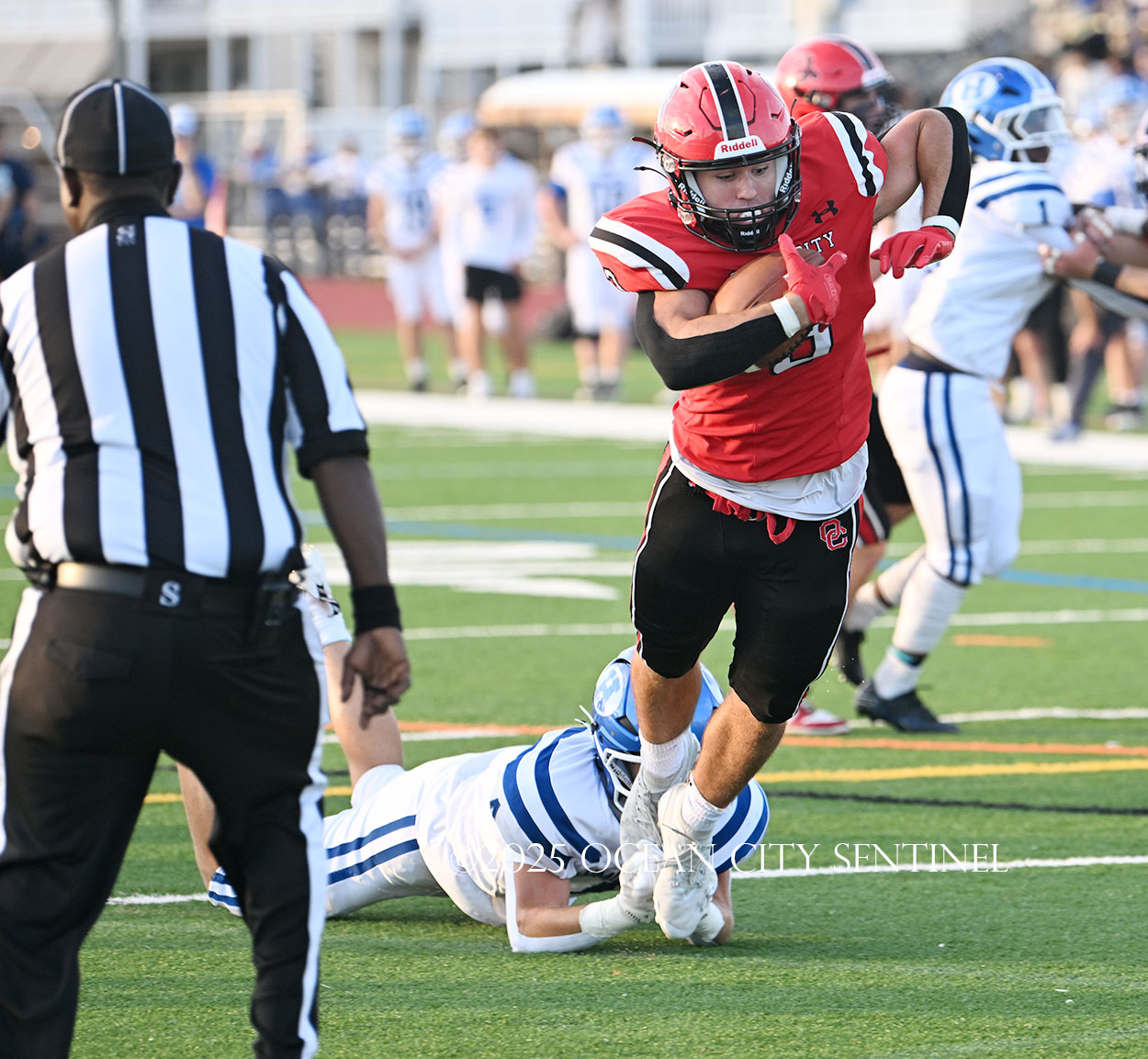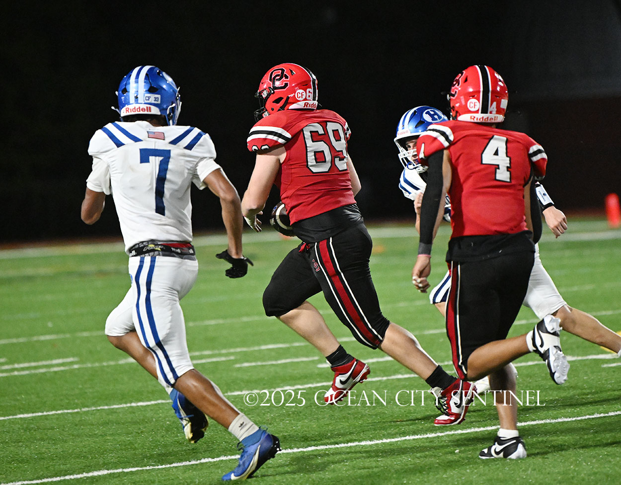 Mike Marczyk made the game’s first big play for the Raiders as he intercepted a pass to give great field position to running back Triston Schmidt and the Ocean City offense.