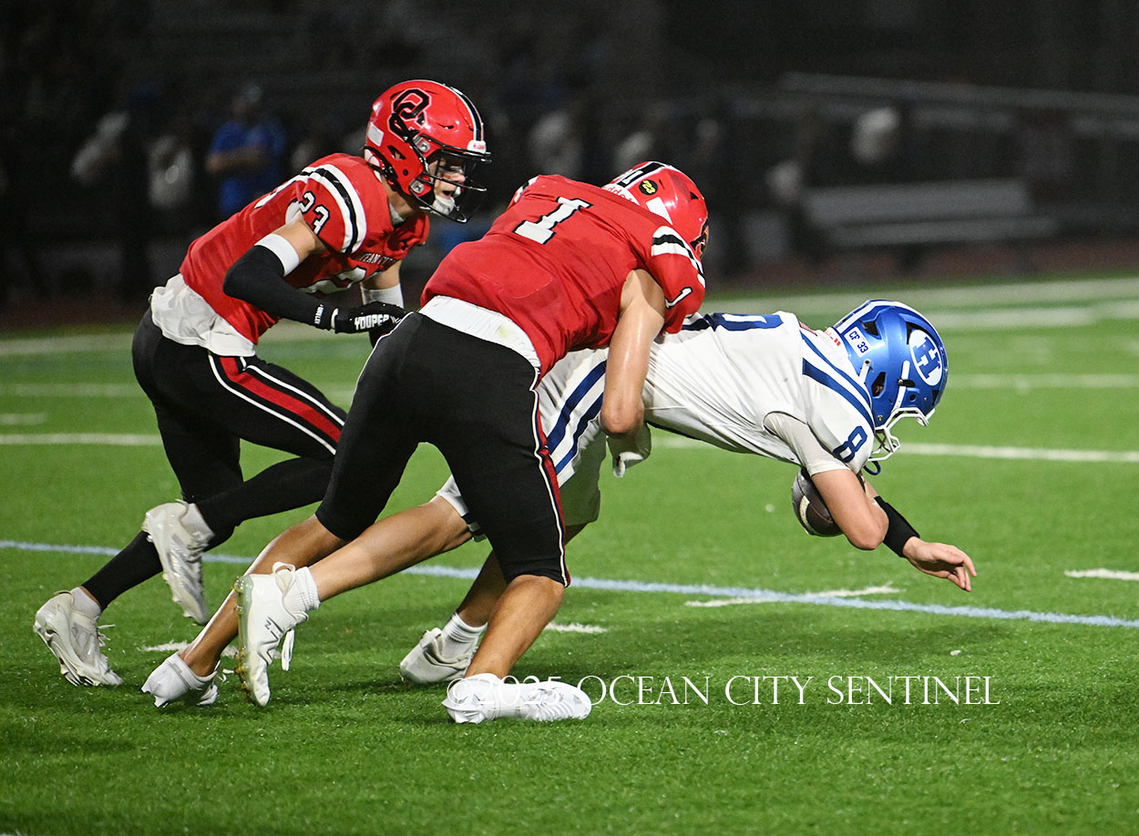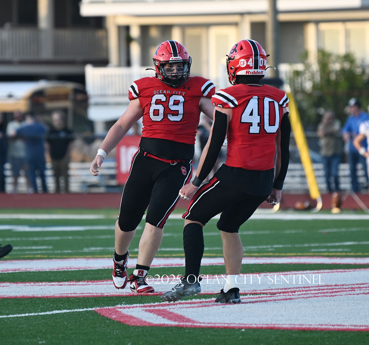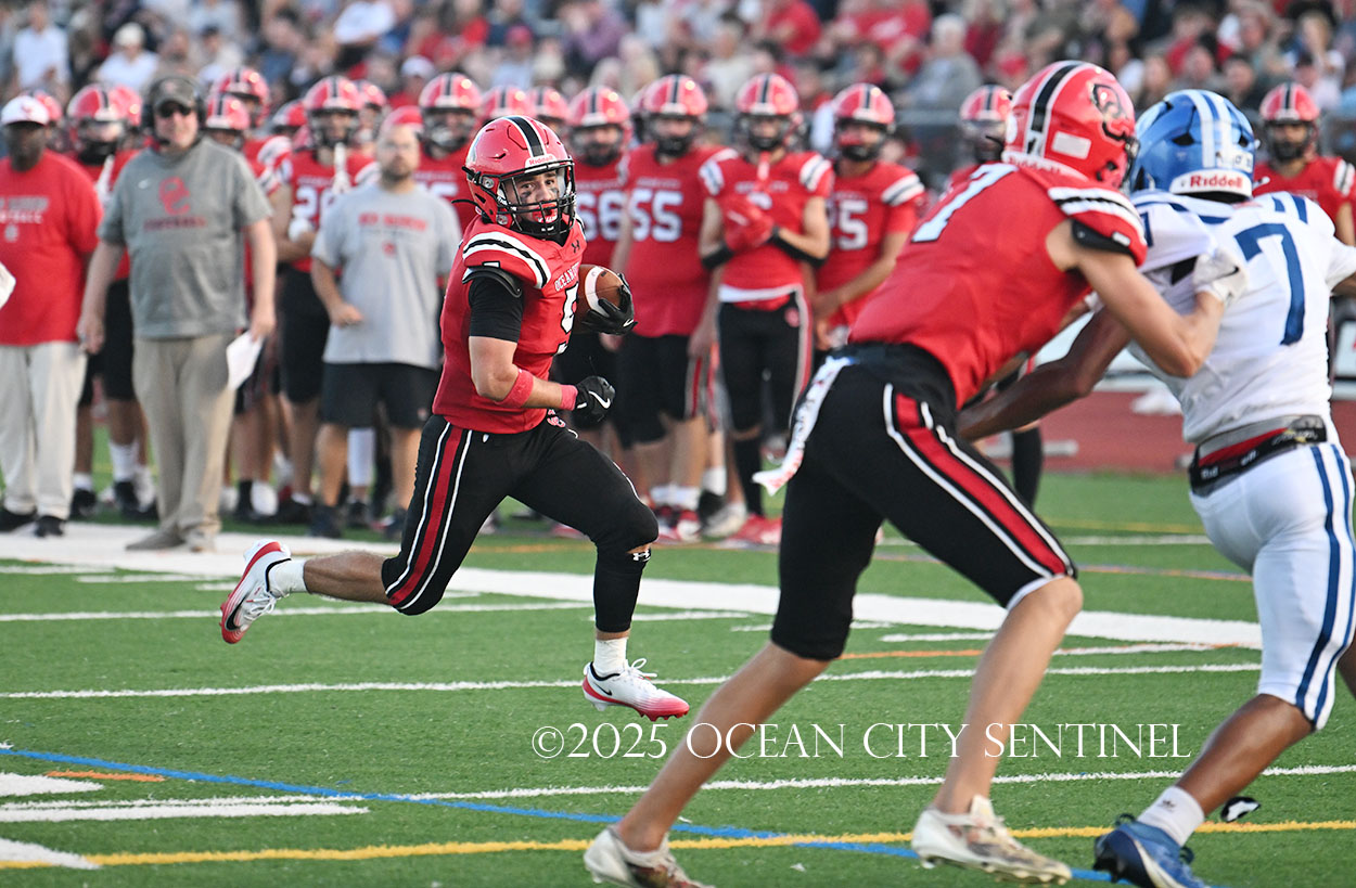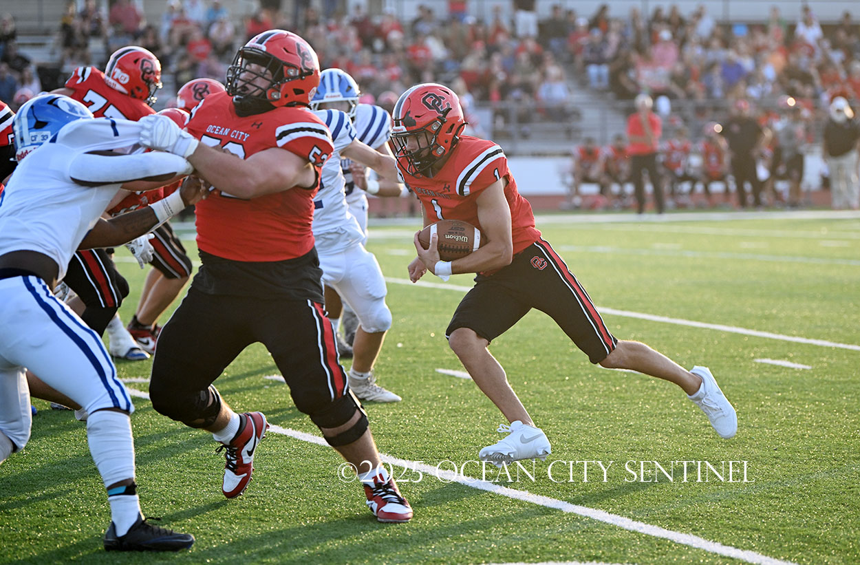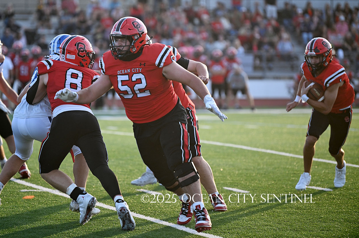 Mike Marczyk made the game’s first big play for the Raiders as he intercepted a pass to give great field position to running back Triston Schmidt and the Ocean City offense.