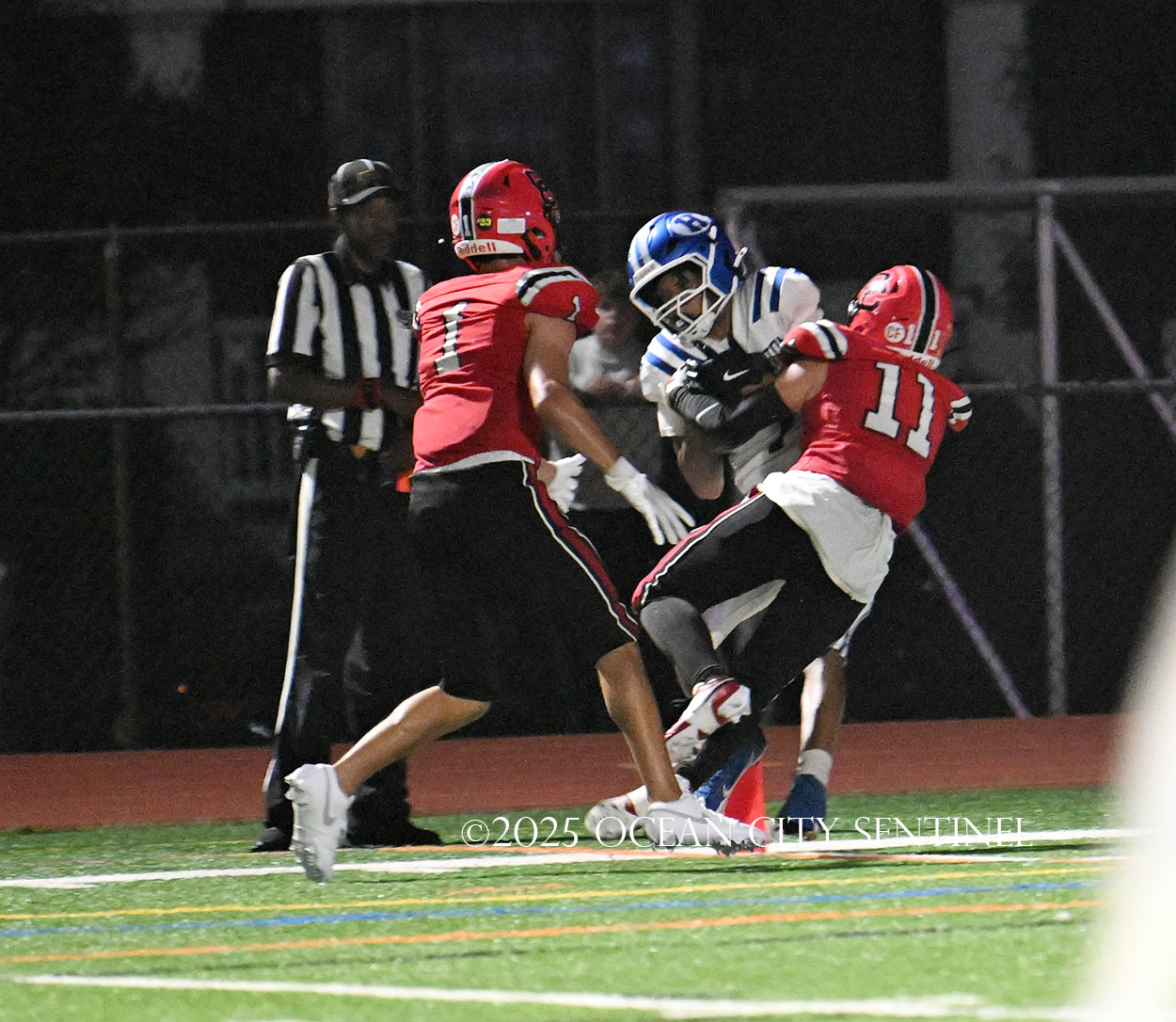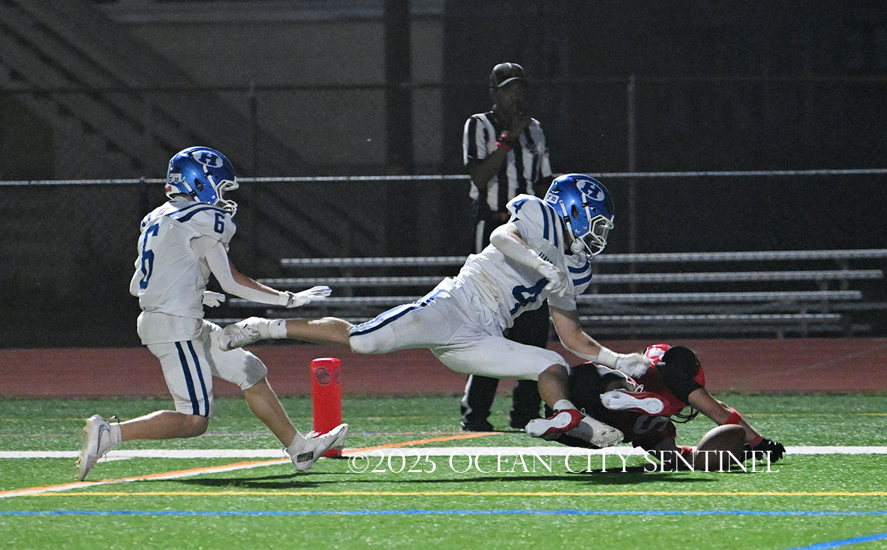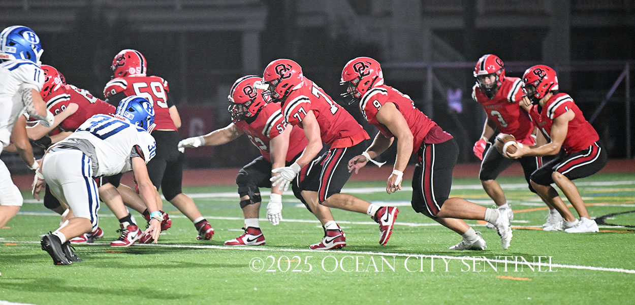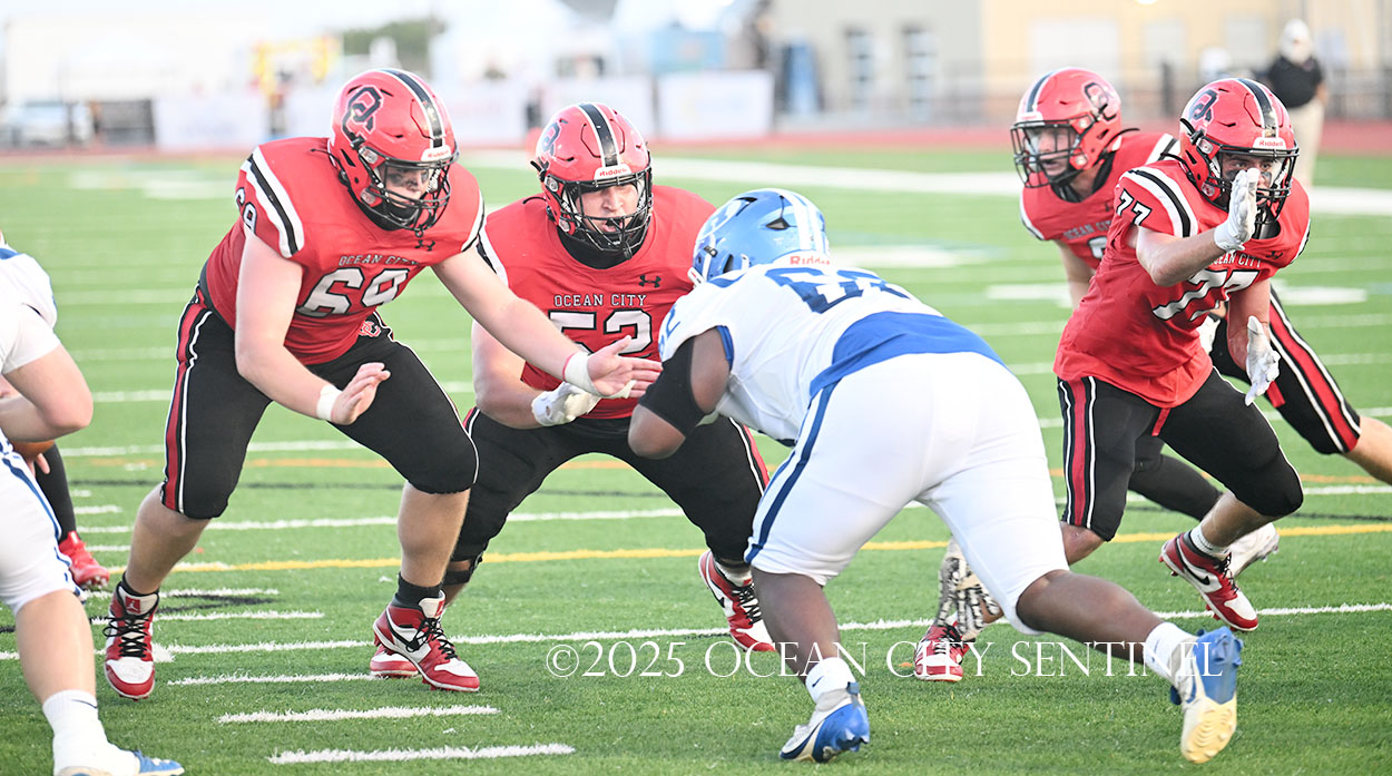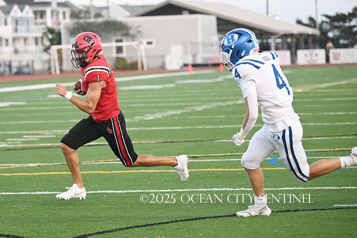 Mike Marczyk made the game’s first big play for the Raiders as he intercepted a pass to give great field position to running back Triston Schmidt and the Ocean City offense.