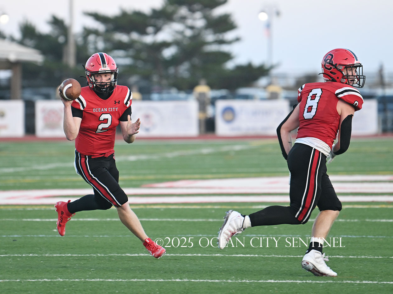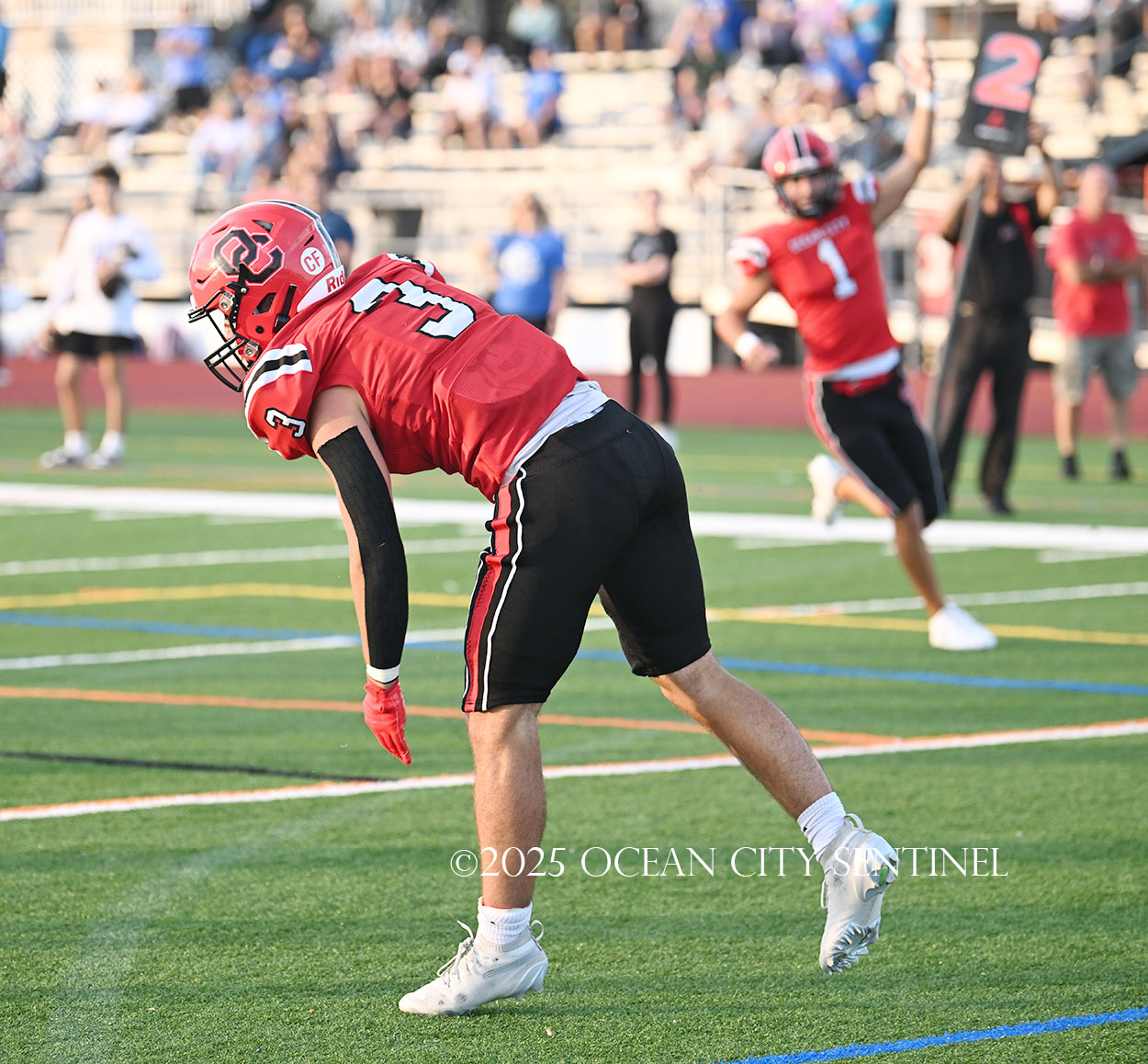 Ocean City came back in the second quarter, which saw the Raiders only possess the ball a single time. The offense marched down the field in 15 plays during which they imposed their will and ran the ball 13 times. The drive took up nine minutes of clock and was topped off by a touchdown catch by senior Michael Ragazzi from quarterback Jackson Becker.