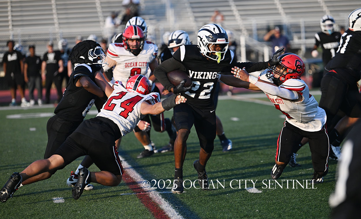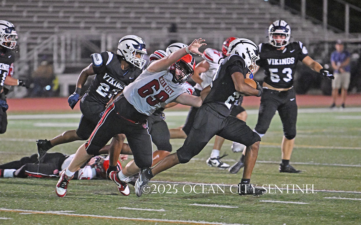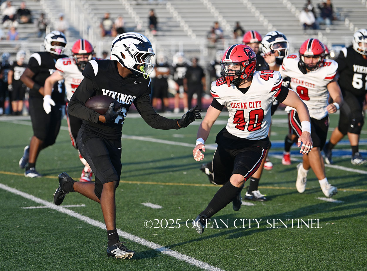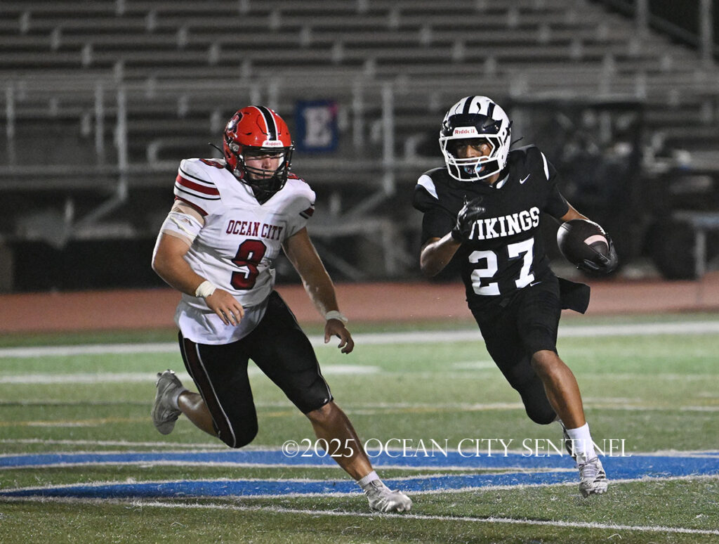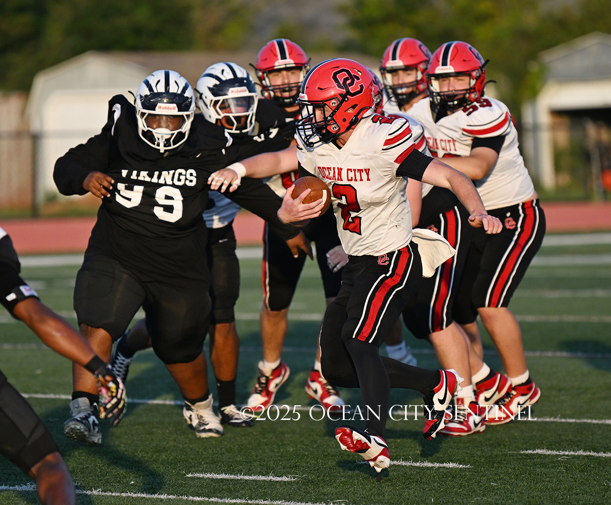ATLANTIC CITY — The Vikings used big plays and a stifling defense to shut out the Red Raiders as Atlantic City High School topped Ocean City 26-0 on Sept. 19.