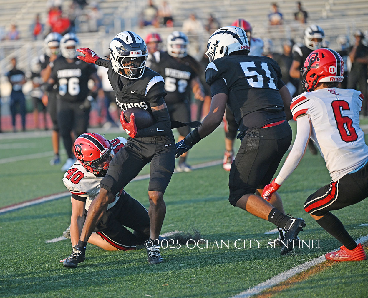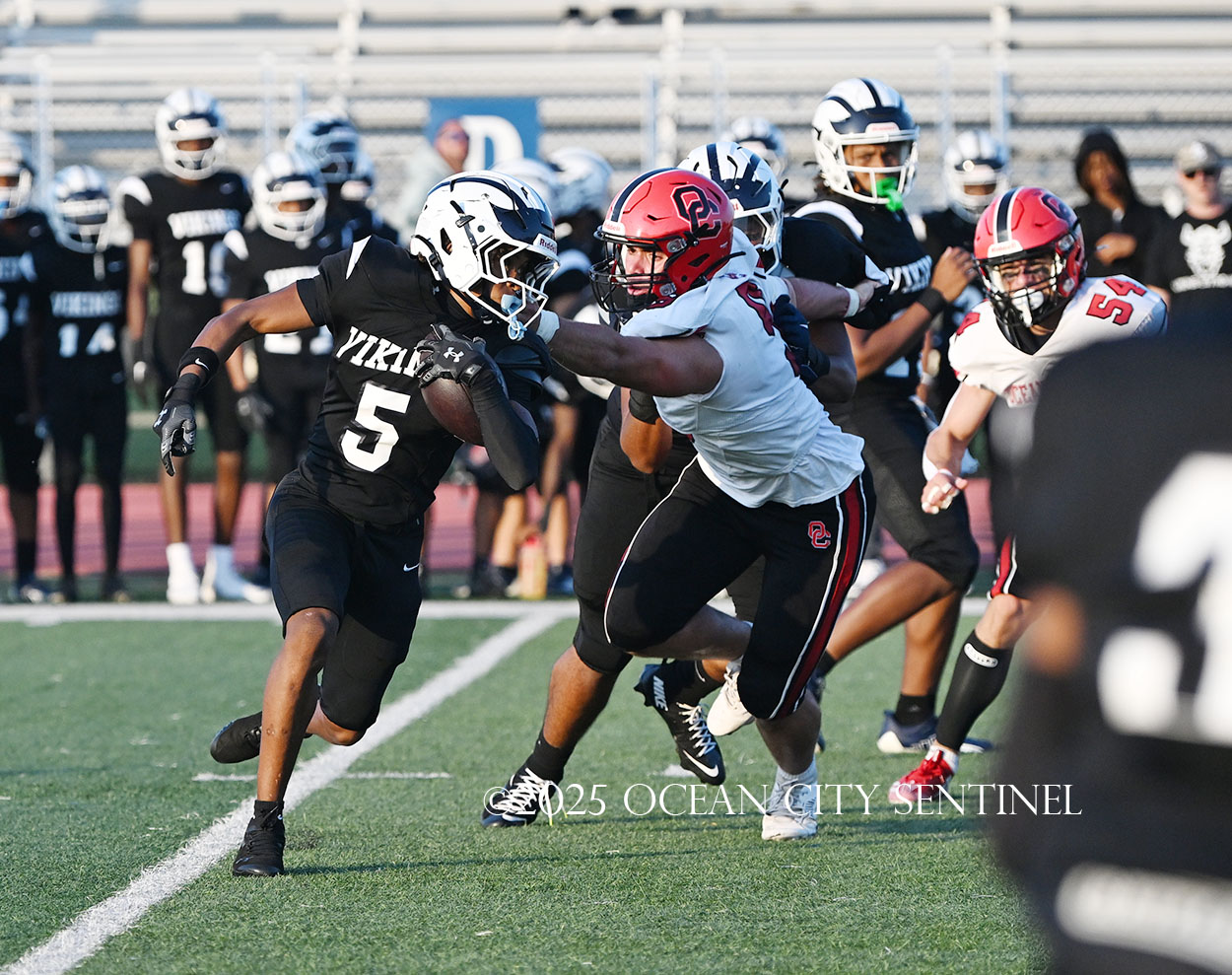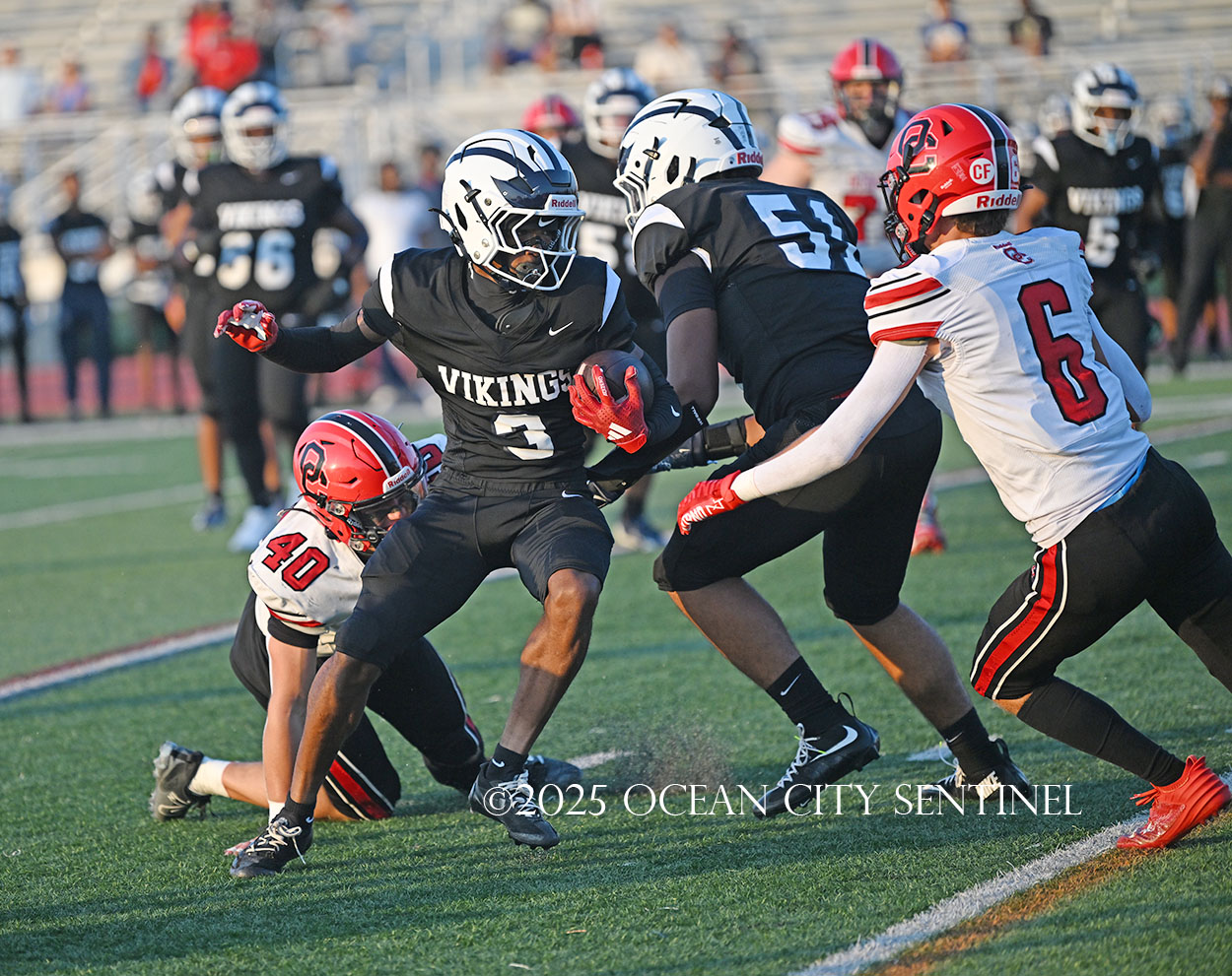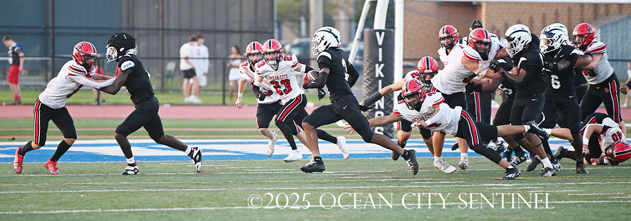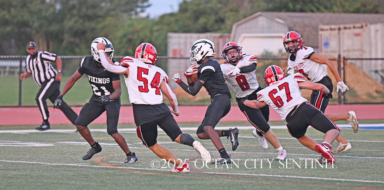 ATLANTIC CITY — The Vikings used big plays and a stifling defense to shut out the Red Raiders as Atlantic City High School topped Ocean City 26-0 on Sept. 19.