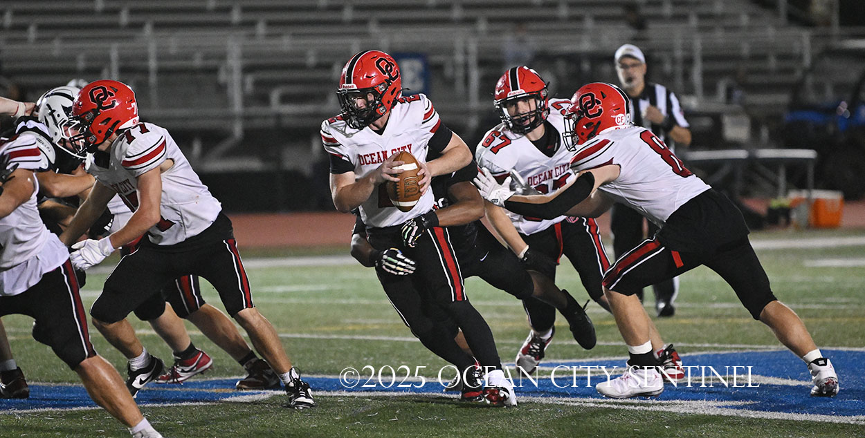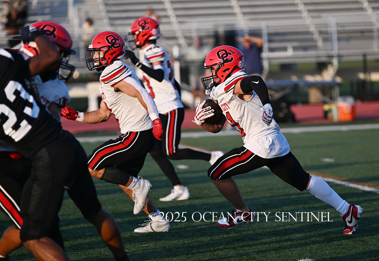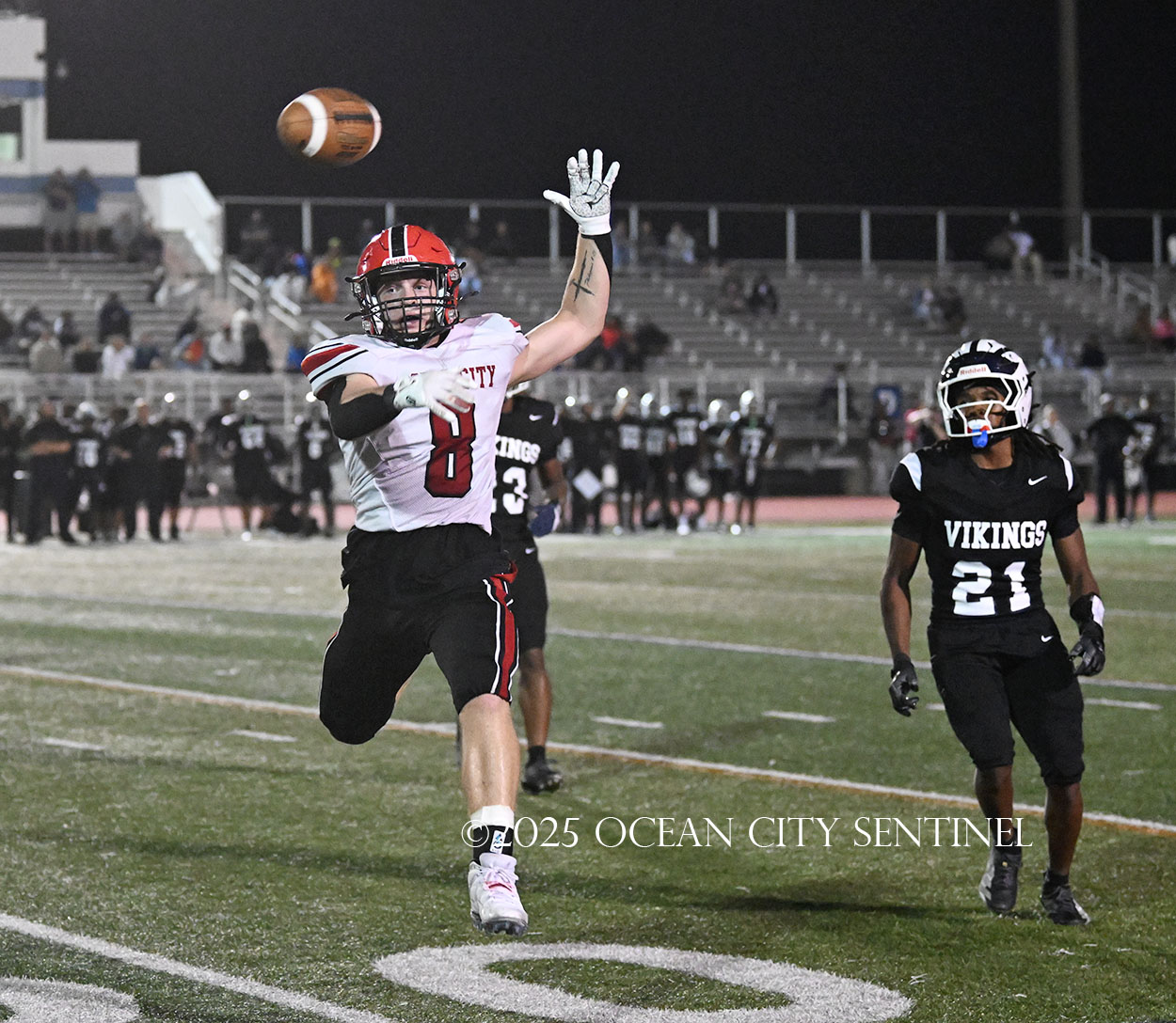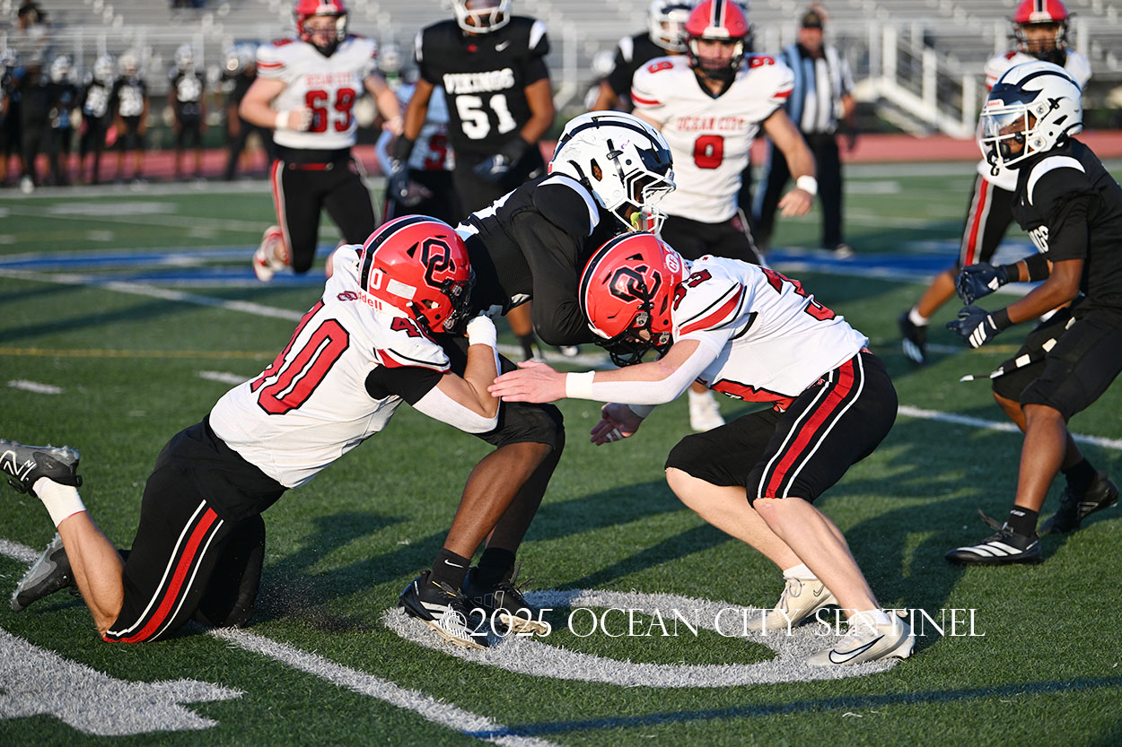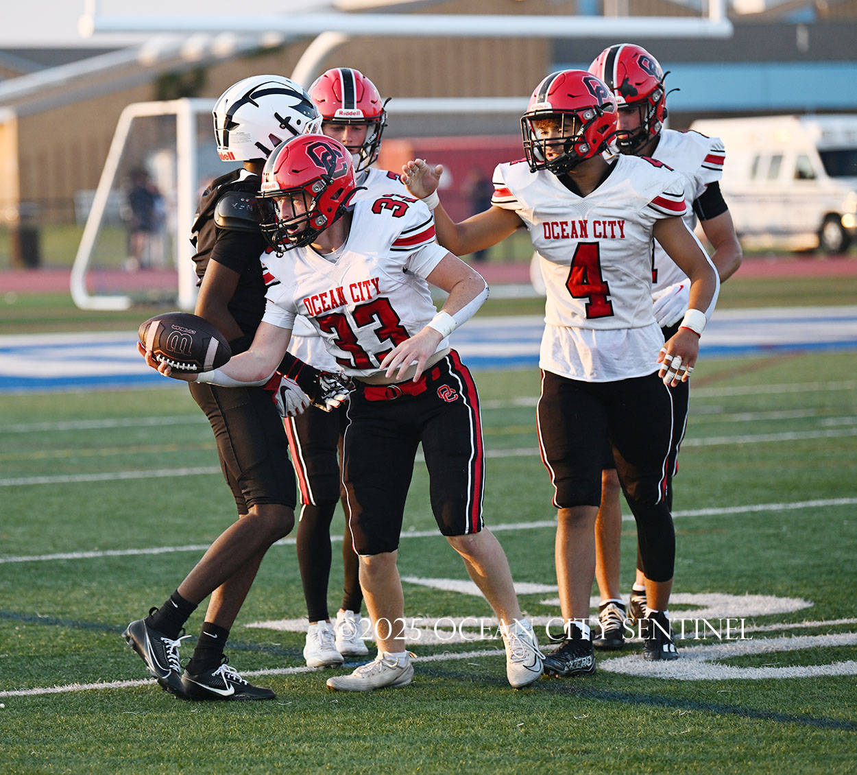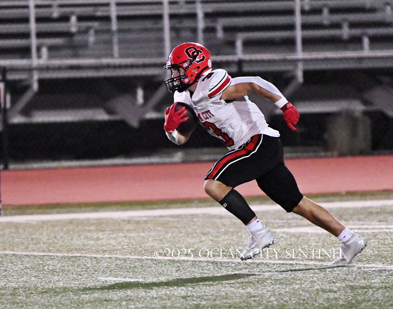 Ocean City’s Becker had 122 yards passing but tossed multiple interceptions, while running back Schmidt was limited to 34 yards on the ground and Compton led the Red Raiders with 55 yards receiving.
