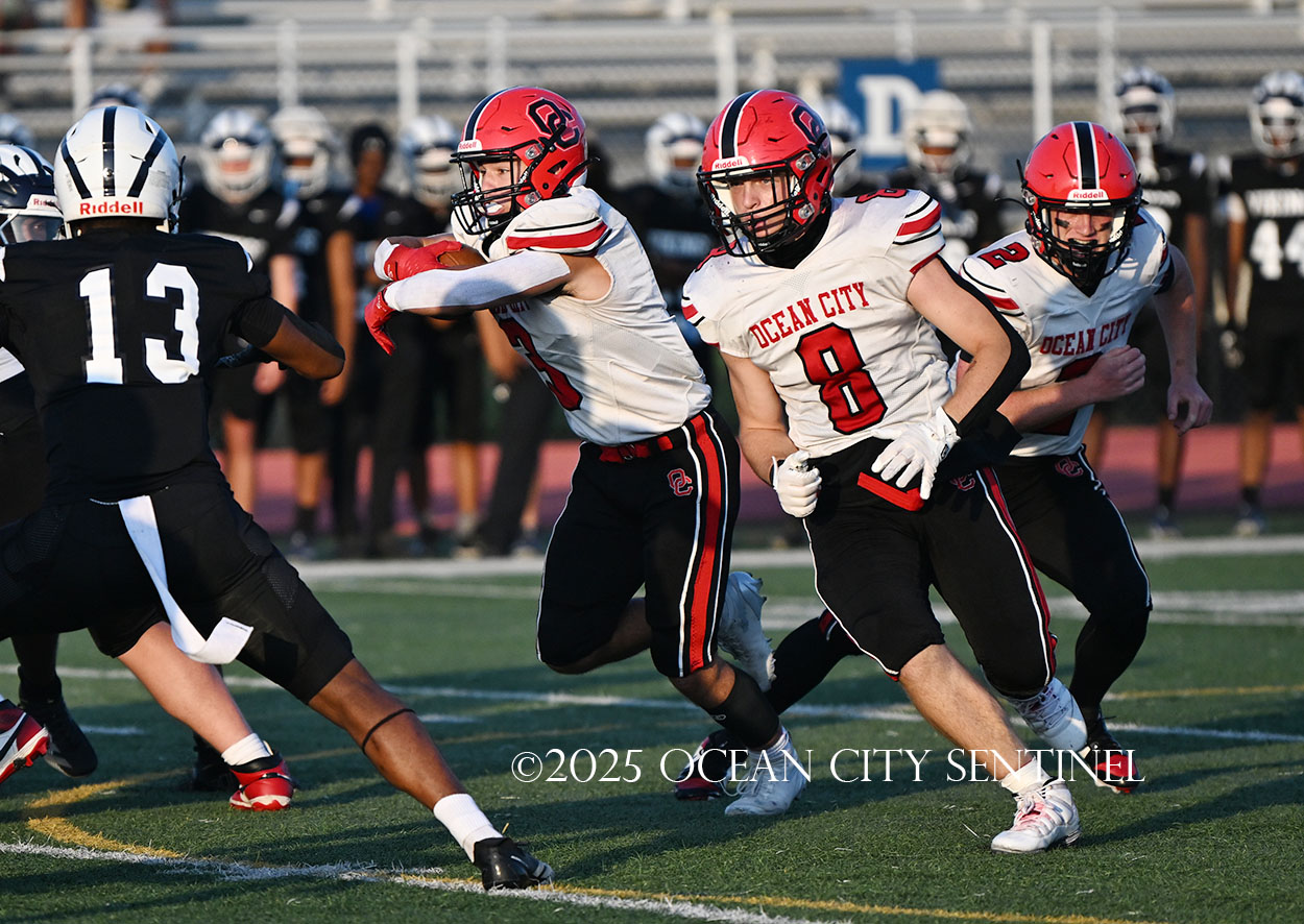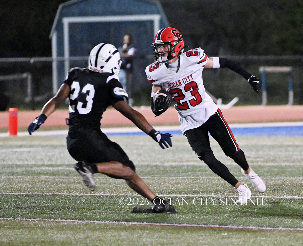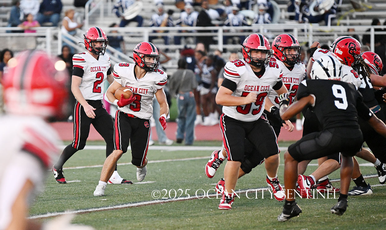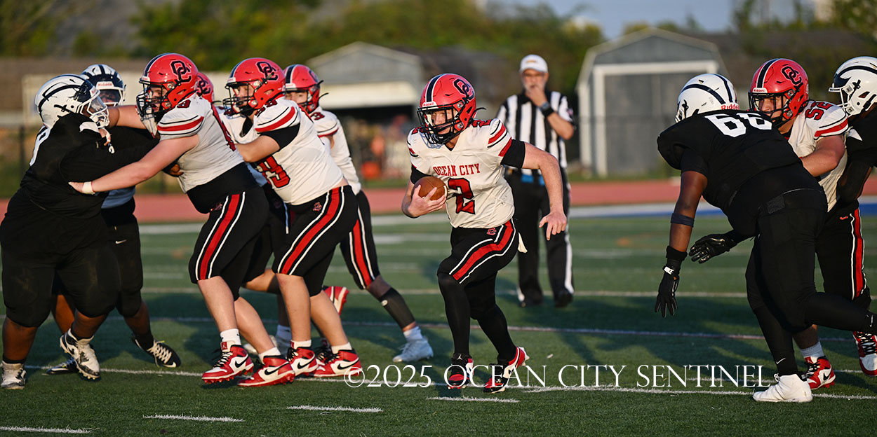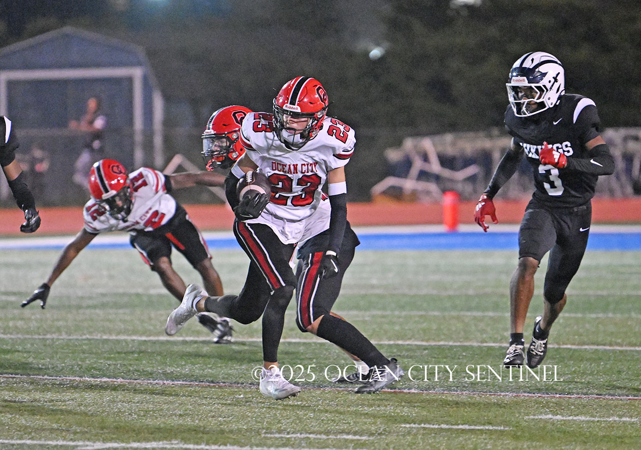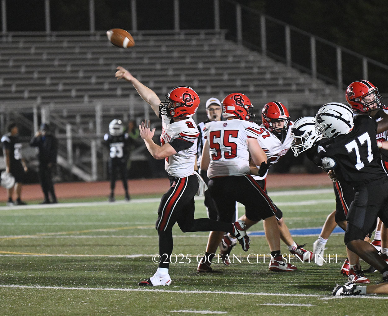 Ocean City’s Becker had 122 yards passing but tossed multiple interceptions, while running back Schmidt was limited to 34 yards on the ground and Compton led the Red Raiders with 55 yards receiving.