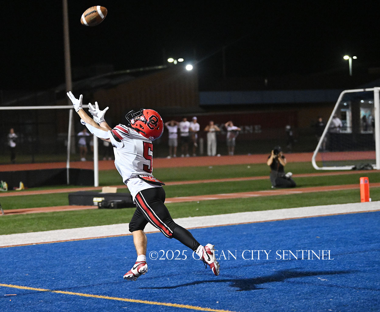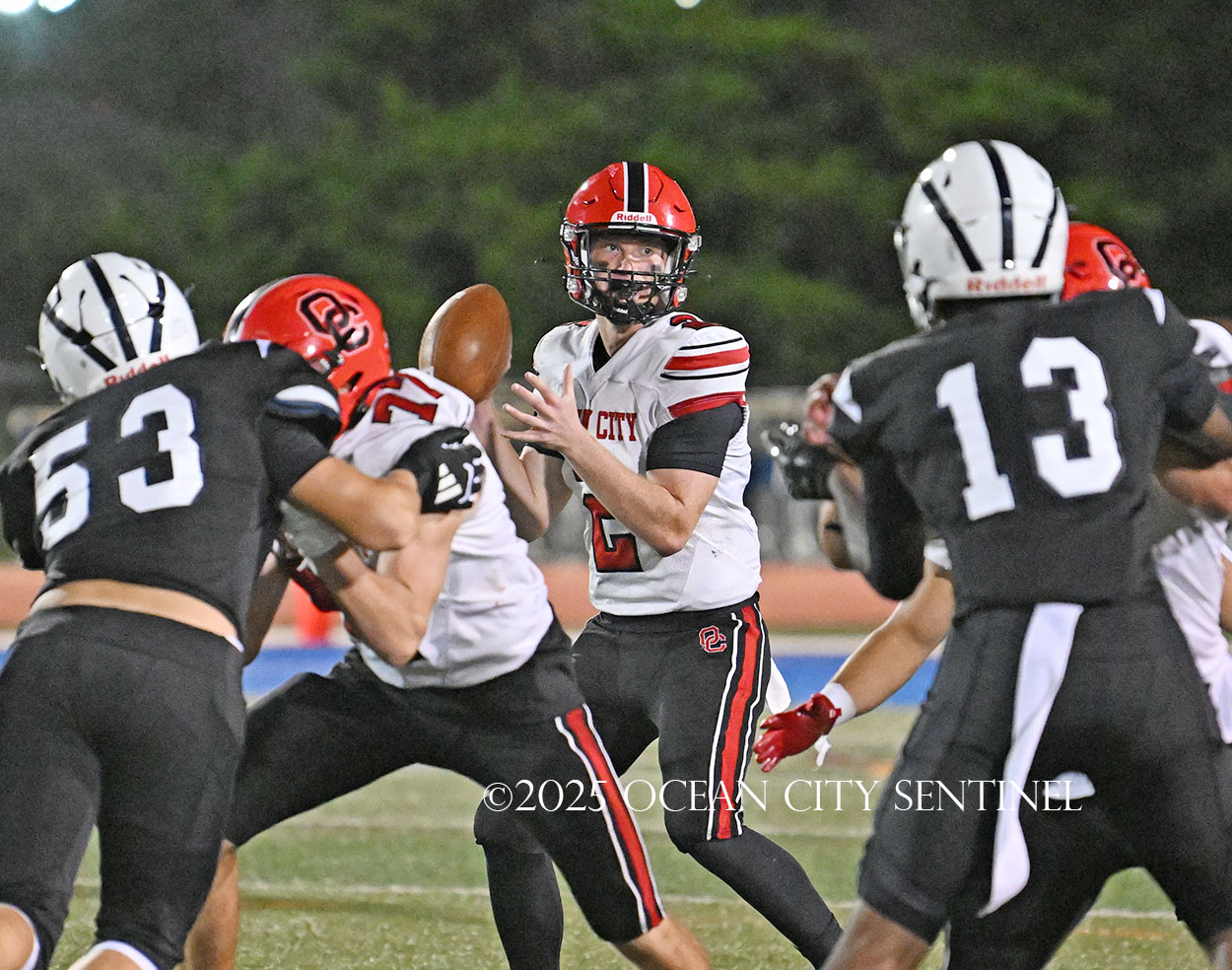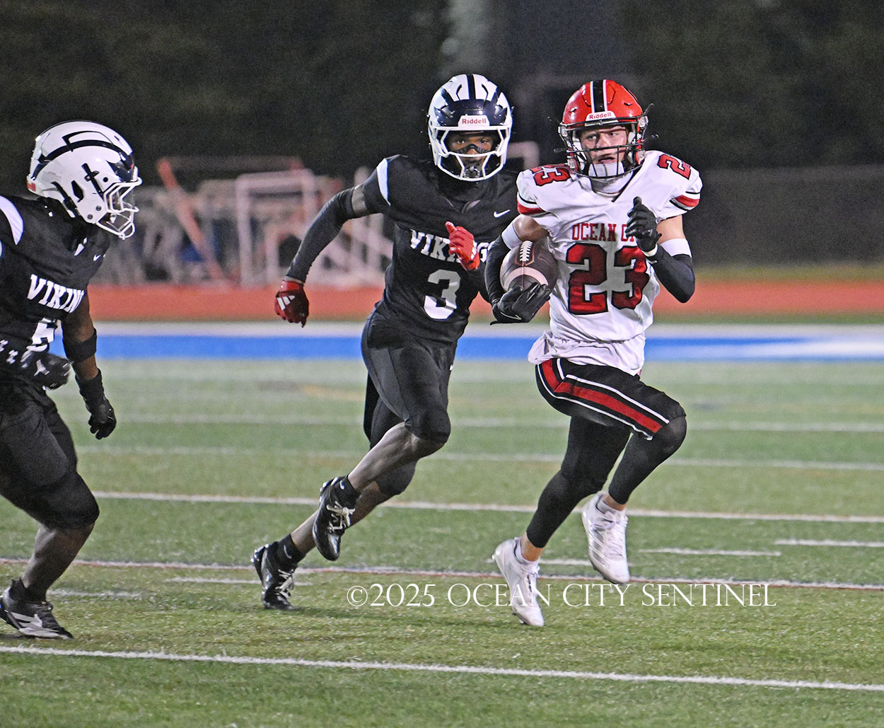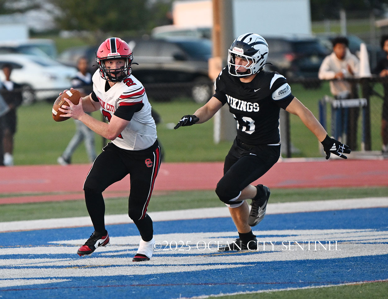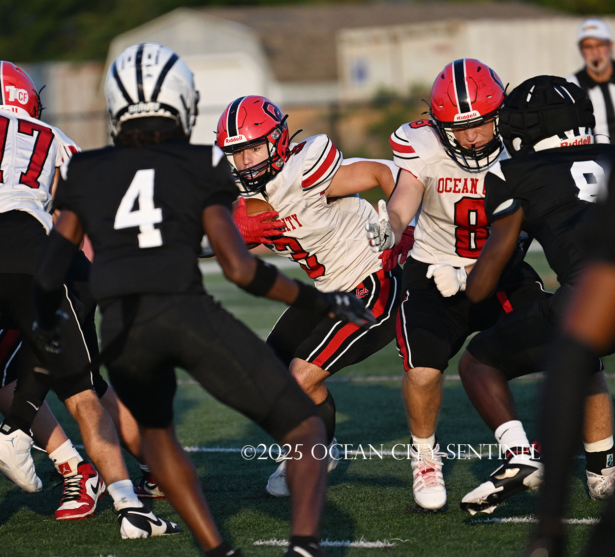 Ocean City’s Becker had 122 yards passing but tossed multiple interceptions, while running back Schmidt was limited to 34 yards on the ground and Compton led the Red Raiders with 55 yards receiving.