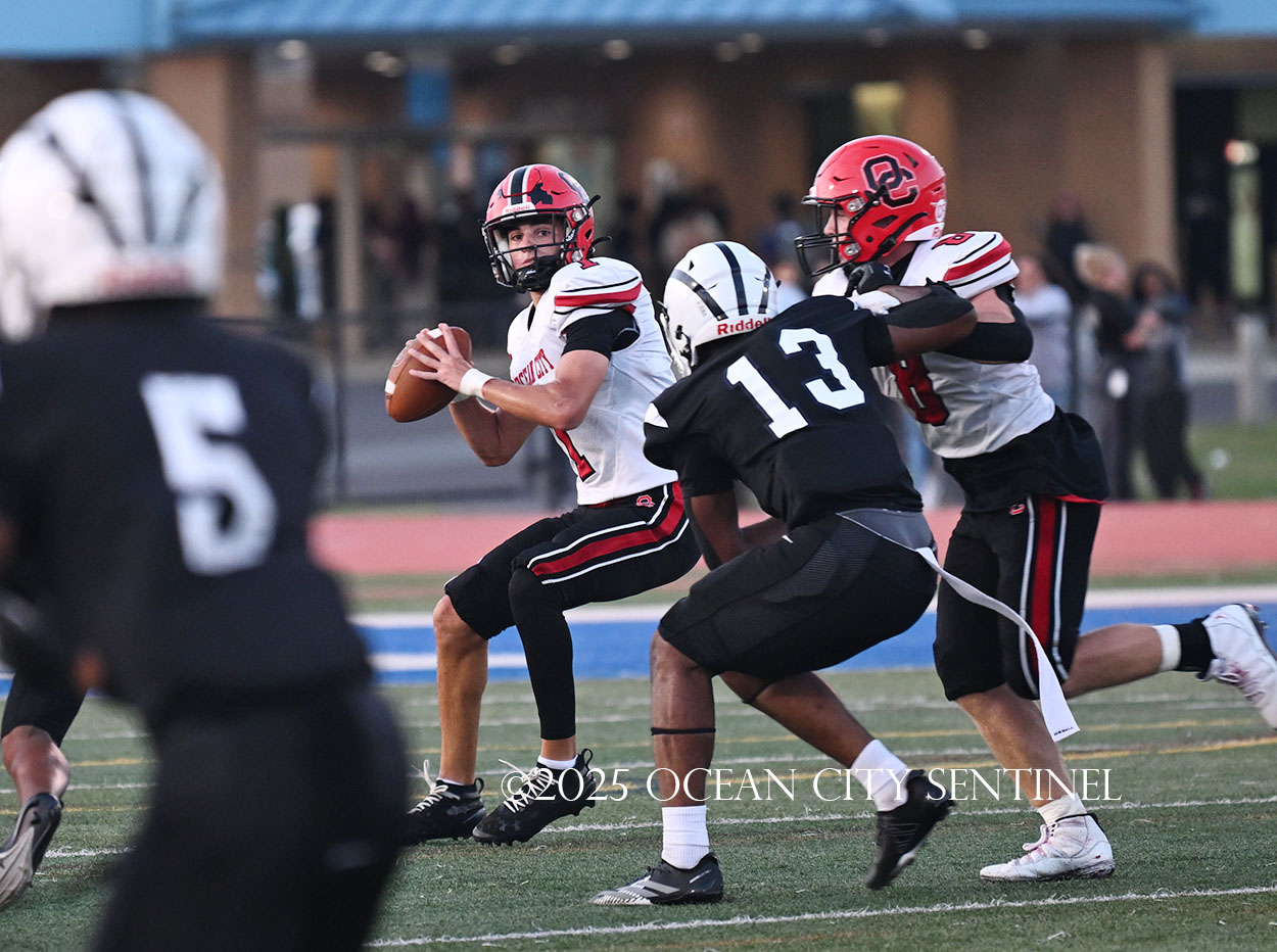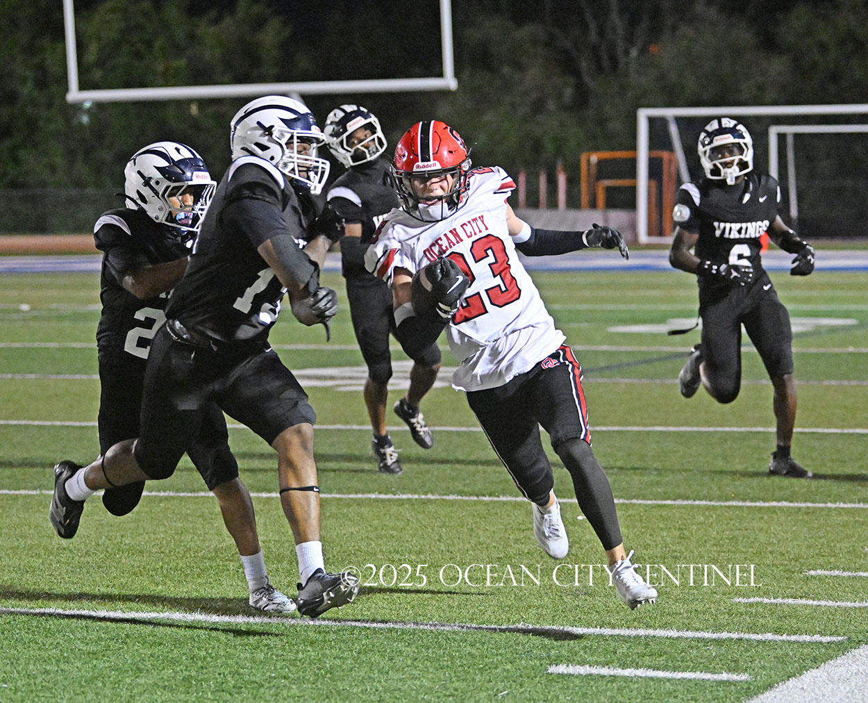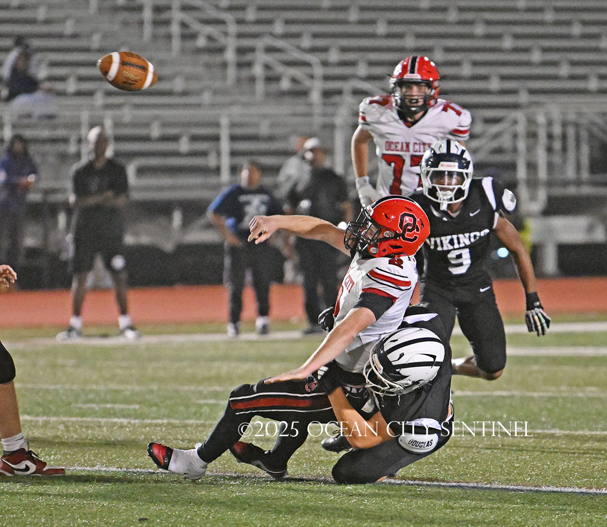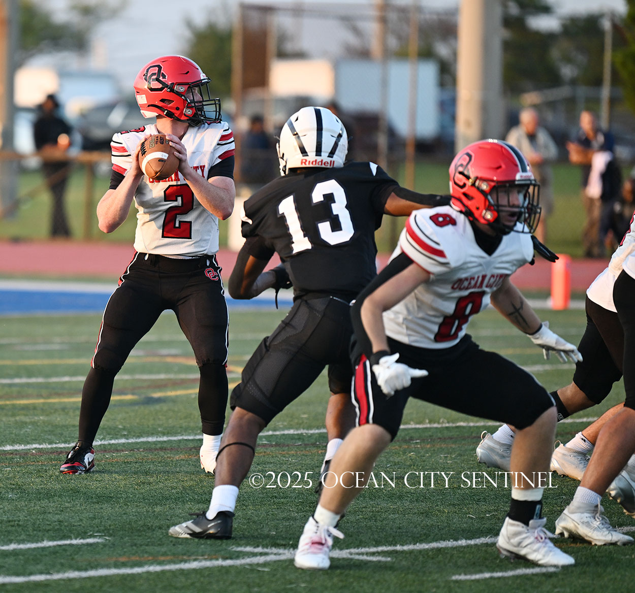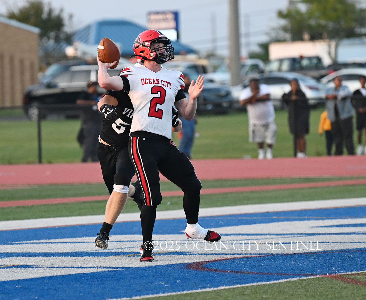 Ocean City’s Becker had 122 yards passing but tossed multiple interceptions, while running back Schmidt was limited to 34 yards on the ground and Compton led the Red Raiders with 55 yards receiving.