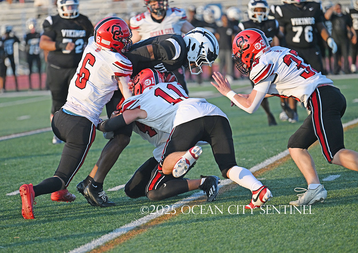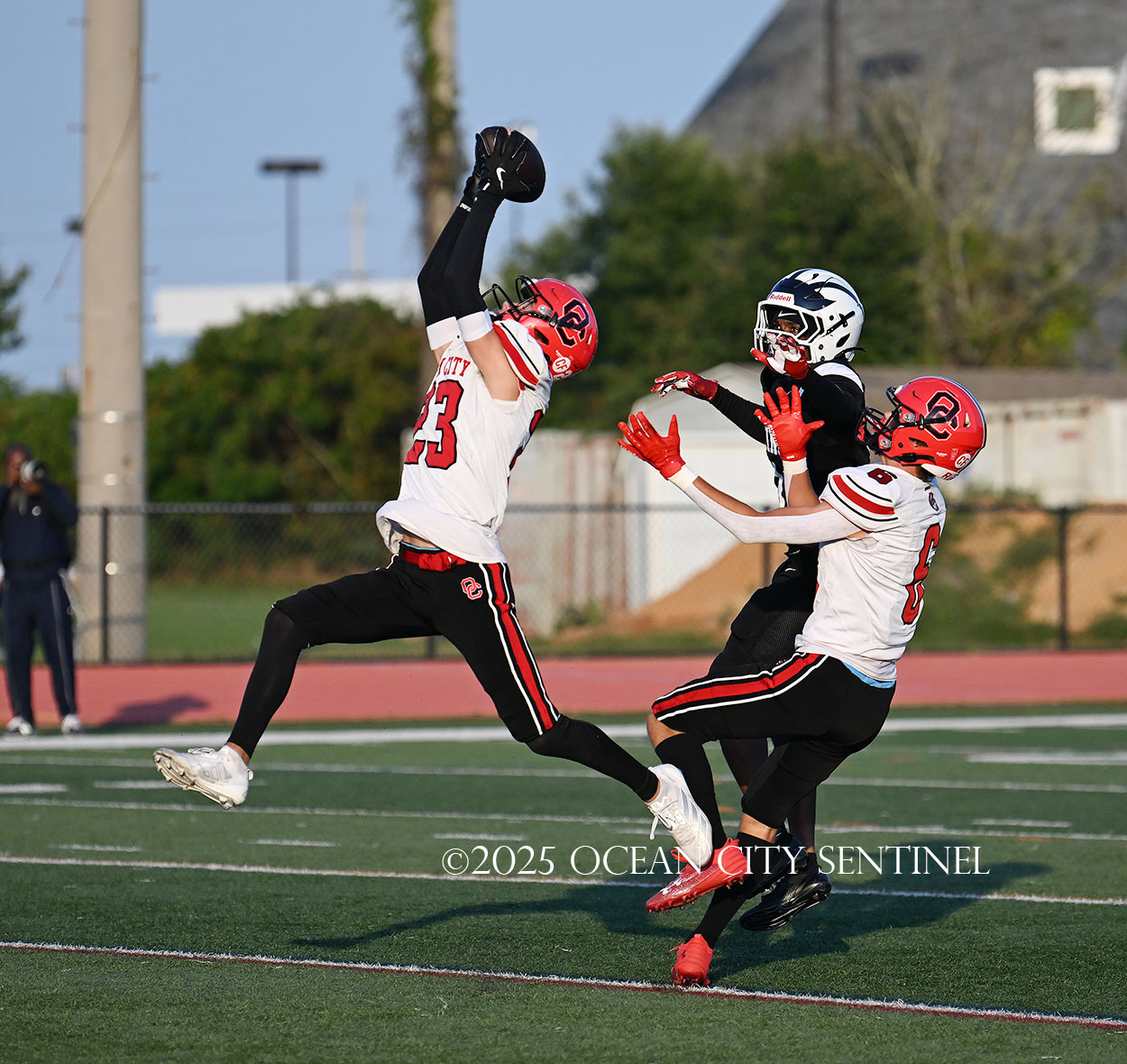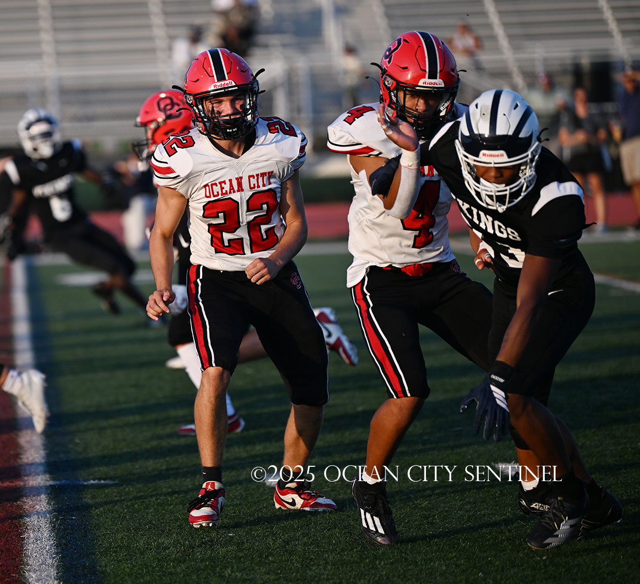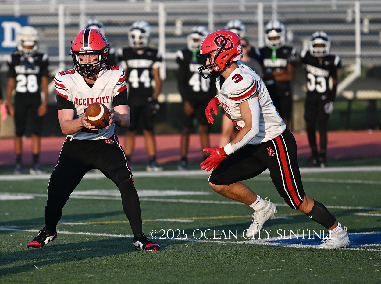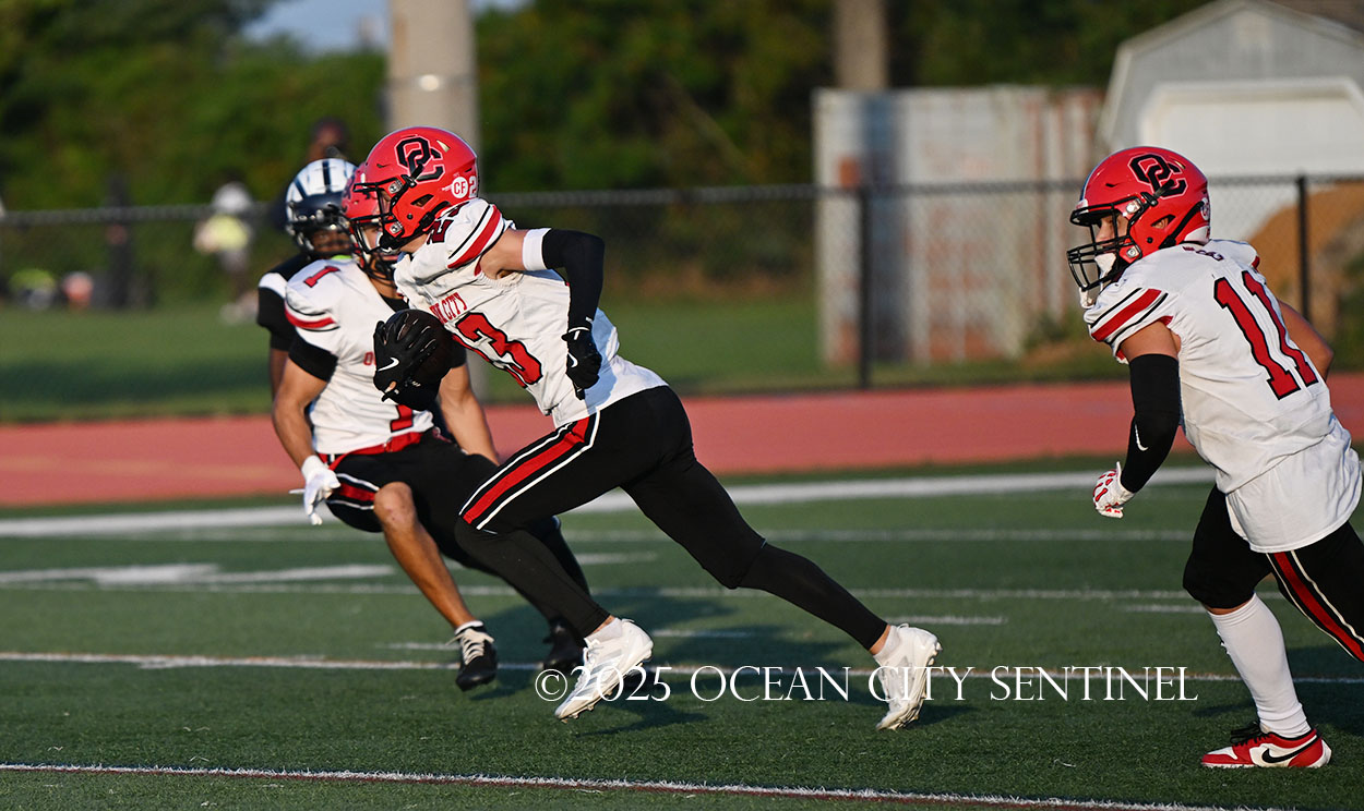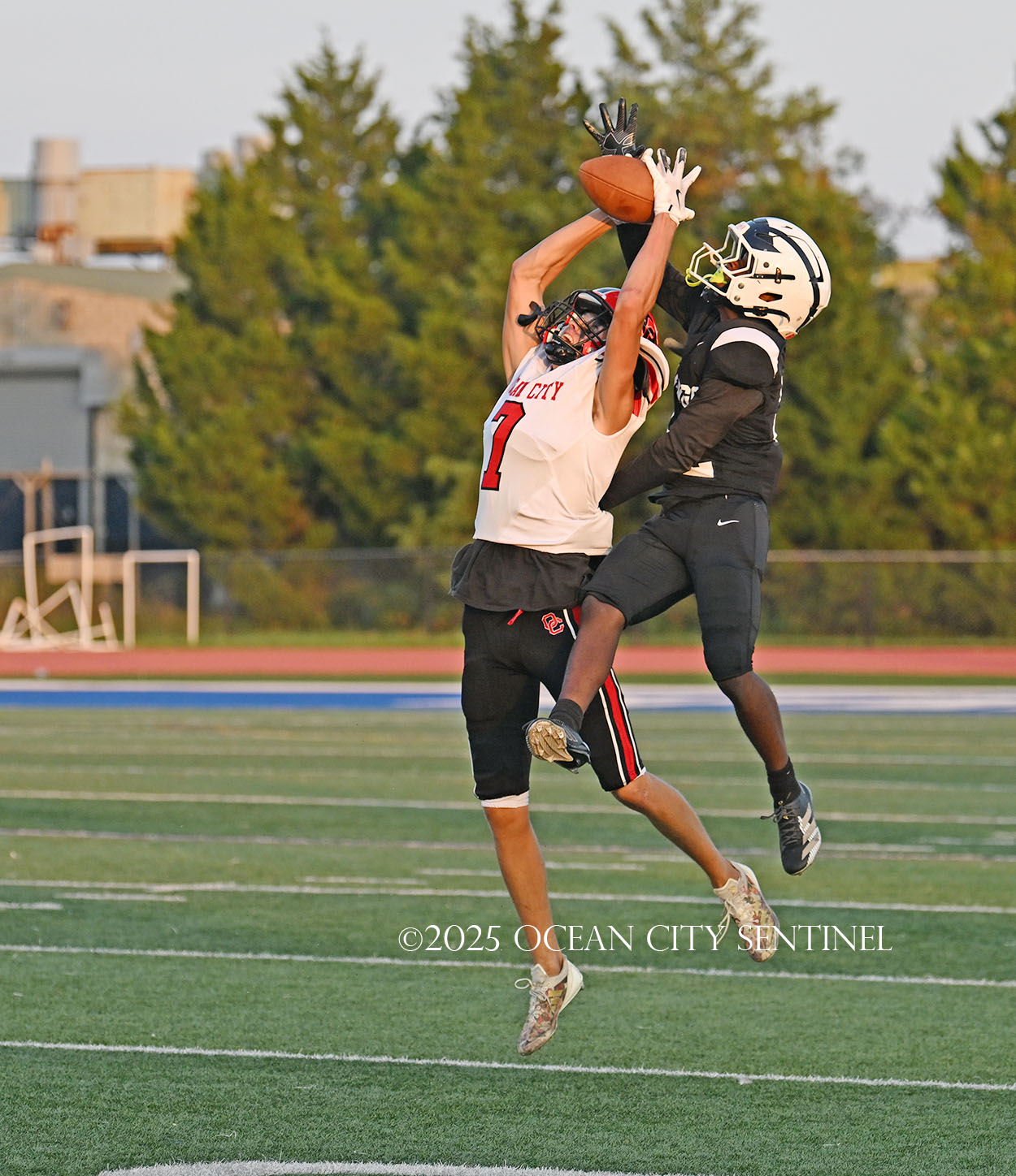 Ocean City’s Becker had 122 yards passing but tossed multiple interceptions, while running back Schmidt was limited to 34 yards on the ground and Compton led the Red Raiders with 55 yards receiving.