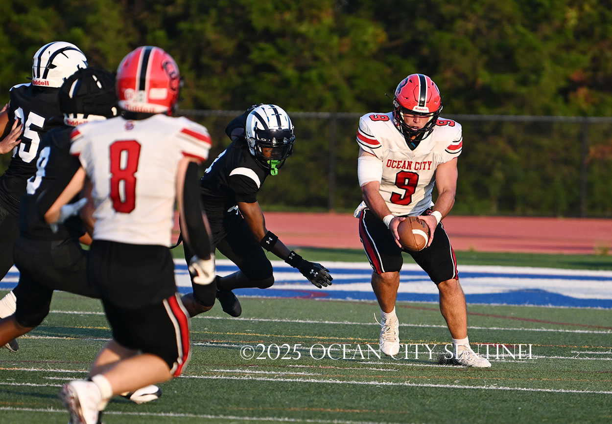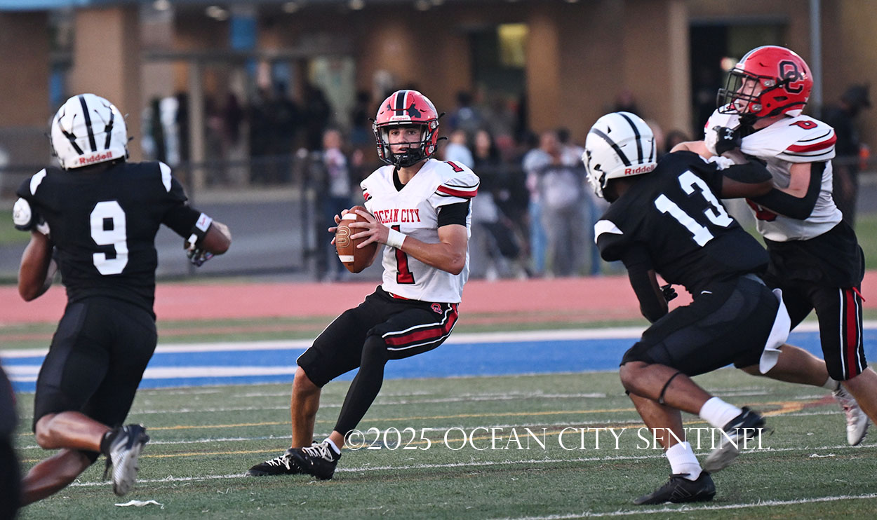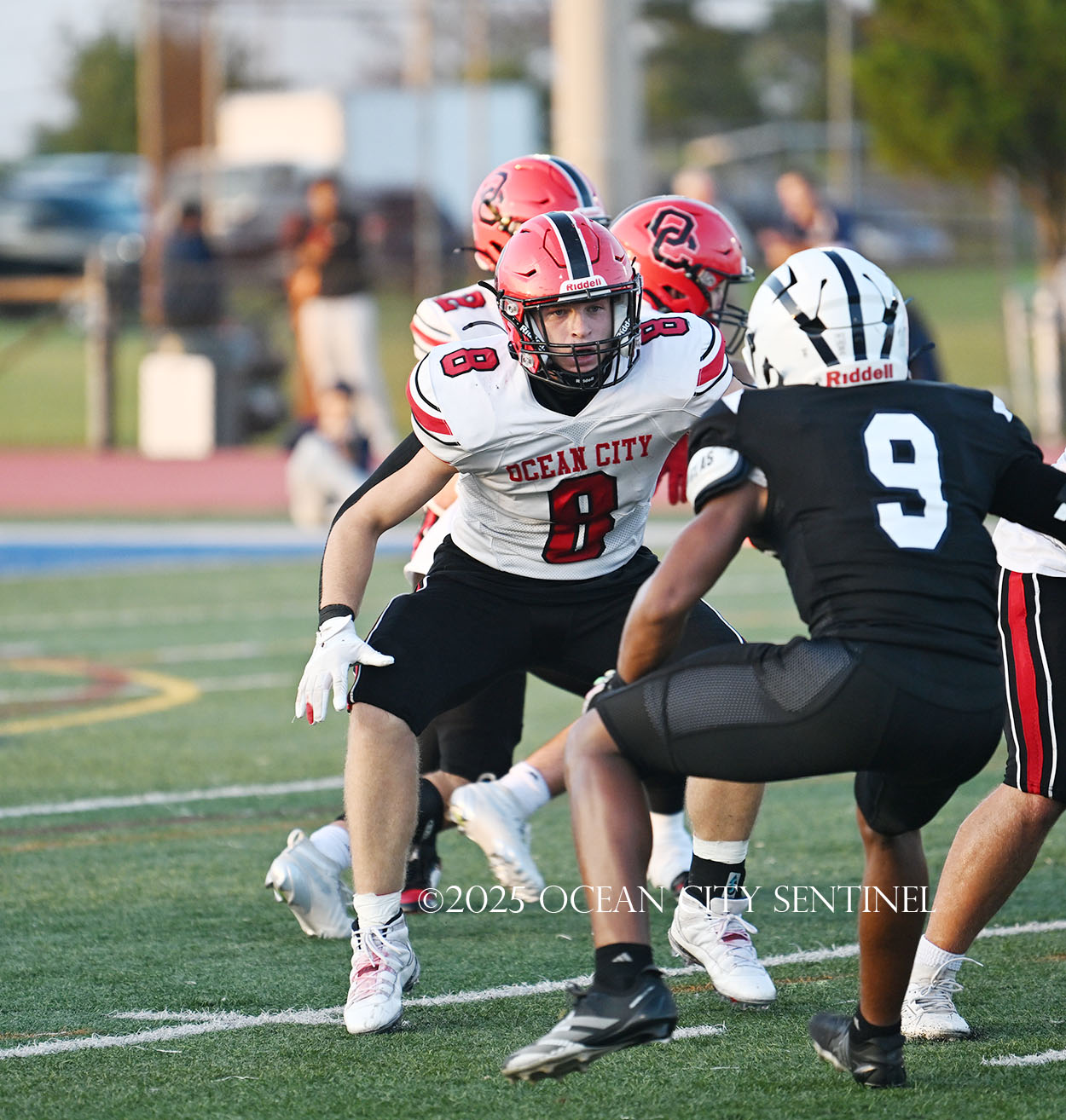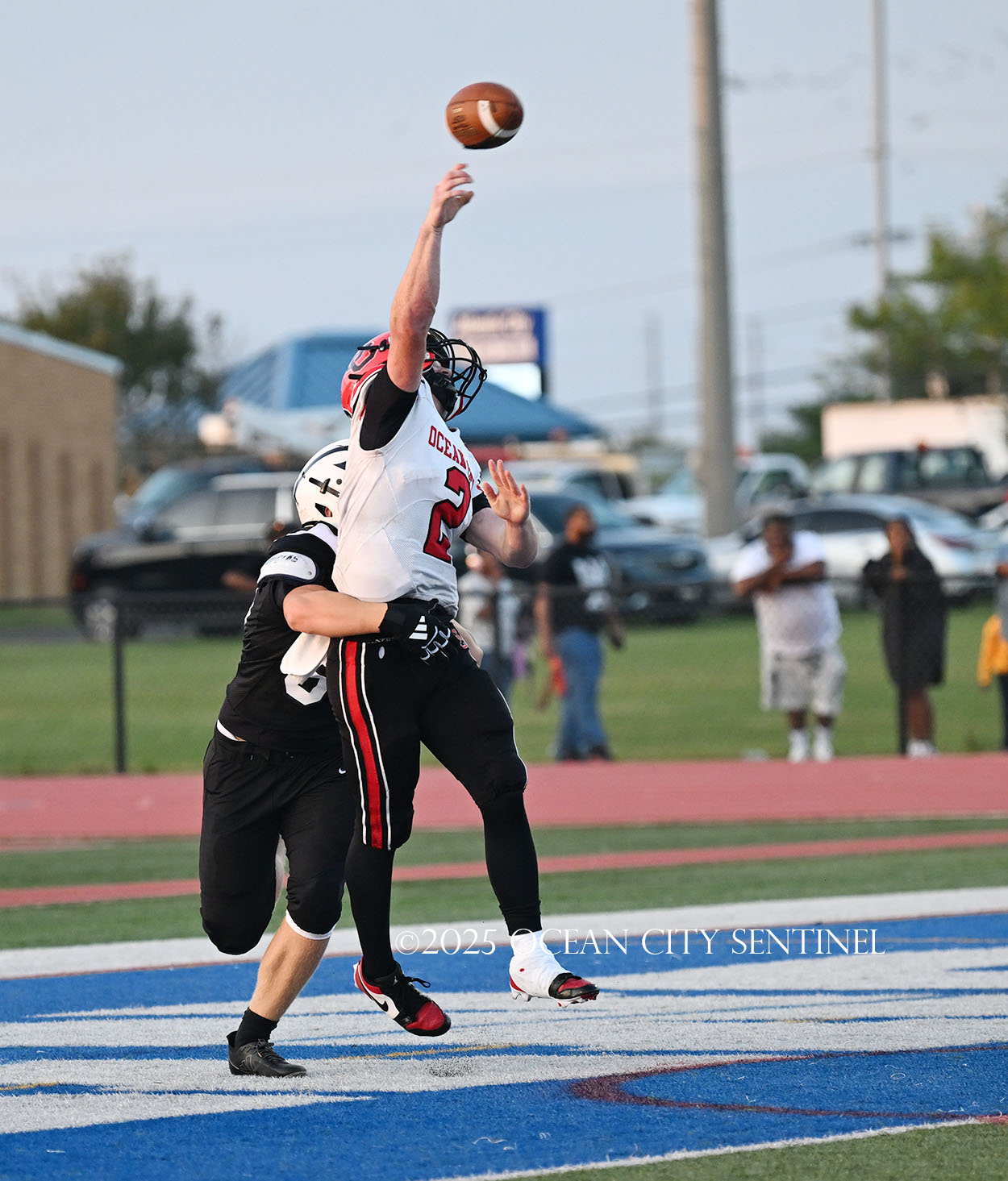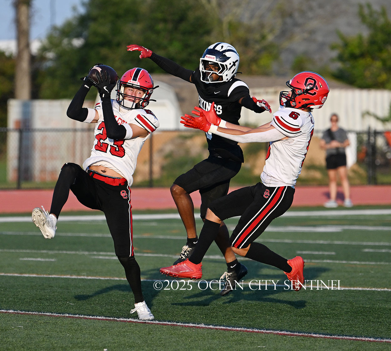 Ocean City’s Becker had 122 yards passing but tossed multiple interceptions, while running back Schmidt was limited to 34 yards on the ground and Compton led the Red Raiders with 55 yards receiving.