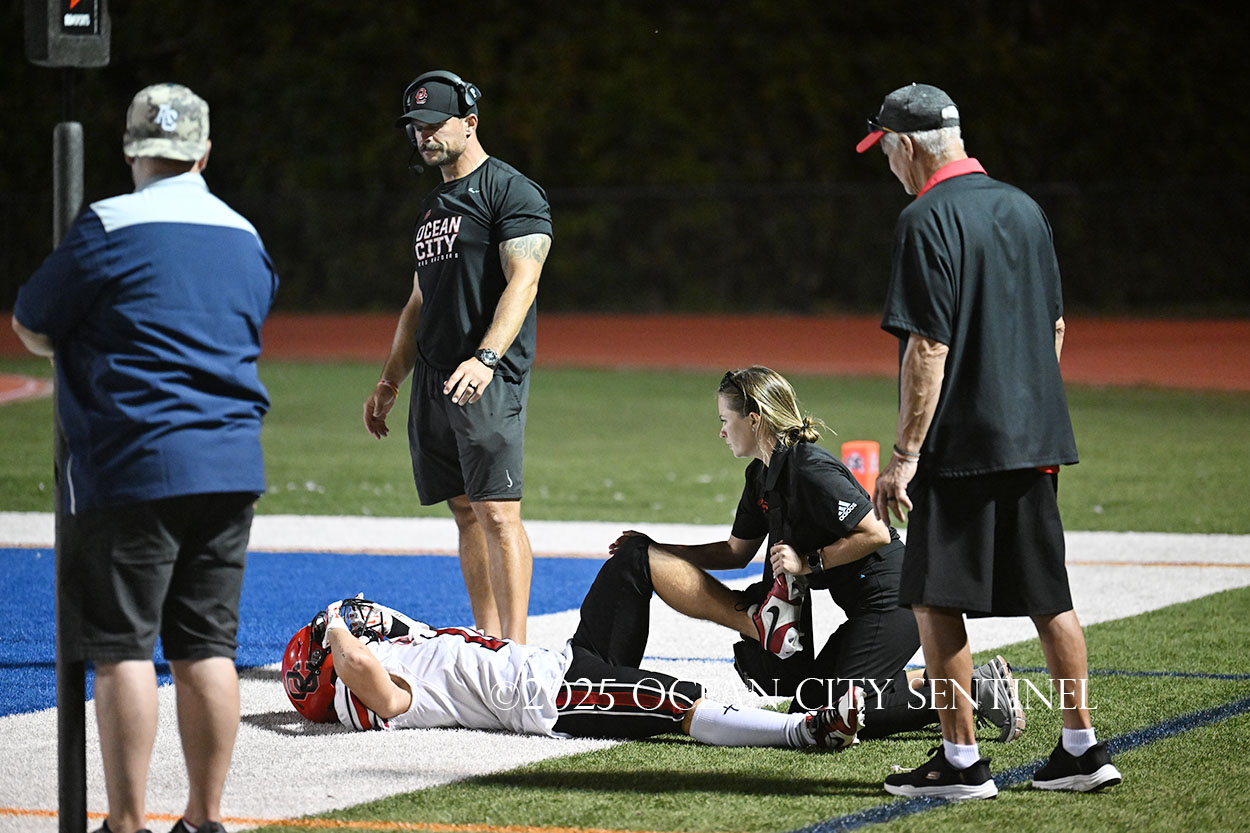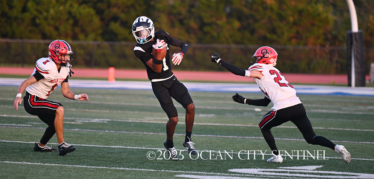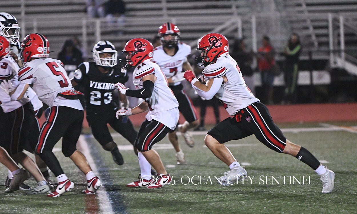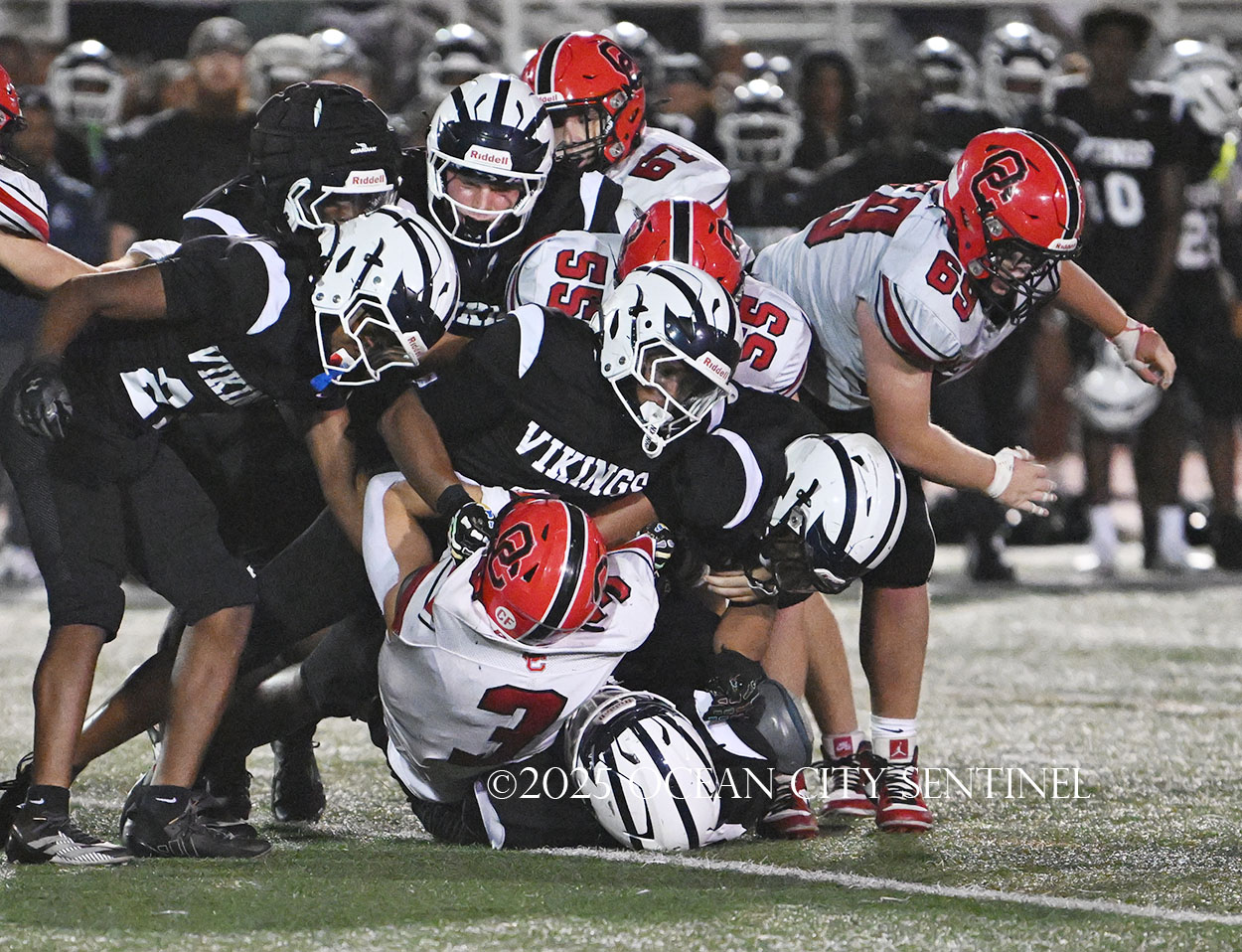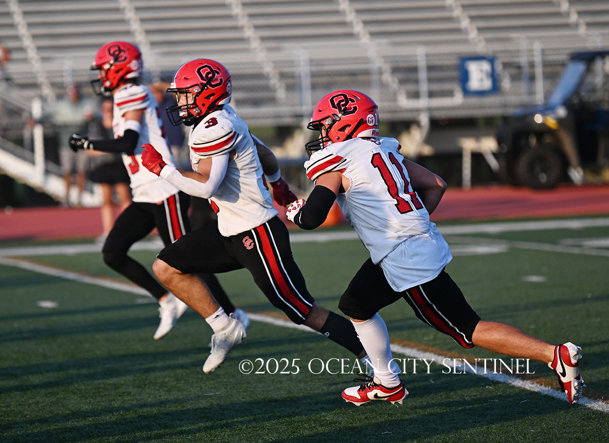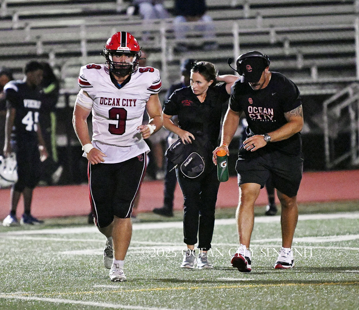 Ocean City’s Becker had 122 yards passing but tossed multiple interceptions, while running back Schmidt was limited to 34 yards on the ground and Compton led the Red Raiders with 55 yards receiving.