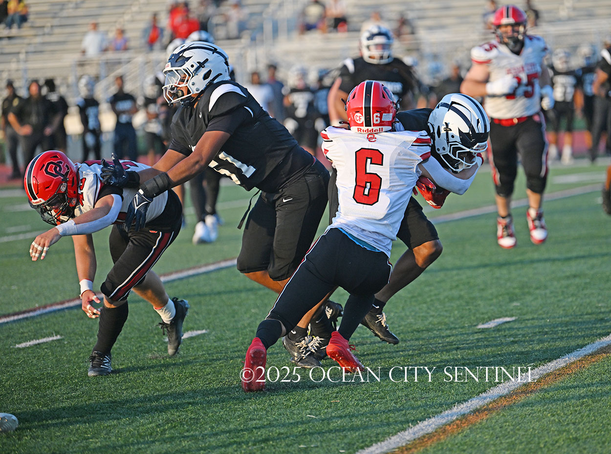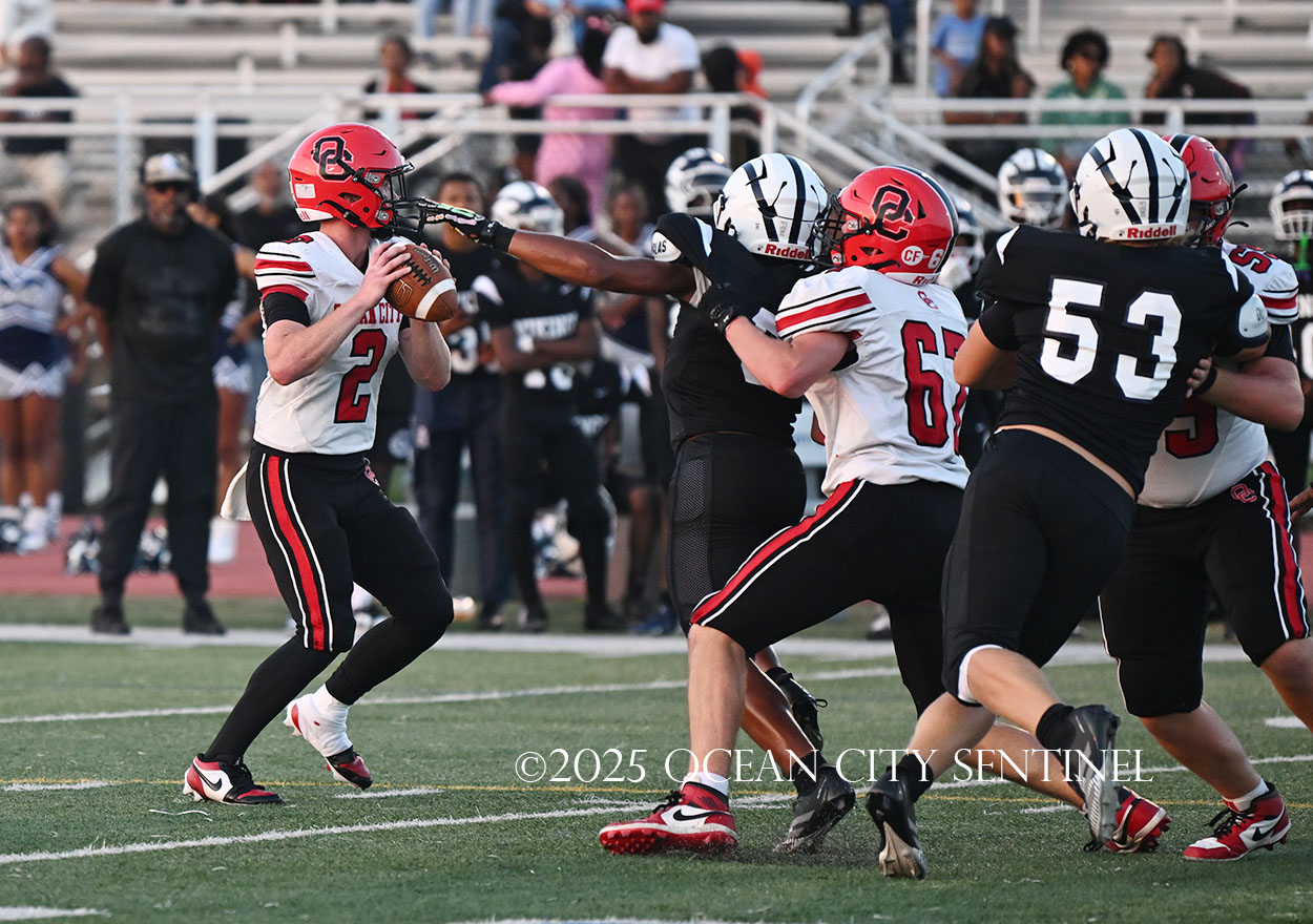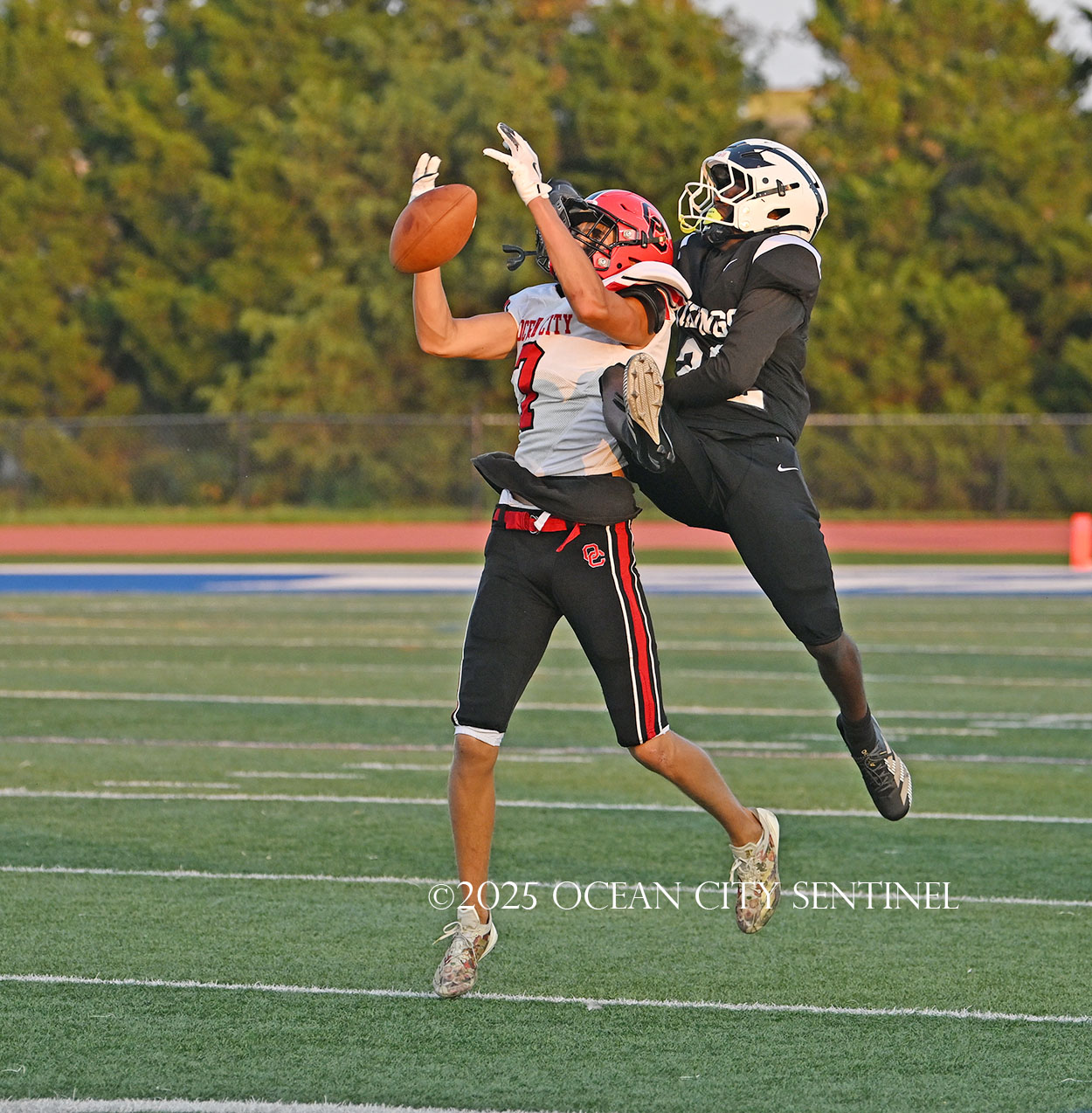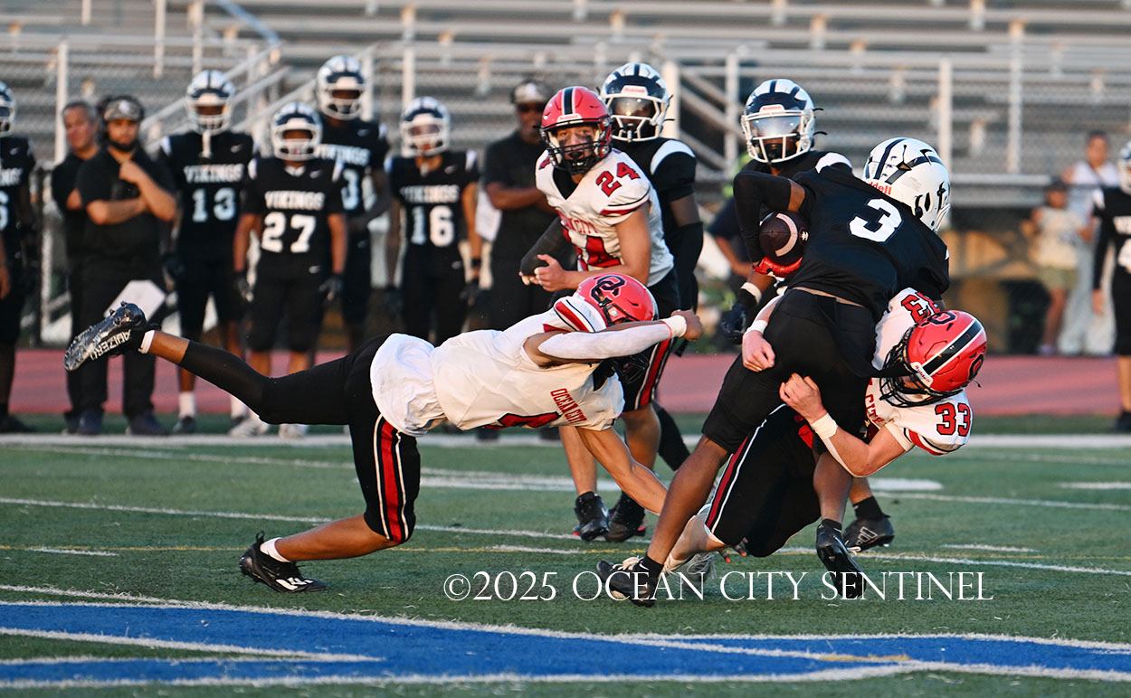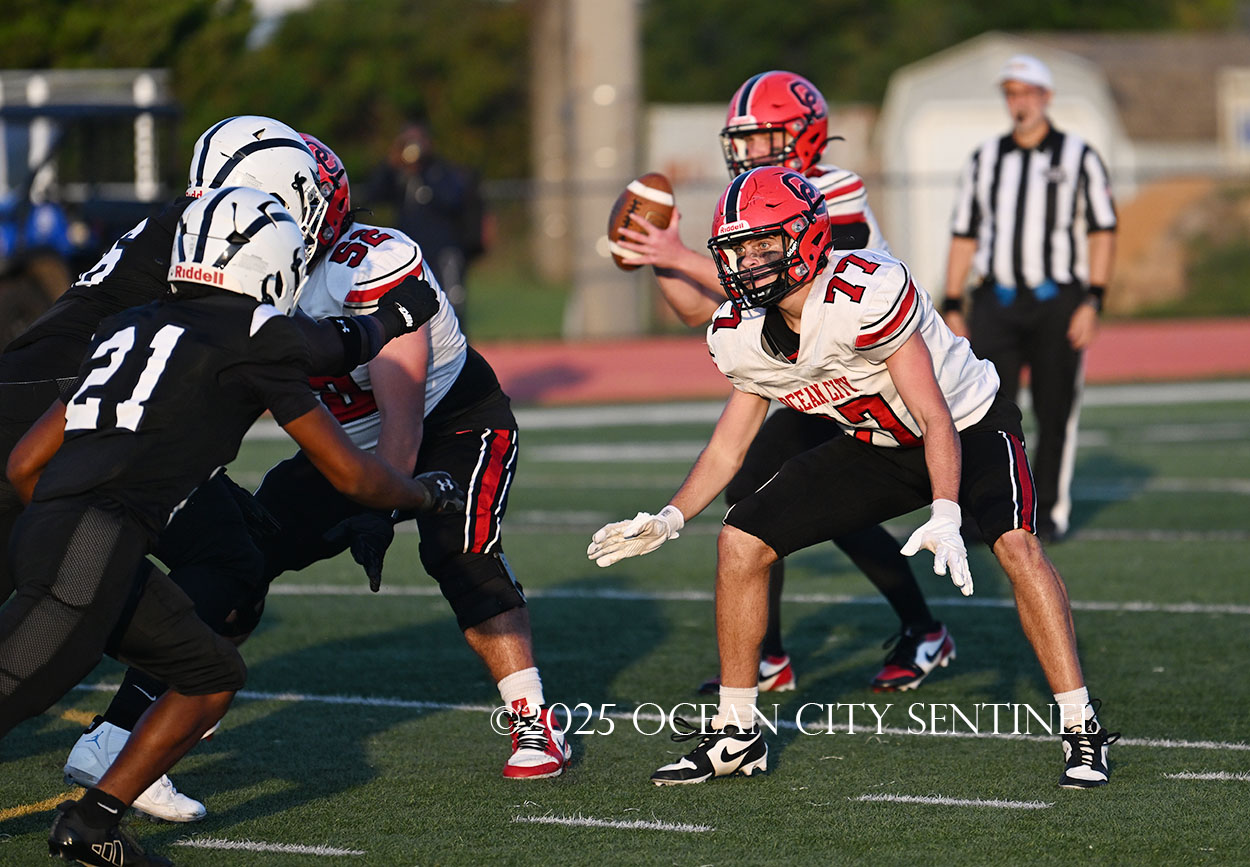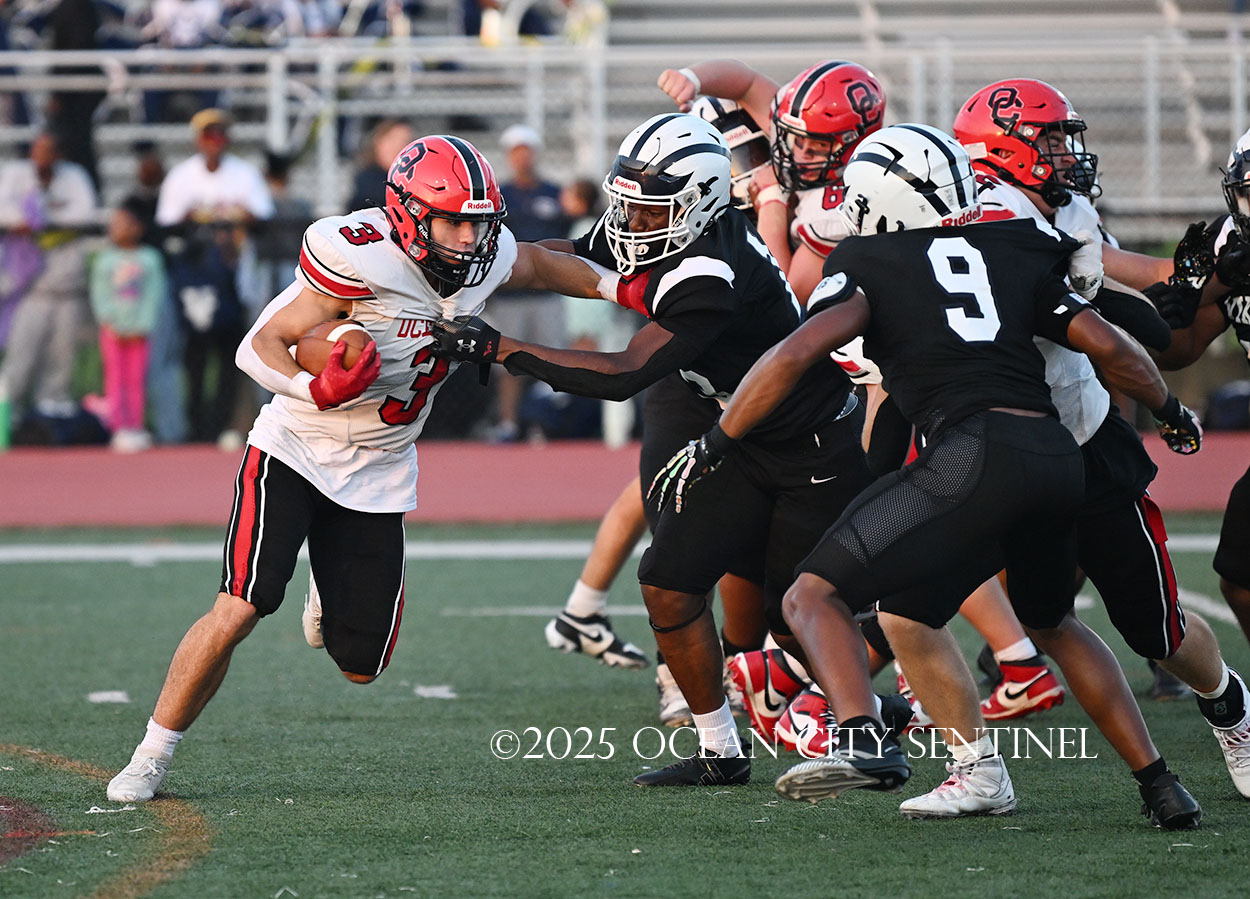 Ocean City’s Becker had 122 yards passing but tossed multiple interceptions, while running back Schmidt was limited to 34 yards on the ground and Compton led the Red Raiders with 55 yards receiving.