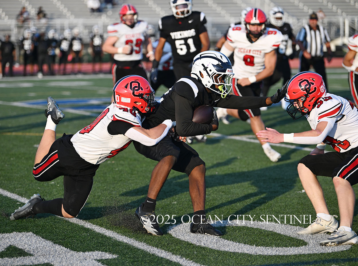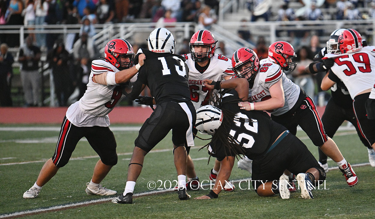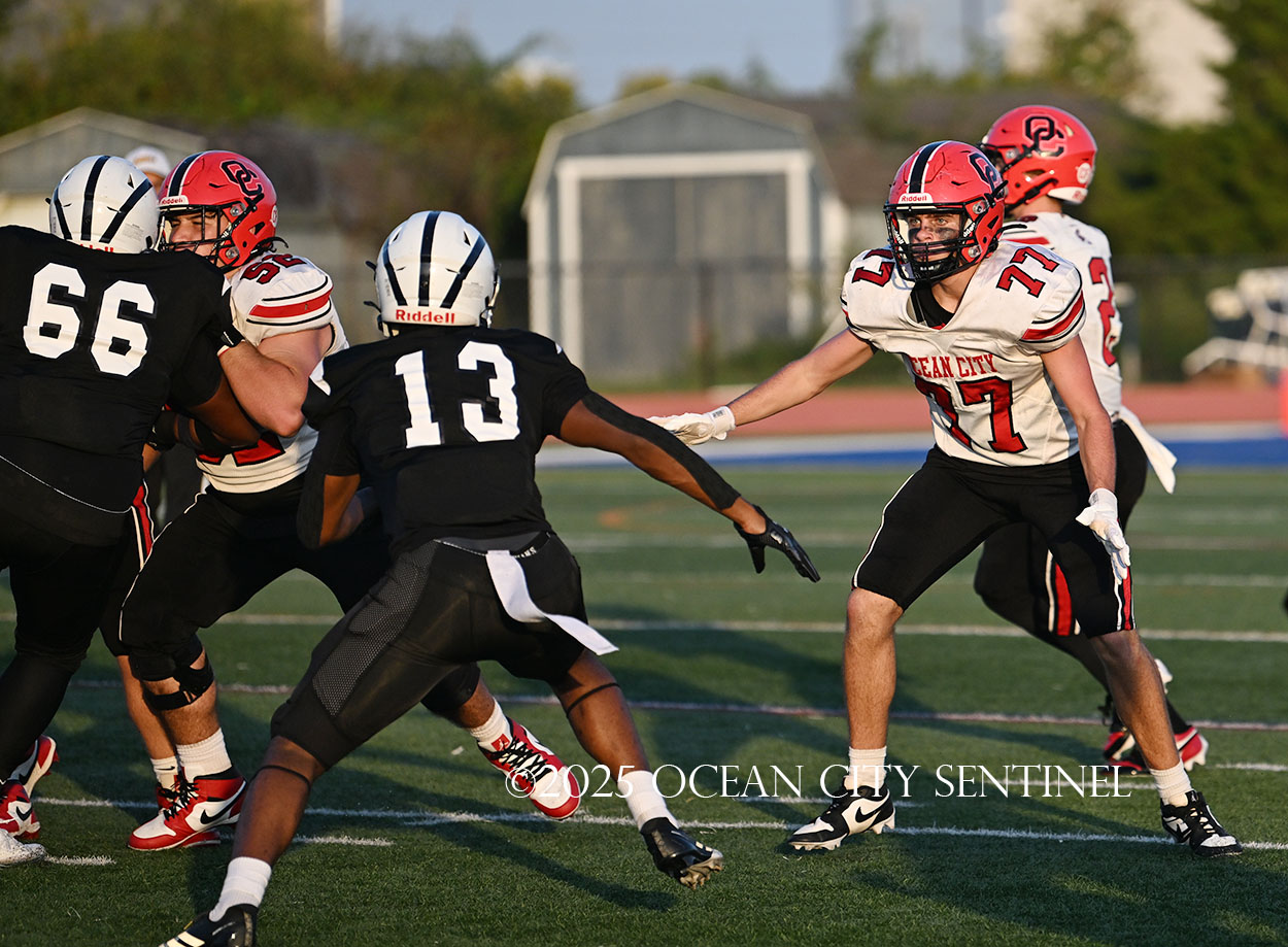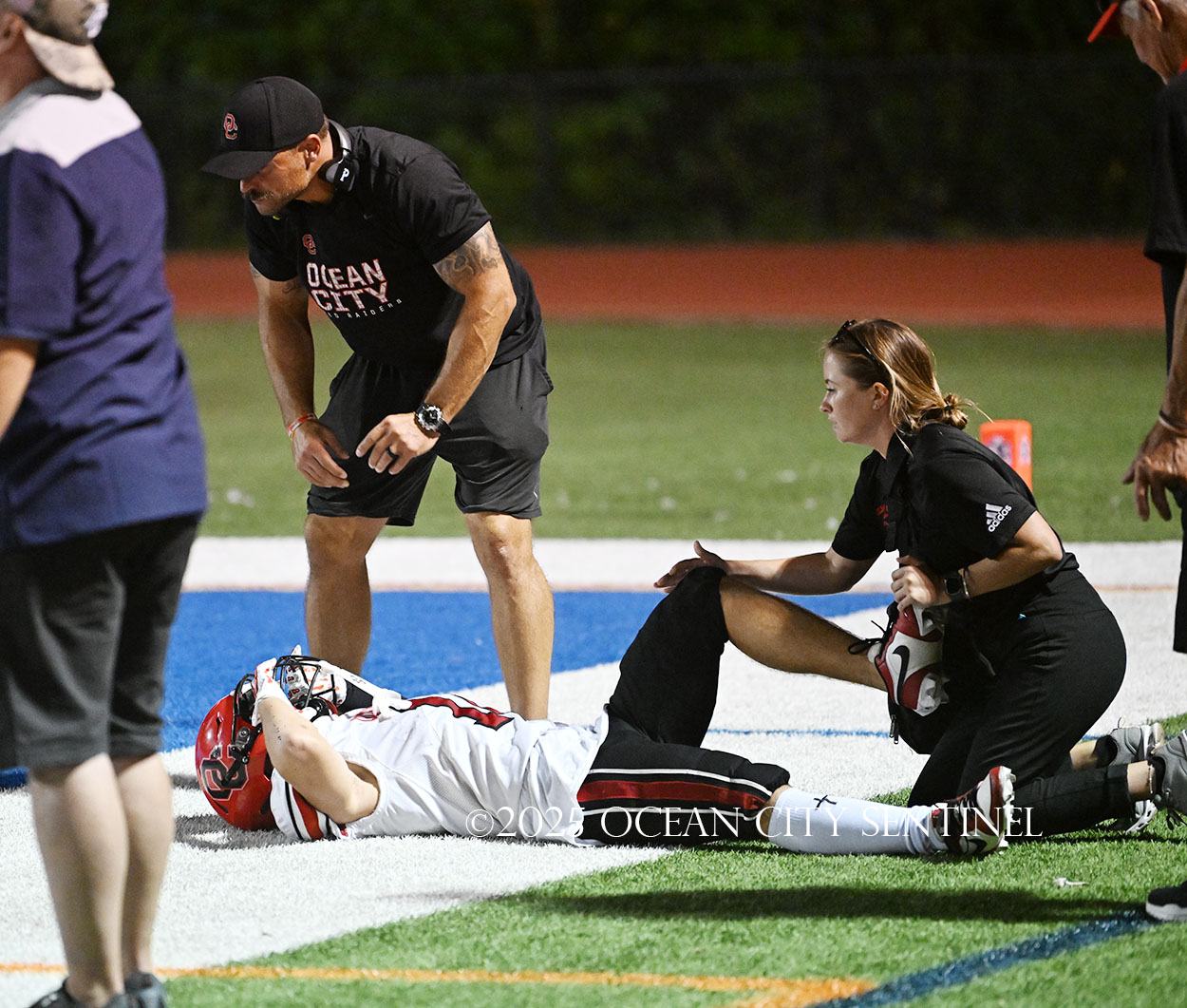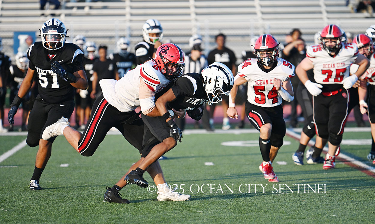 Ocean City’s Becker had 122 yards passing but tossed multiple interceptions, while running back Schmidt was limited to 34 yards on the ground and Compton led the Red Raiders with 55 yards receiving.
