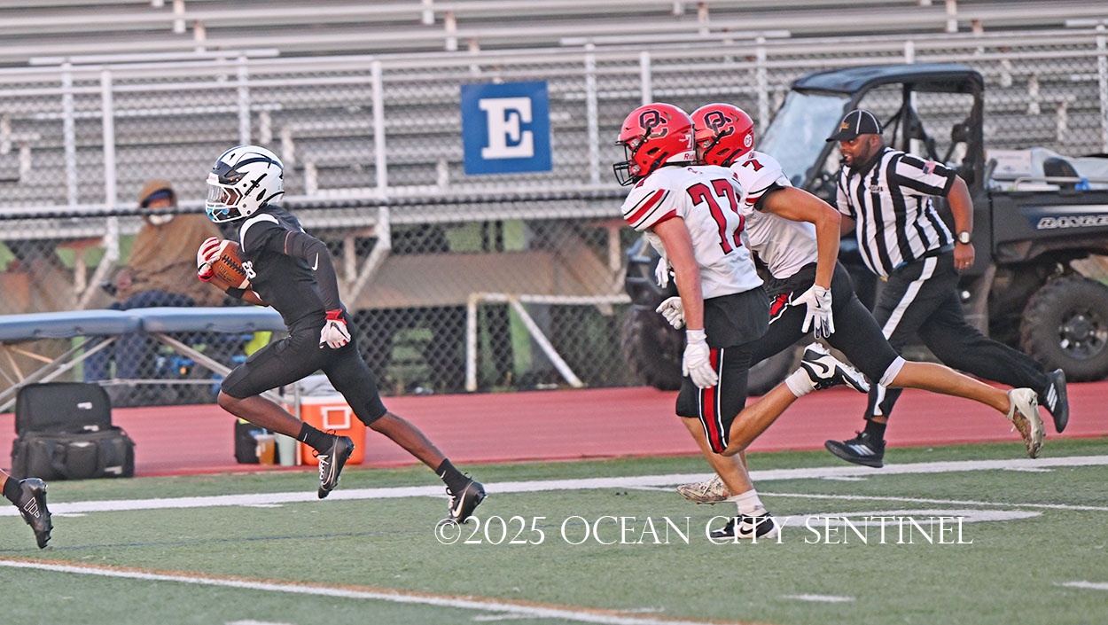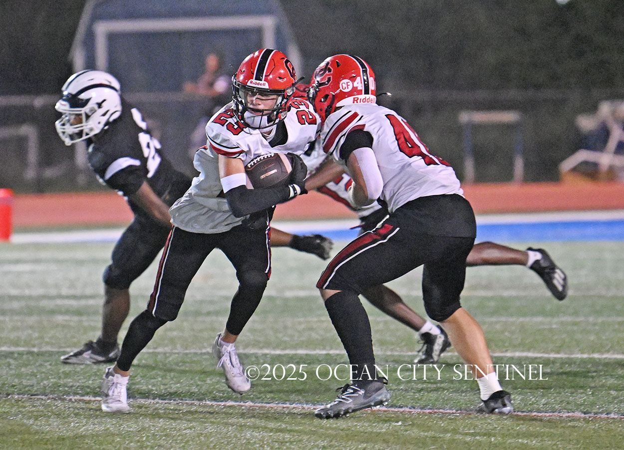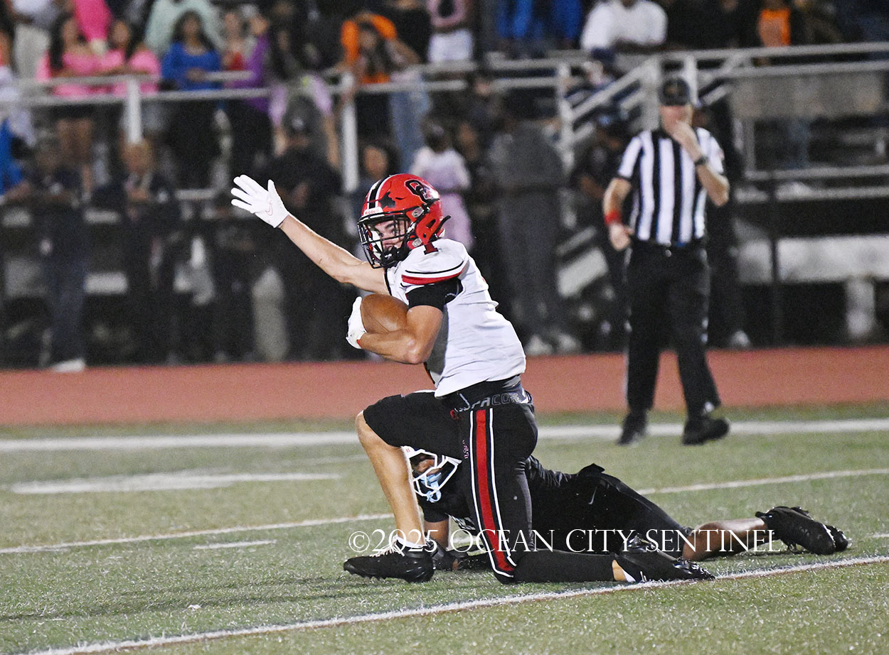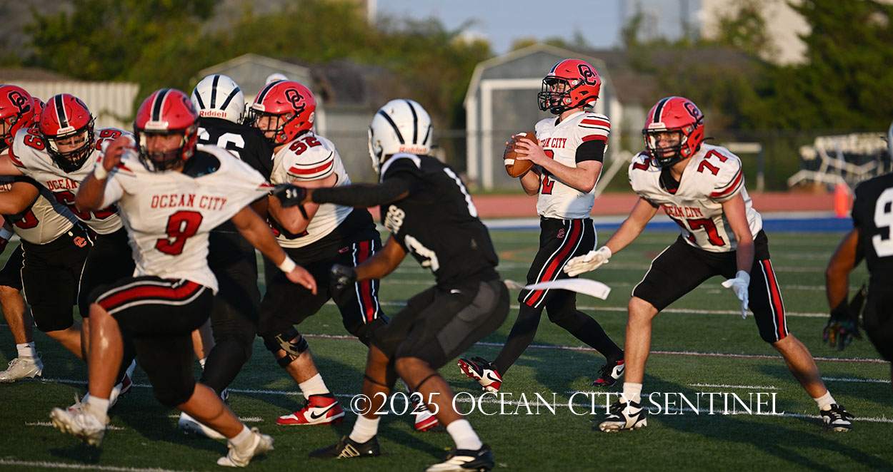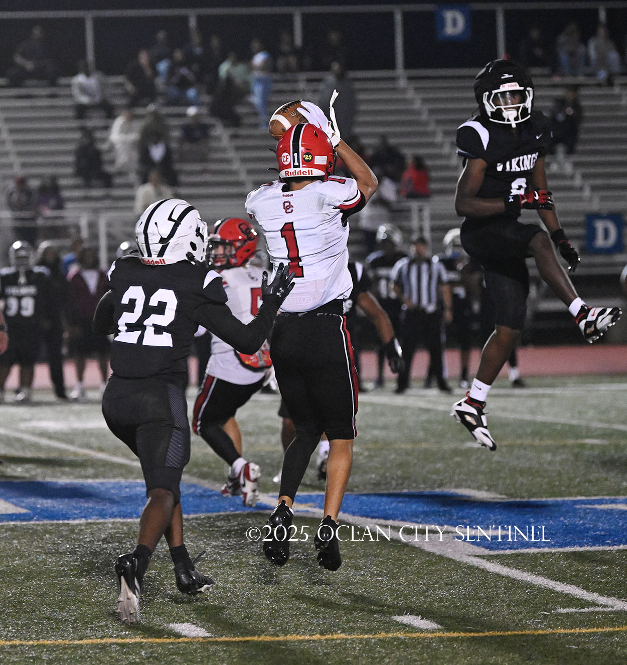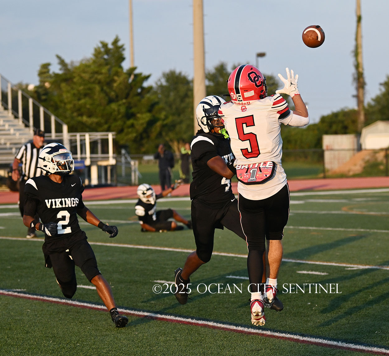 Ocean City’s Becker had 122 yards passing but tossed multiple interceptions, while running back Schmidt was limited to 34 yards on the ground and Compton led the Red Raiders with 55 yards receiving.