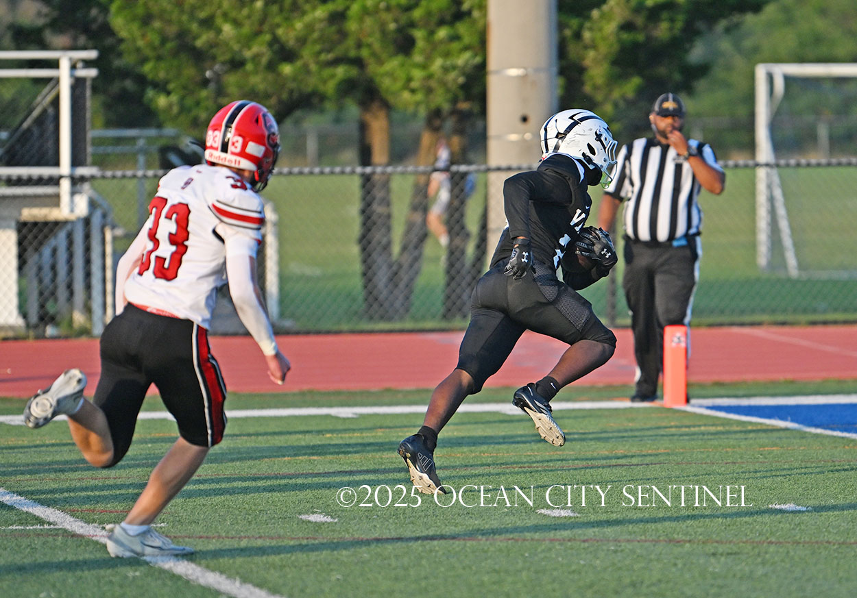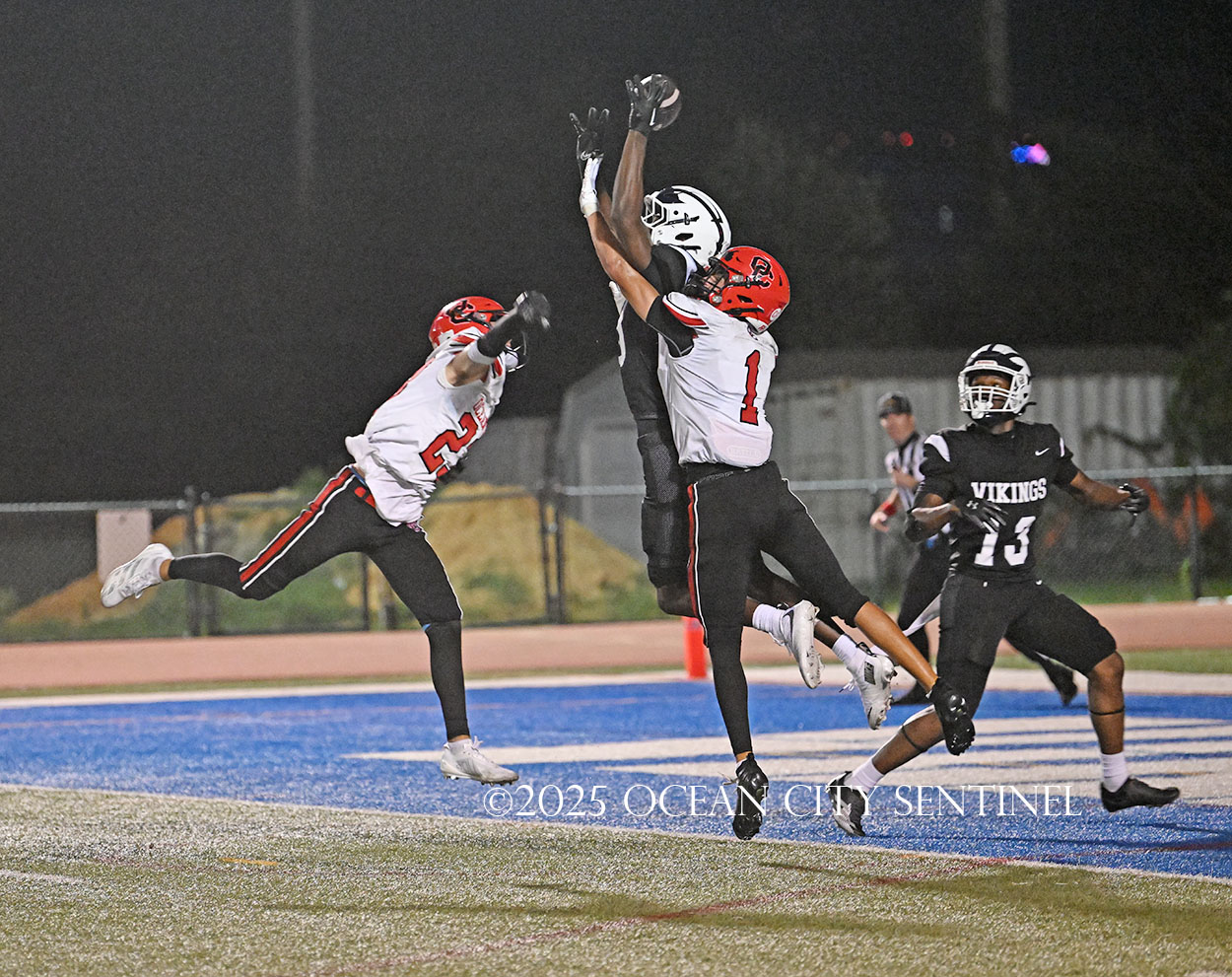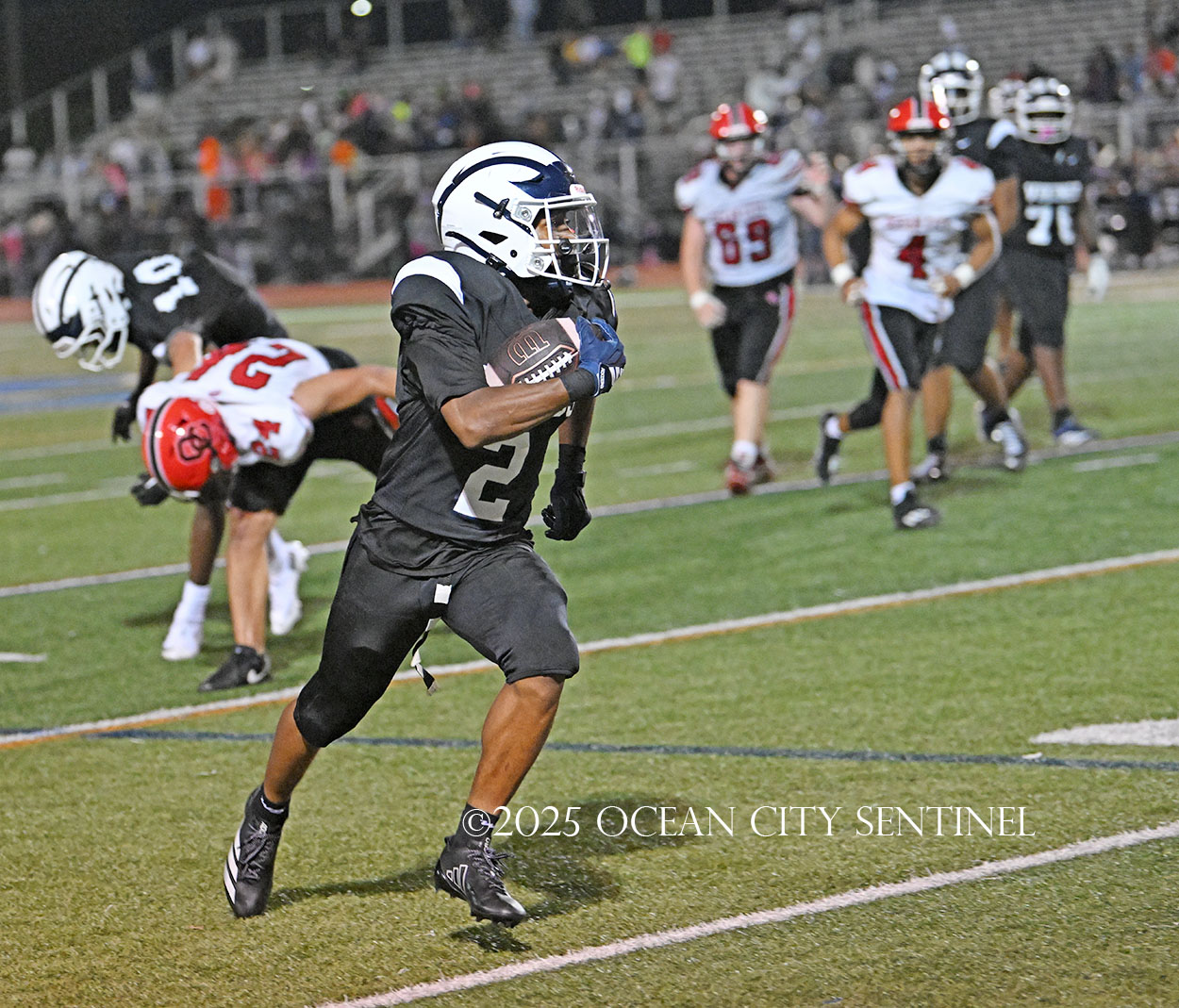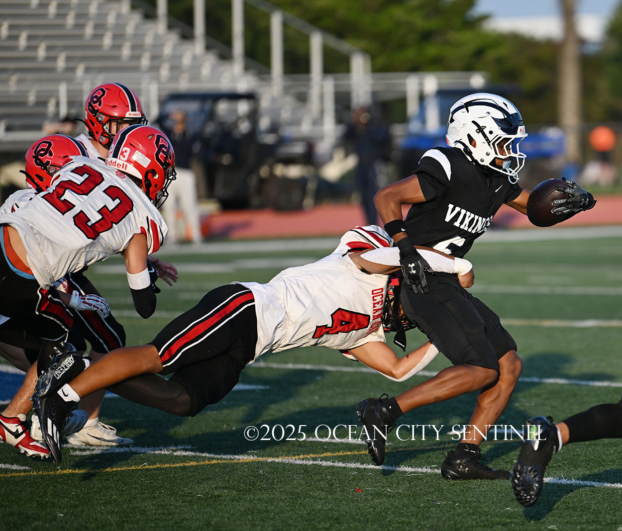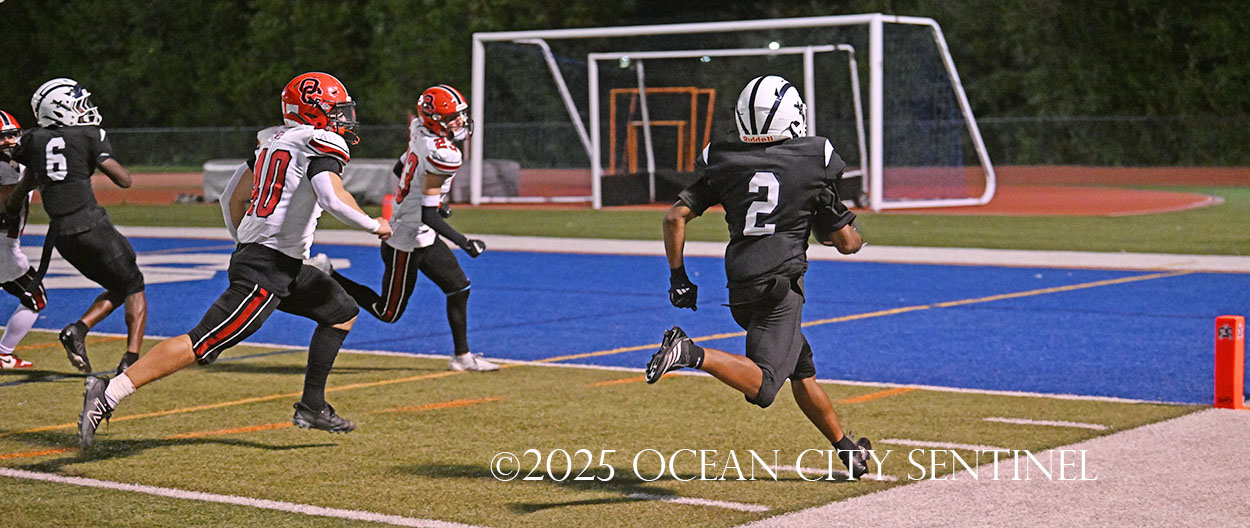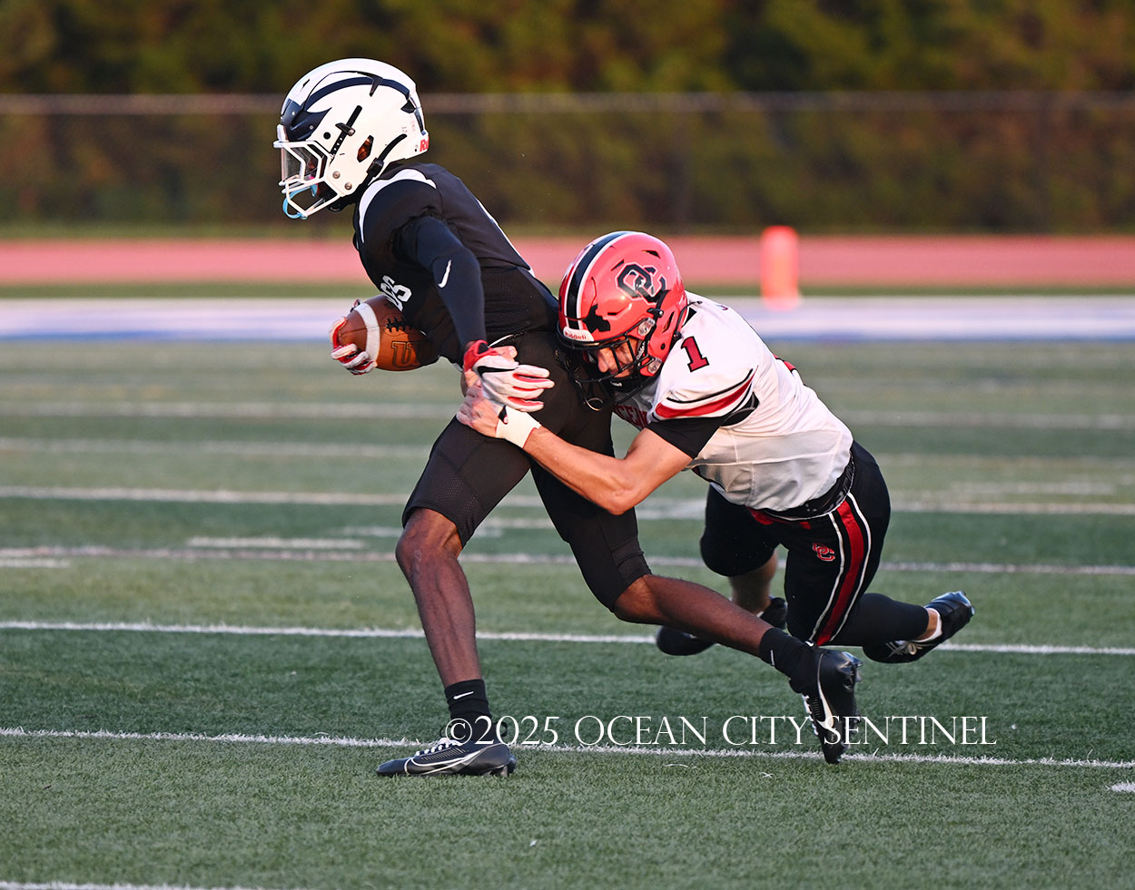 Ocean City’s Becker had 122 yards passing but tossed multiple interceptions, while running back Schmidt was limited to 34 yards on the ground and Compton led the Red Raiders with 55 yards receiving.