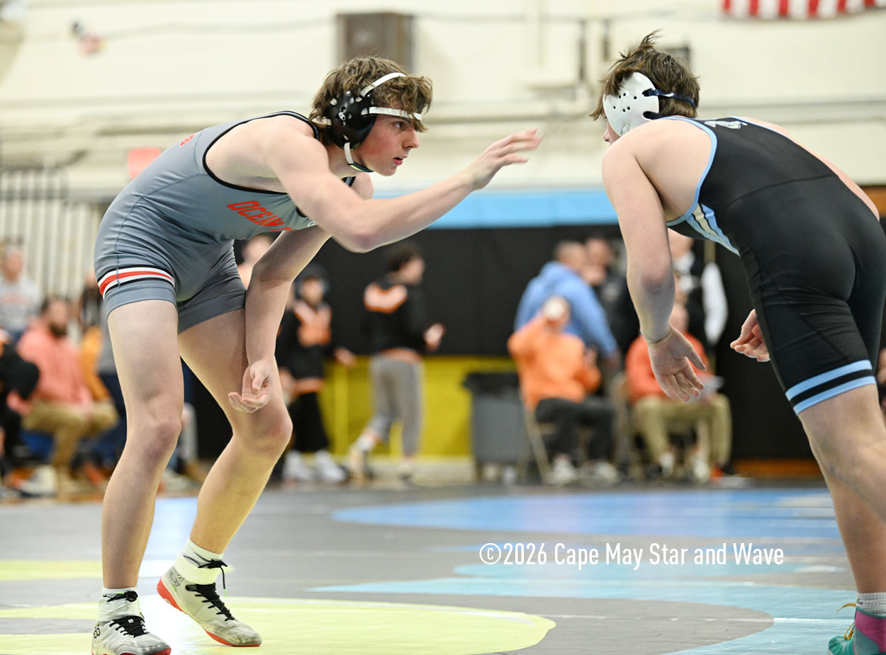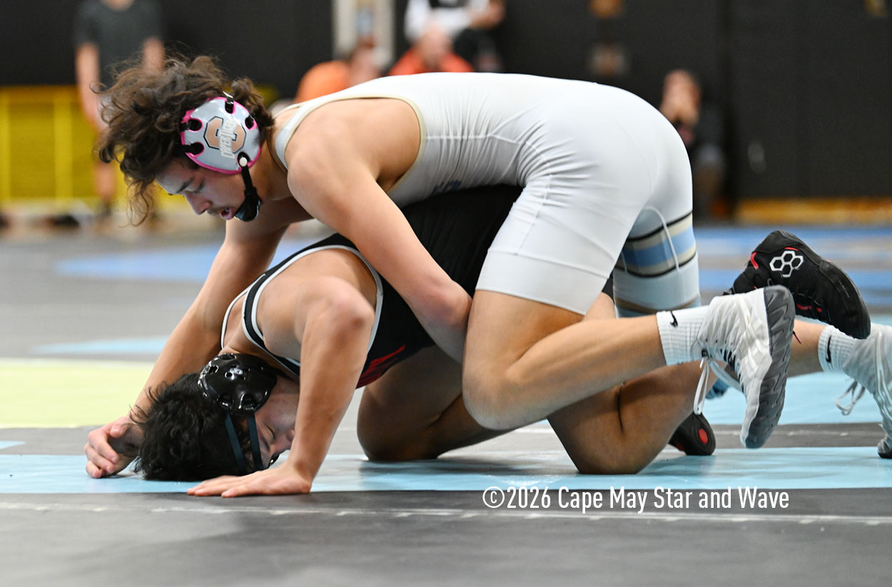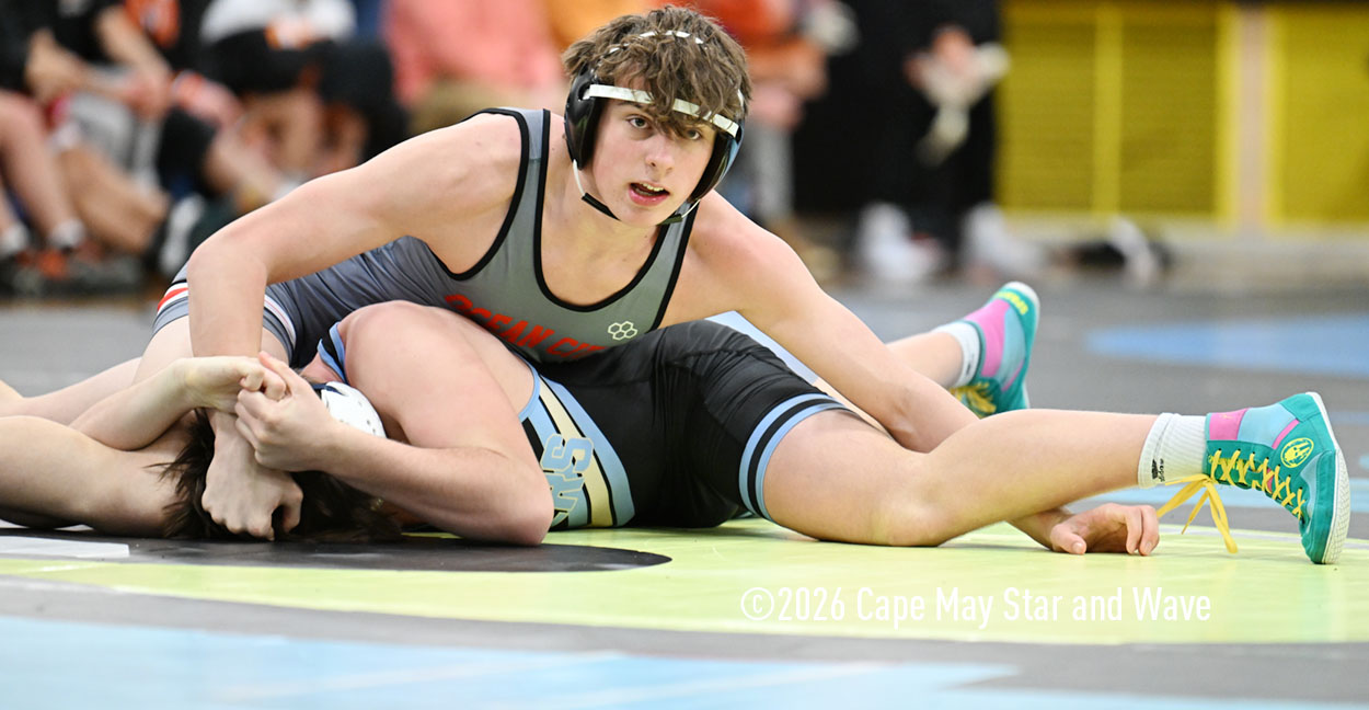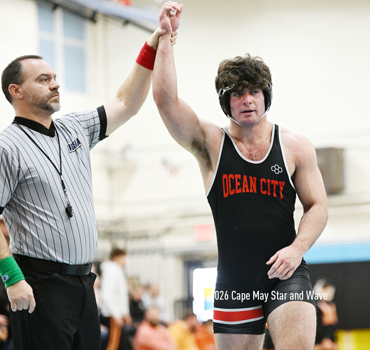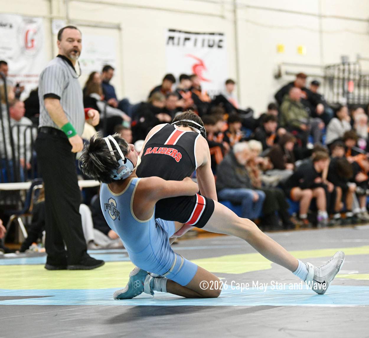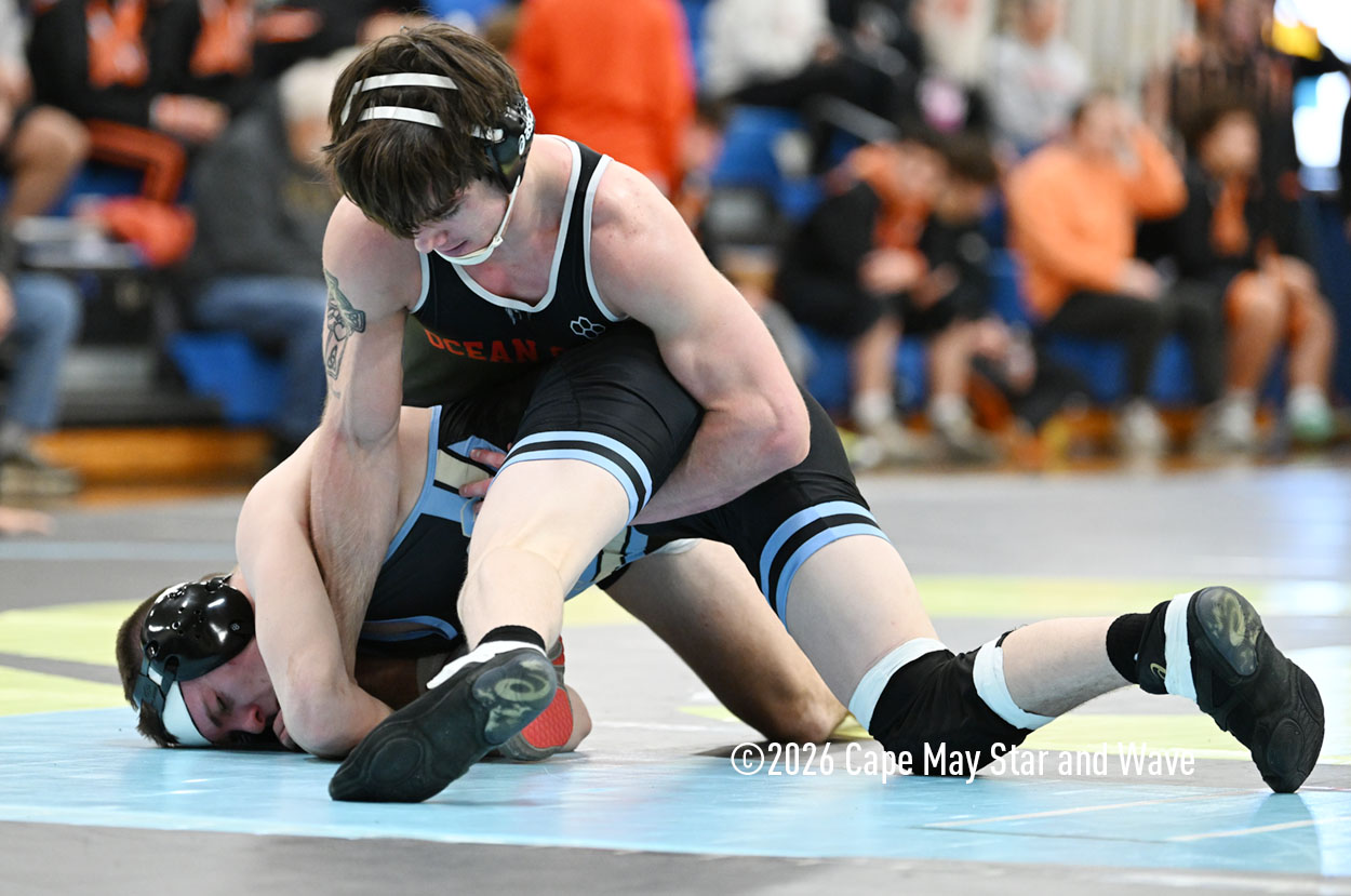 Ocean City’s Zarian Cabalo won a 6-0 decision over Ashton Ray at 165 pounds, but LCMR’s Shane Morrell (175) put 6 more points on the board with a pin of Ethan Miura at the 2:13 mark, pushing the Caper Tiger lead to 30-6.
