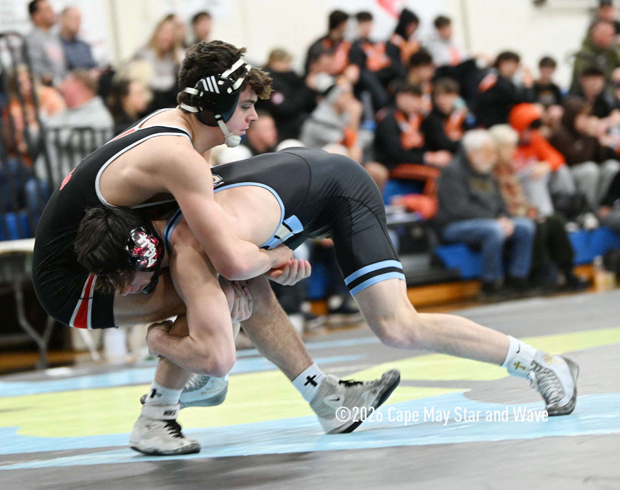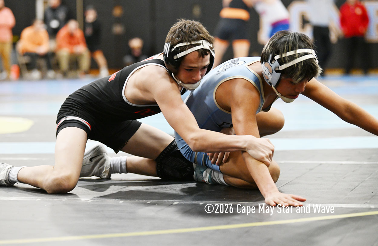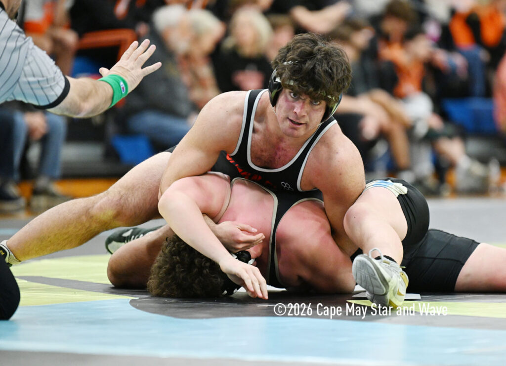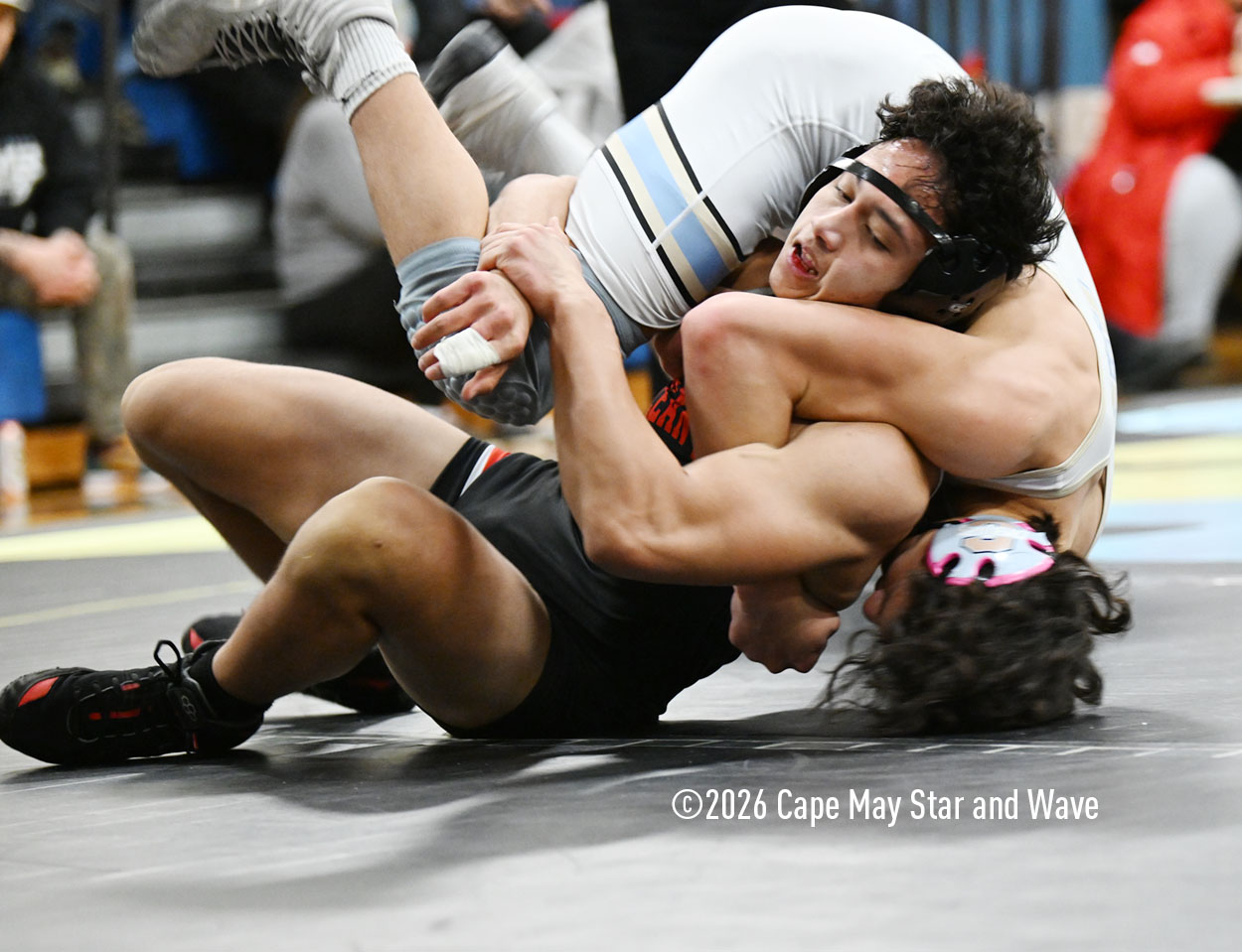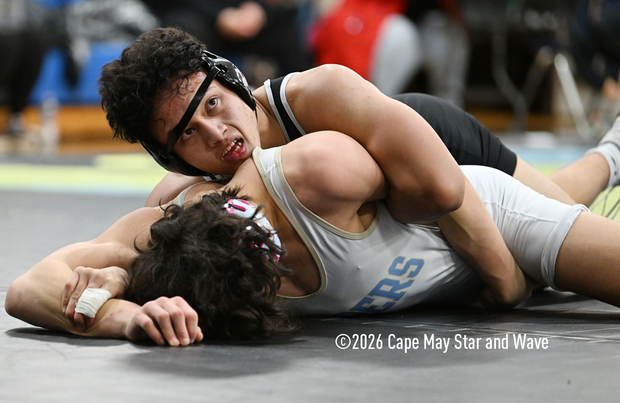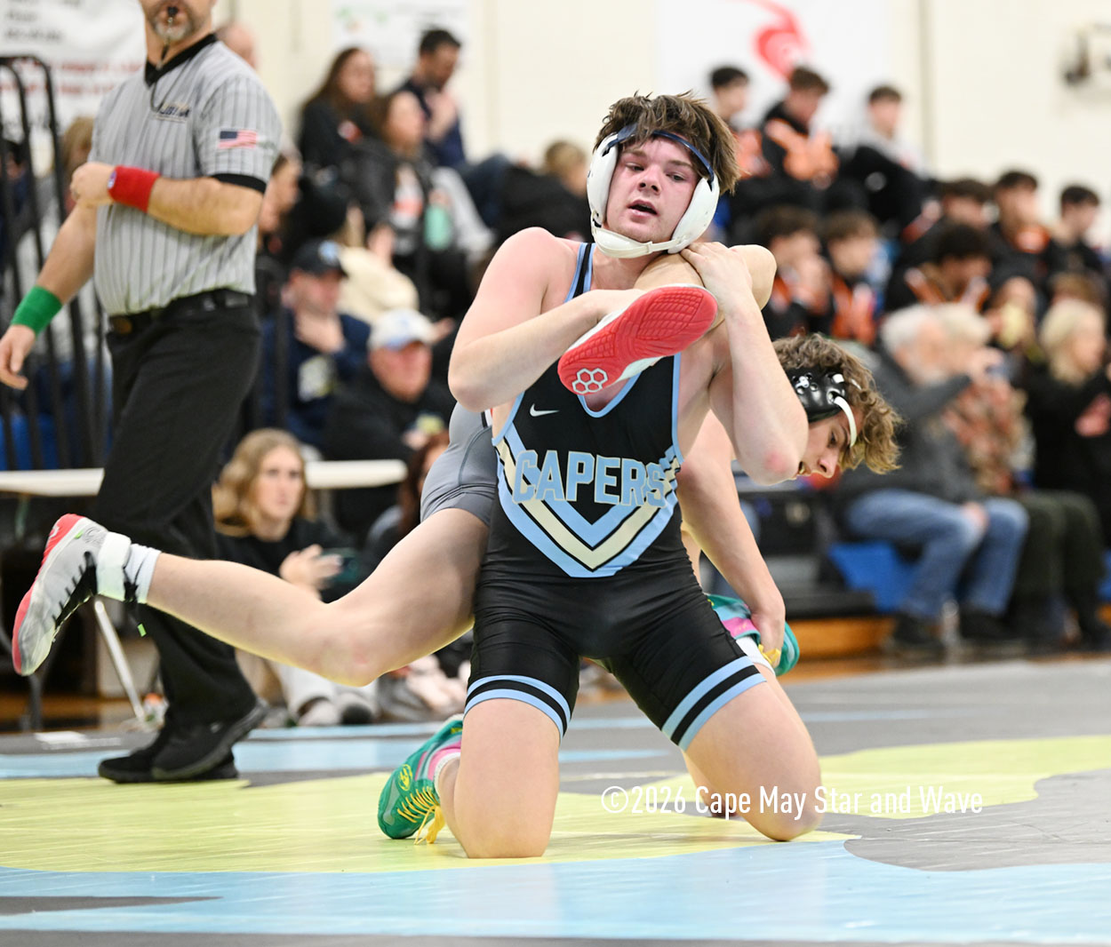 Ocean City’s Zarian Cabalo won a 6-0 decision over Ashton Ray at 165 pounds, but LCMR’s Shane Morrell (175) put 6 more points on the board with a pin of Ethan Miura at the 2:13 mark, pushing the Caper Tiger lead to 30-6.