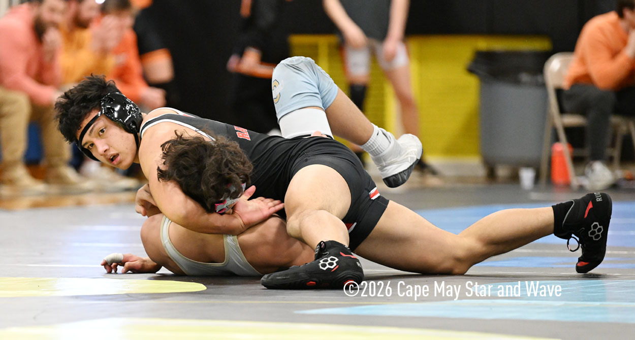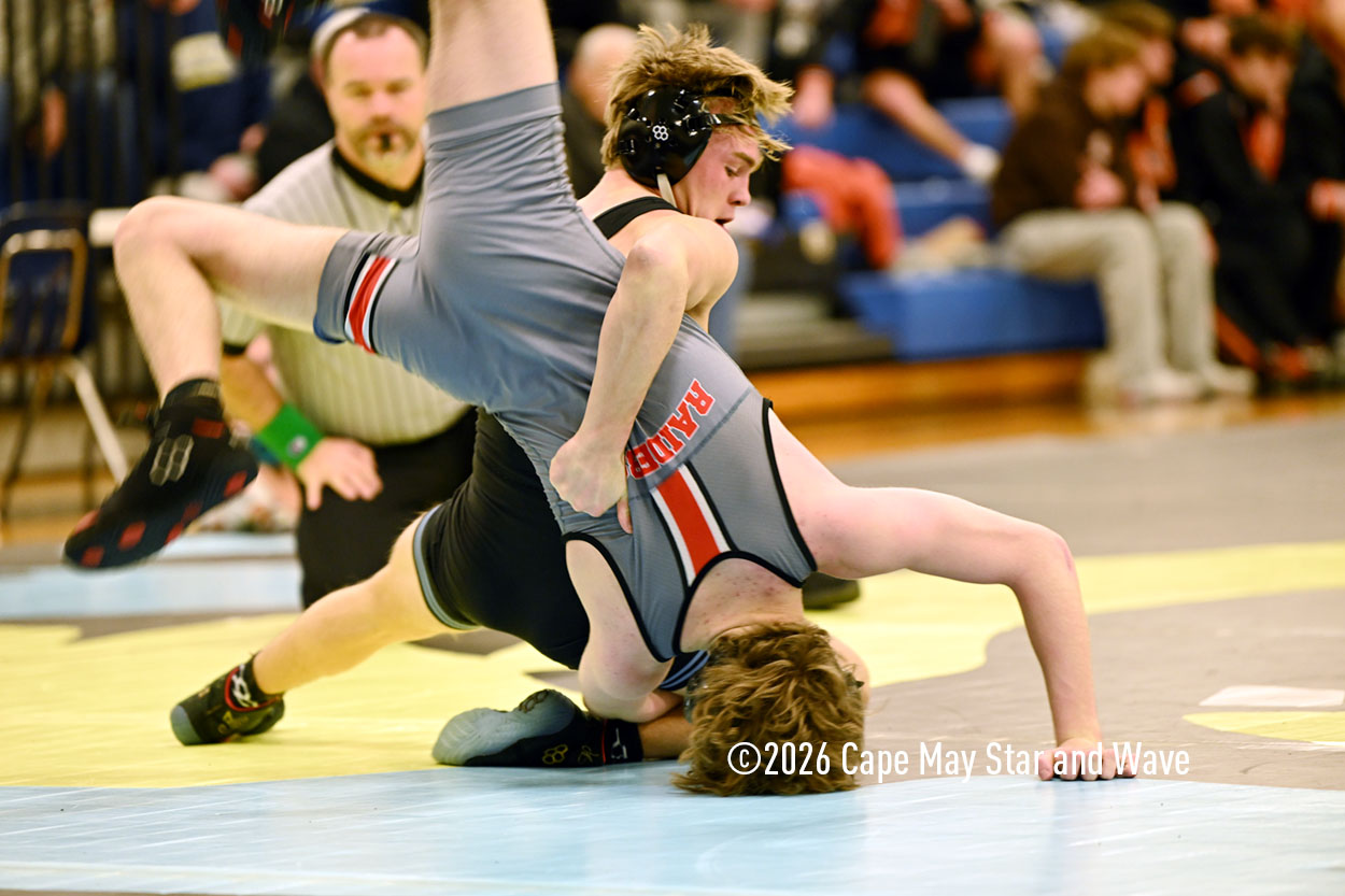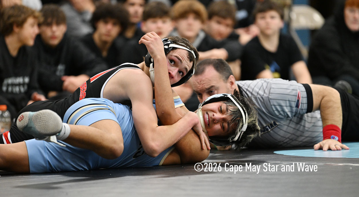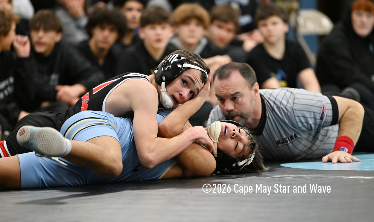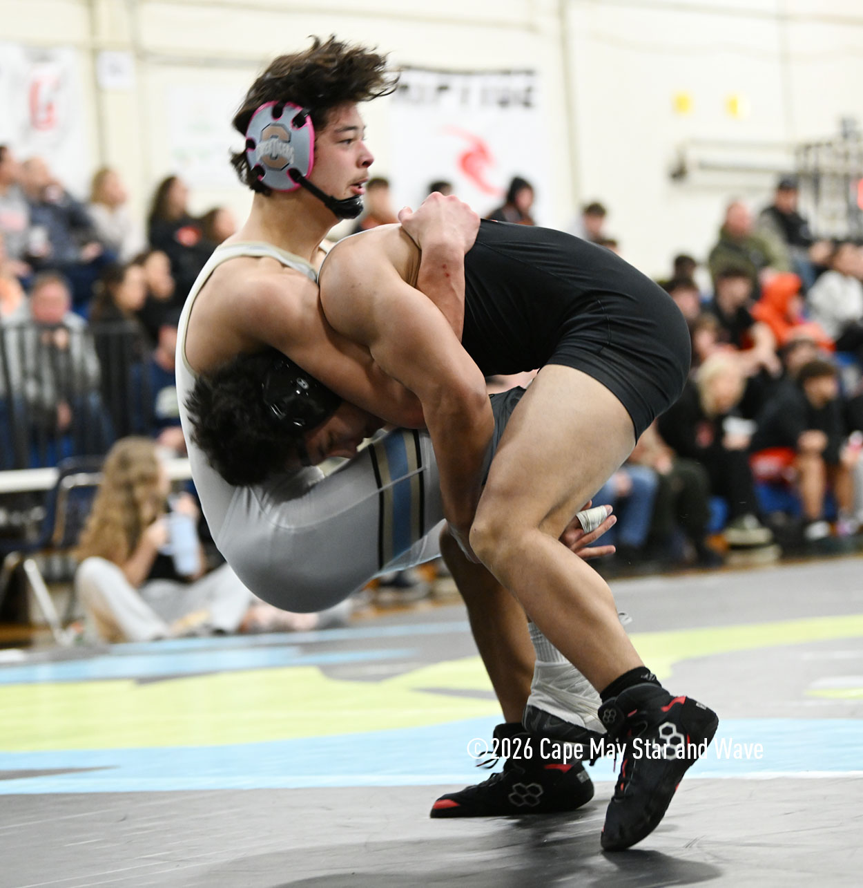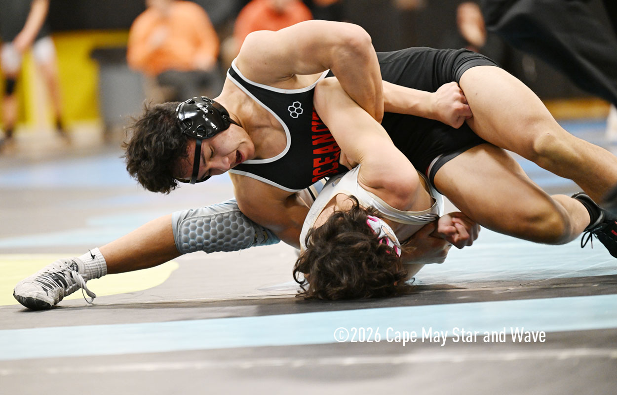 Ocean City’s Zarian Cabalo won a 6-0 decision over Ashton Ray at 165 pounds, but LCMR’s Shane Morrell (175) put 6 more points on the board with a pin of Ethan Miura at the 2:13 mark, pushing the Caper Tiger lead to 30-6.