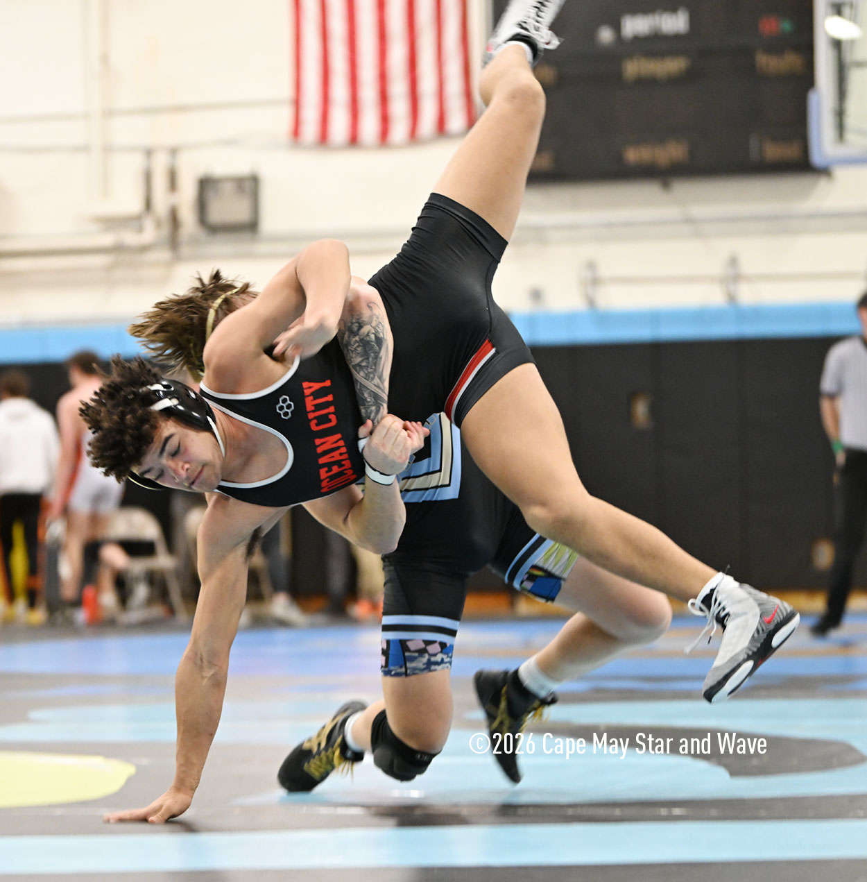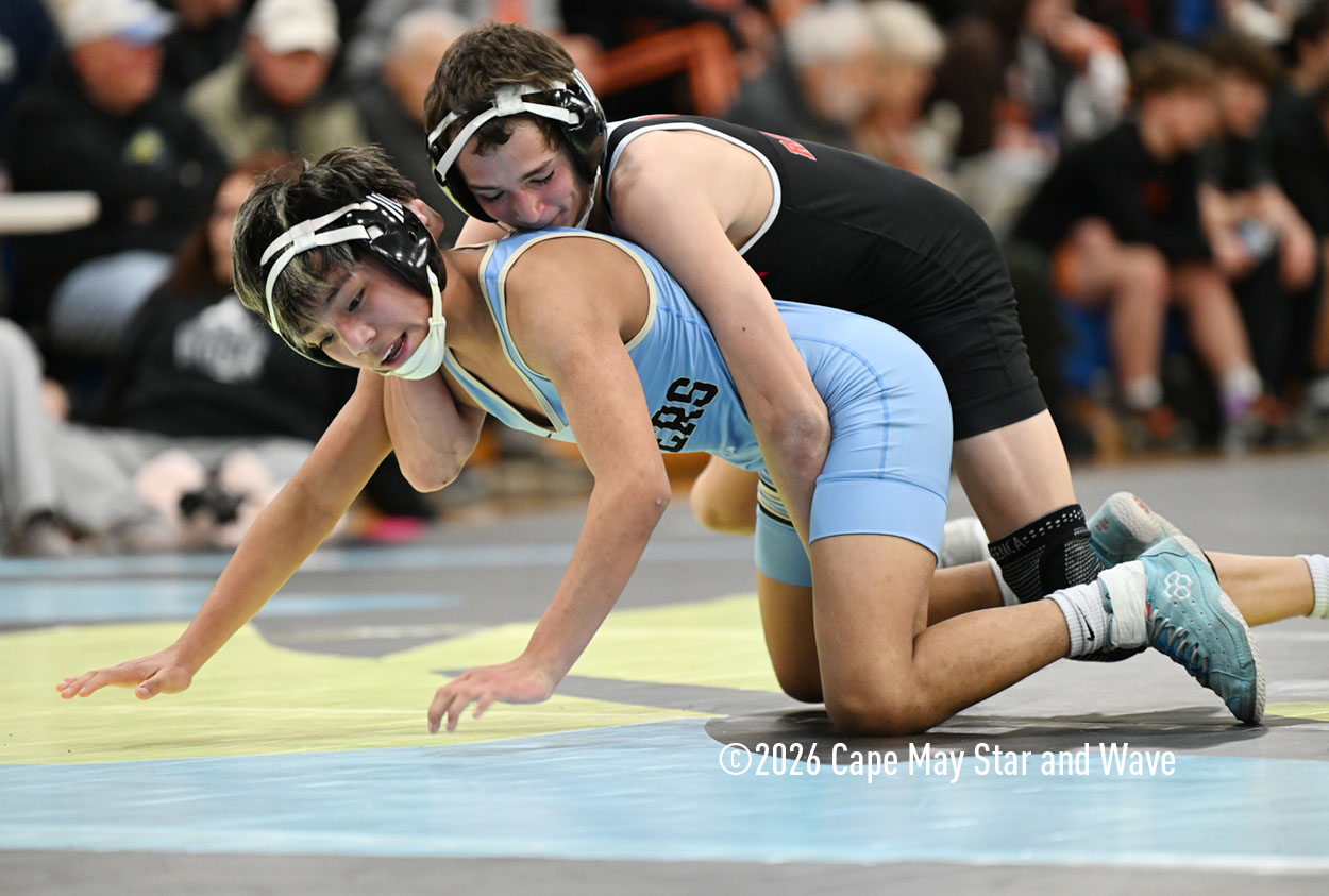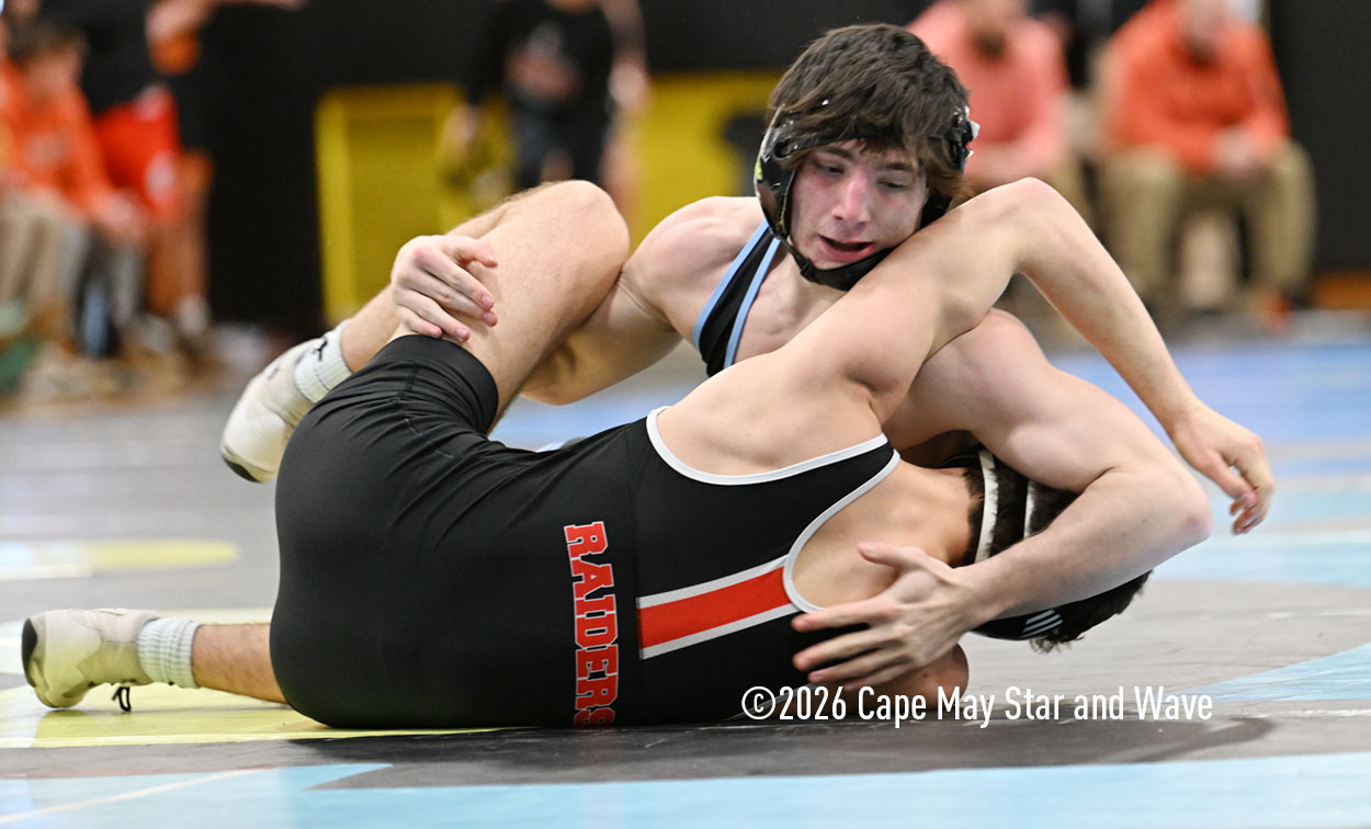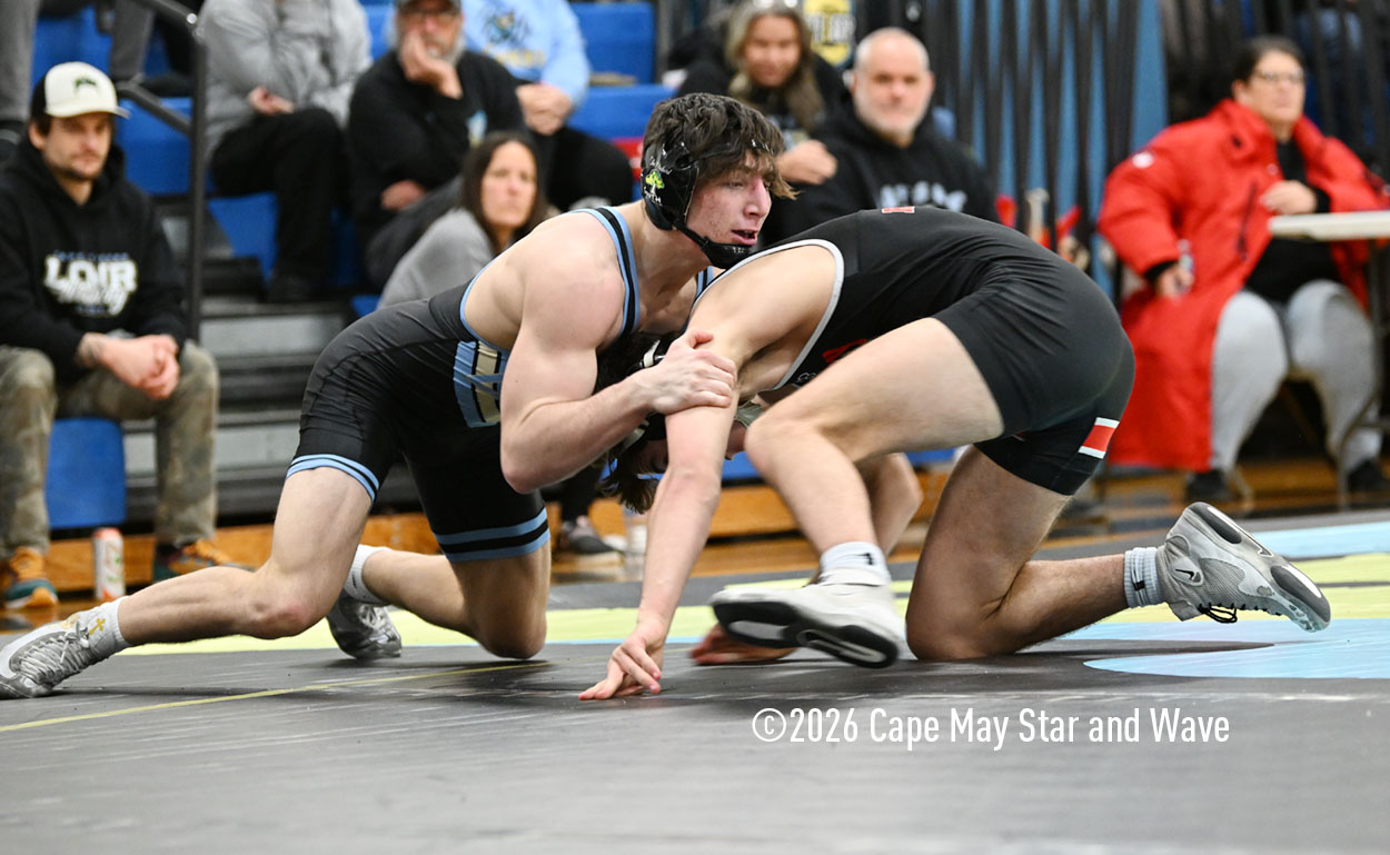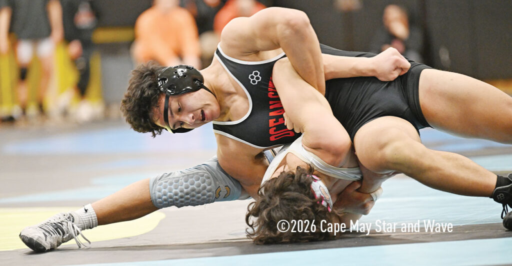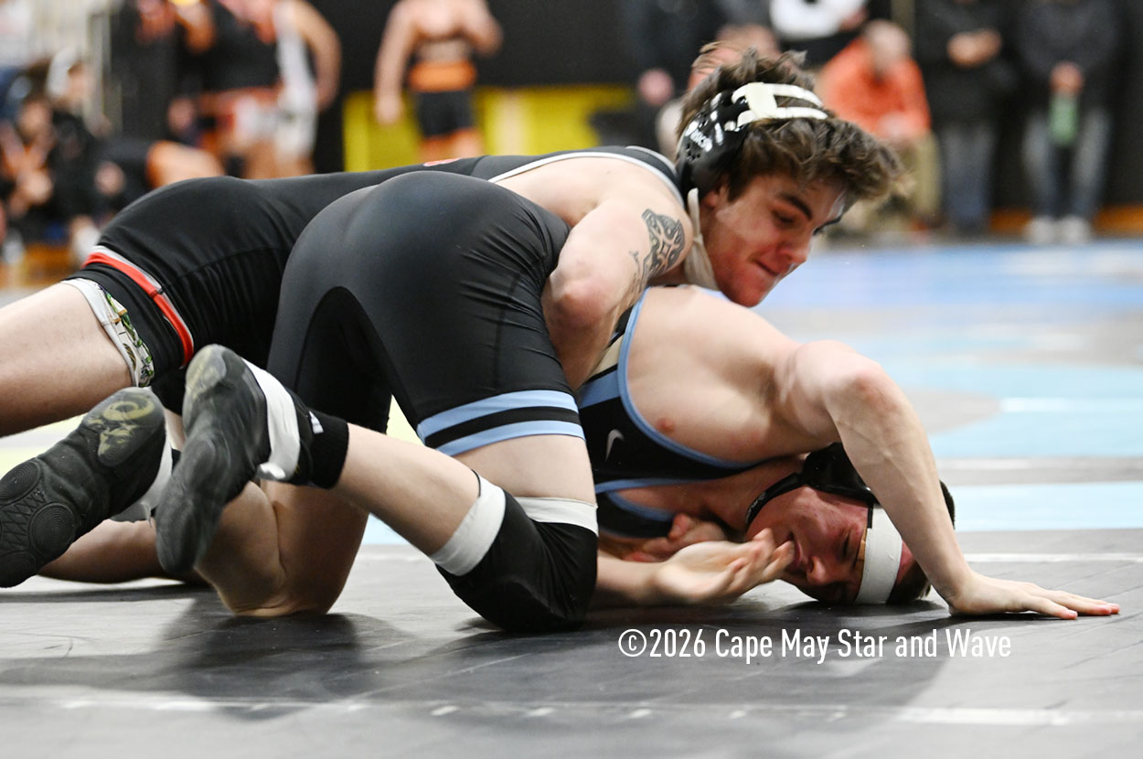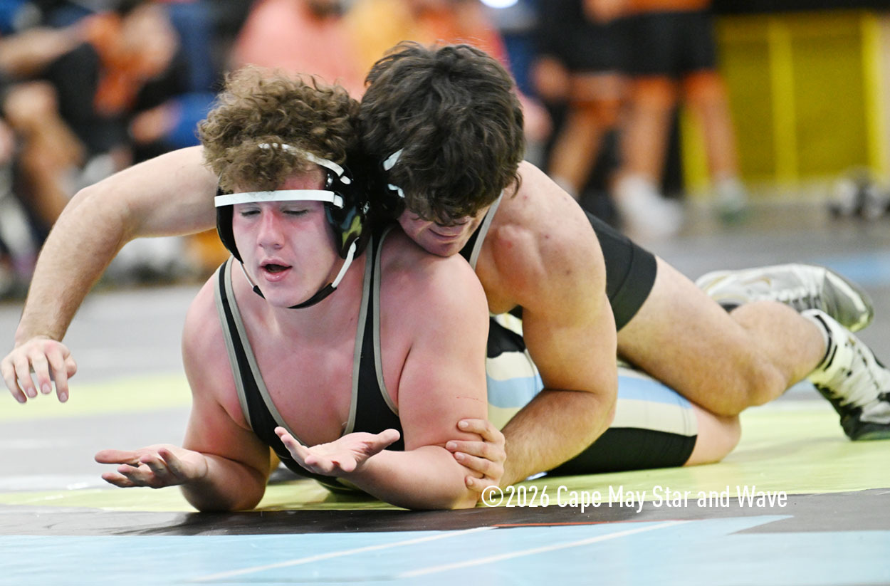 Ocean City’s Zarian Cabalo won a 6-0 decision over Ashton Ray at 165 pounds, but LCMR’s Shane Morrell (175) put 6 more points on the board with a pin of Ethan Miura at the 2:13 mark, pushing the Caper Tiger lead to 30-6.