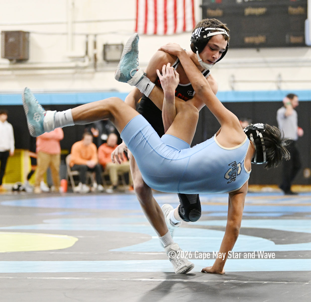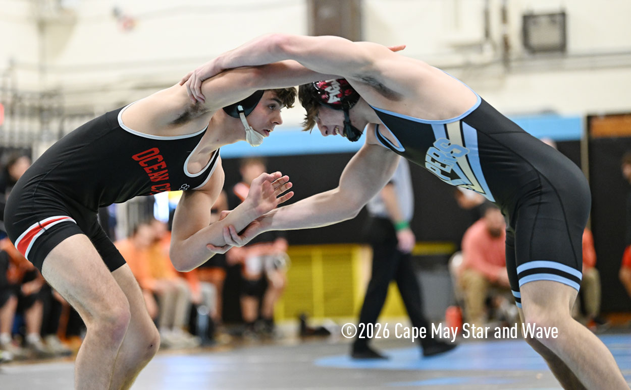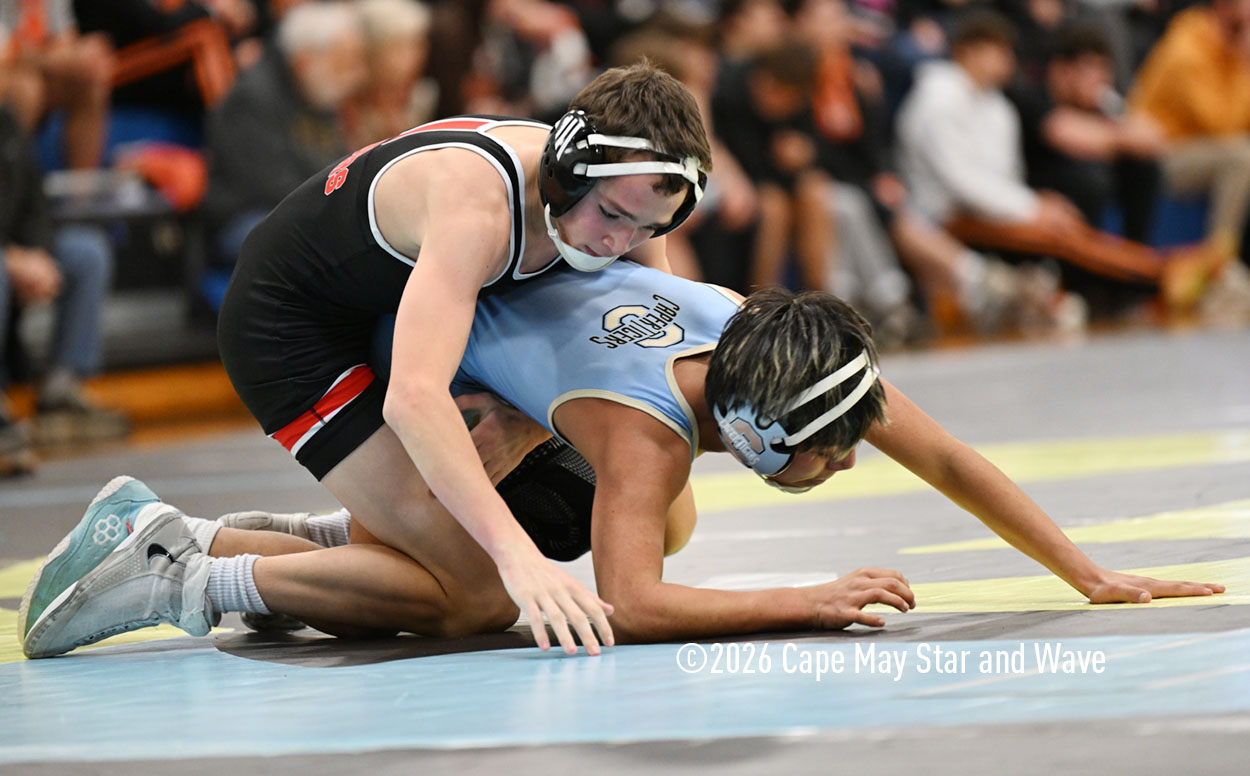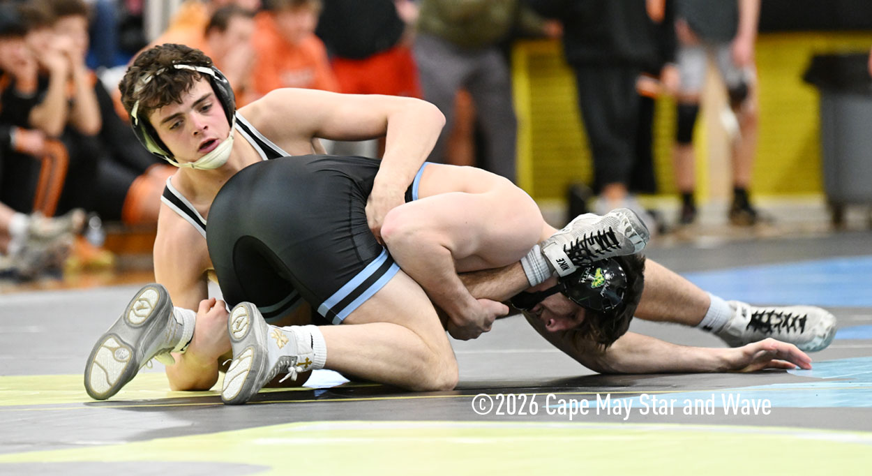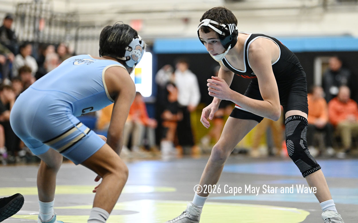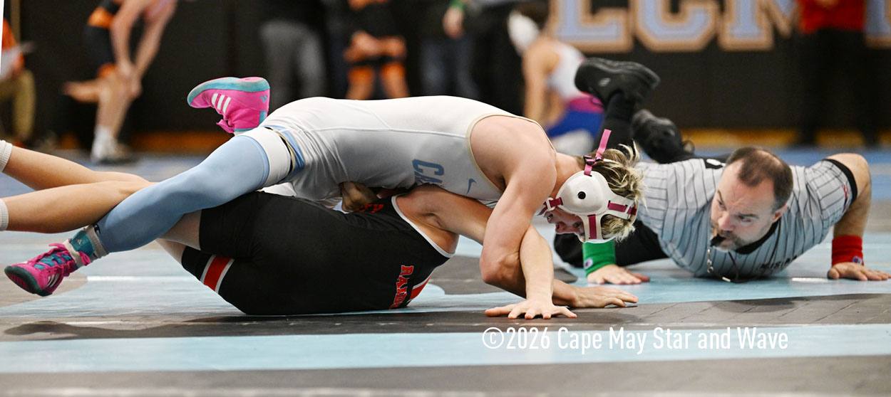 Ocean City’s Zarian Cabalo won a 6-0 decision over Ashton Ray at 165 pounds, but LCMR’s Shane Morrell (175) put 6 more points on the board with a pin of Ethan Miura at the 2:13 mark, pushing the Caper Tiger lead to 30-6.