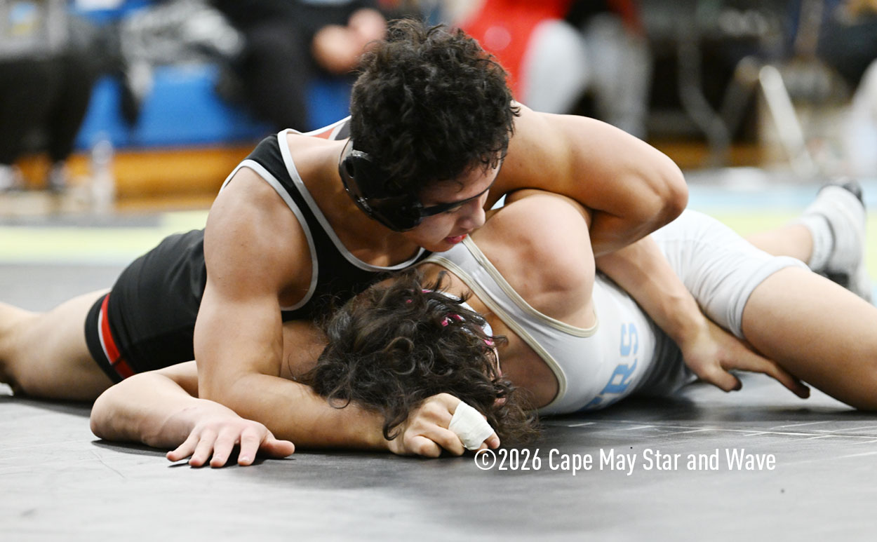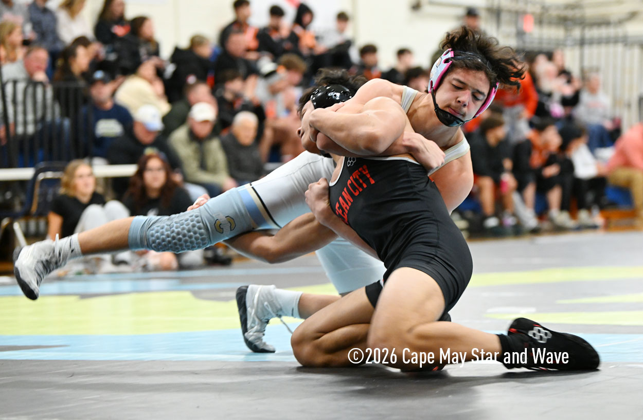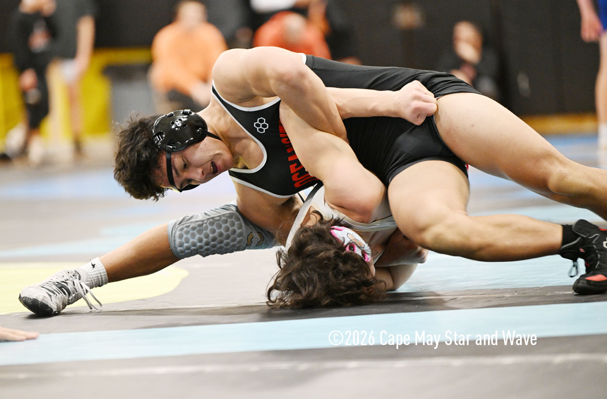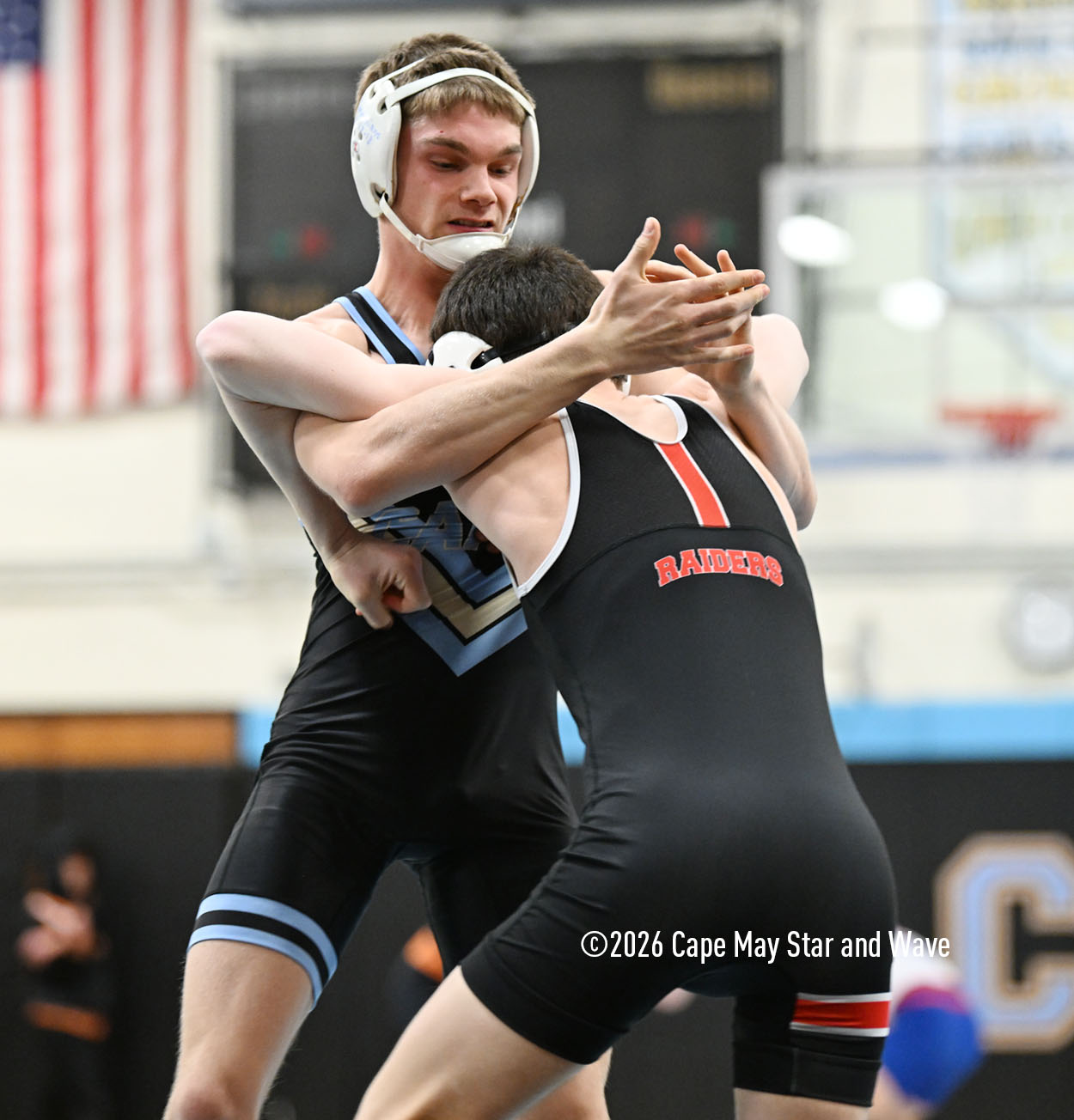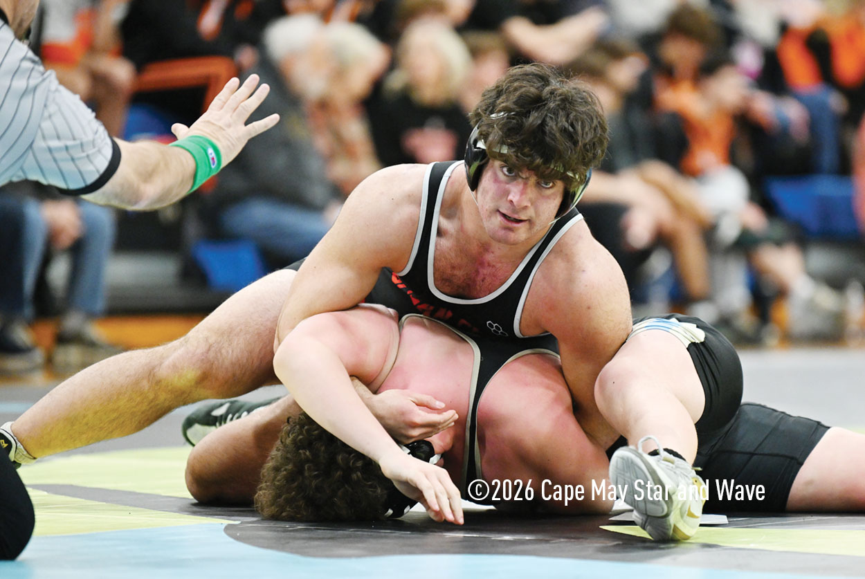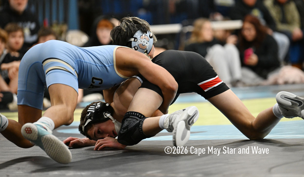 Ocean City’s Zarian Cabalo won a 6-0 decision over Ashton Ray at 165 pounds, but LCMR’s Shane Morrell (175) put 6 more points on the board with a pin of Ethan Miura at the 2:13 mark, pushing the Caper Tiger lead to 30-6.