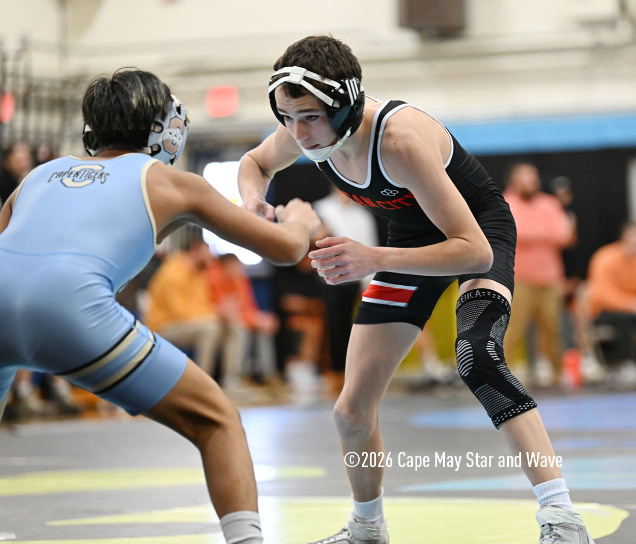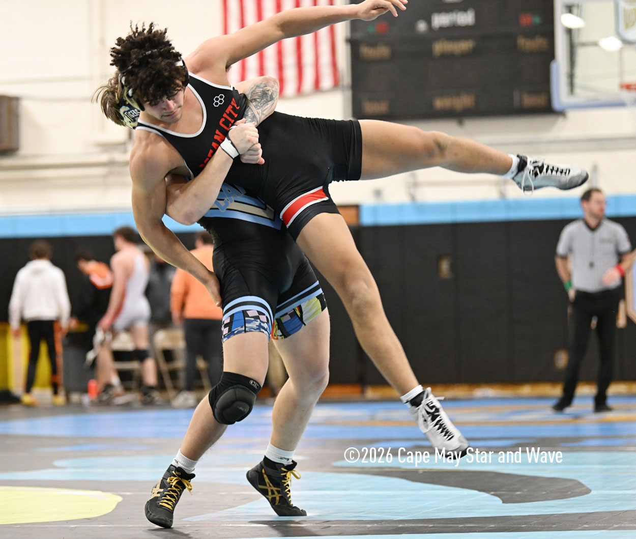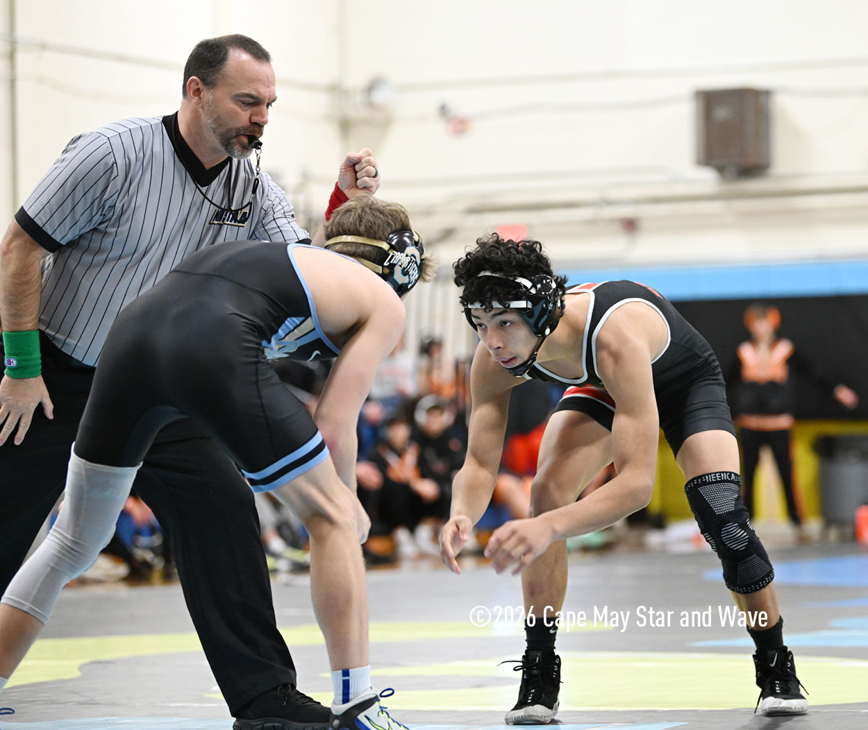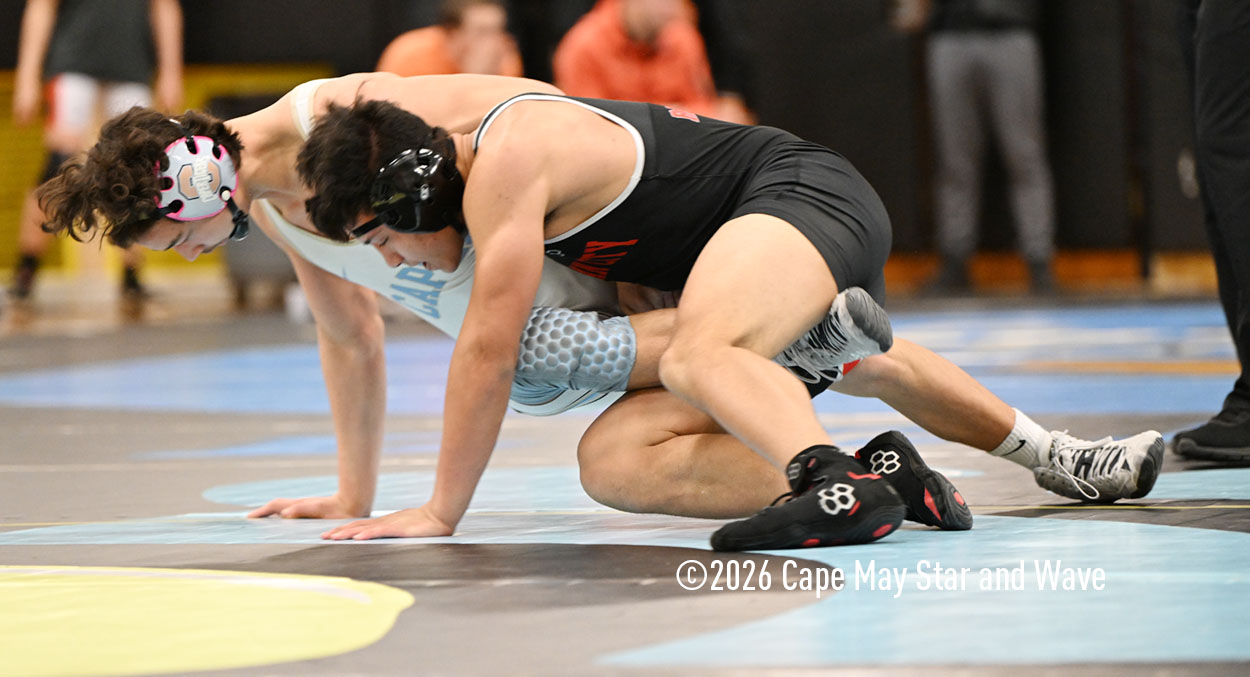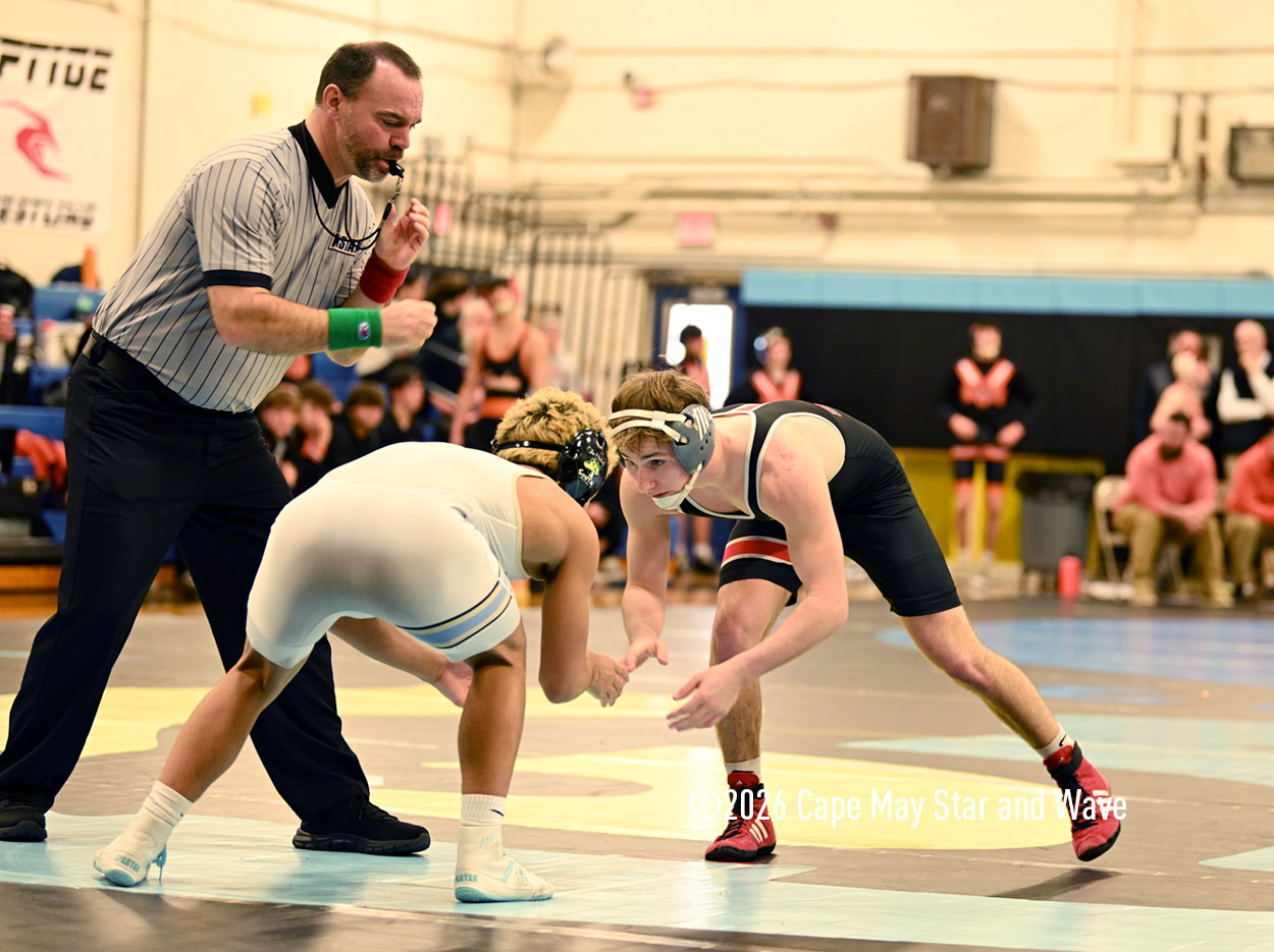 Ocean City’s Zarian Cabalo won a 6-0 decision over Ashton Ray at 165 pounds, but LCMR’s Shane Morrell (175) put 6 more points on the board with a pin of Ethan Miura at the 2:13 mark, pushing the Caper Tiger lead to 30-6.