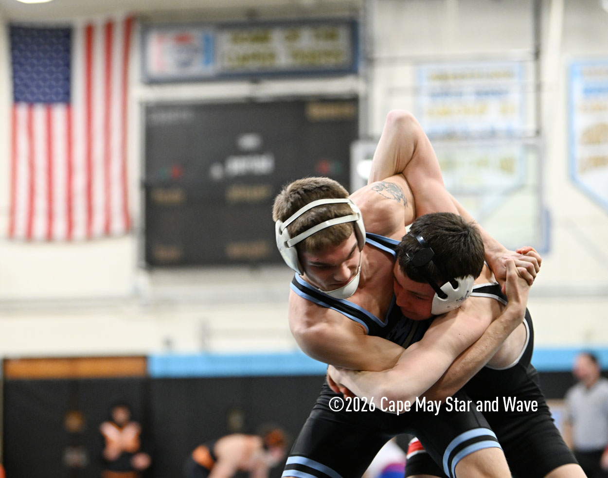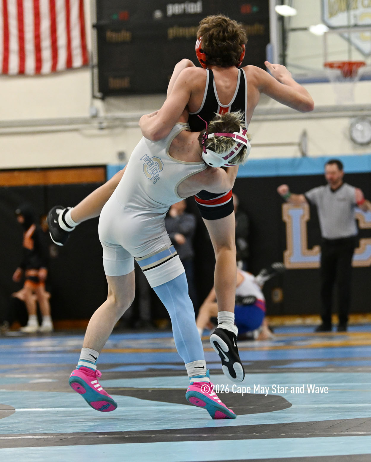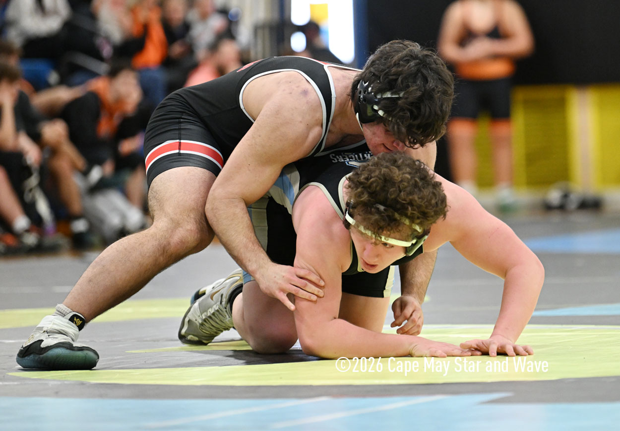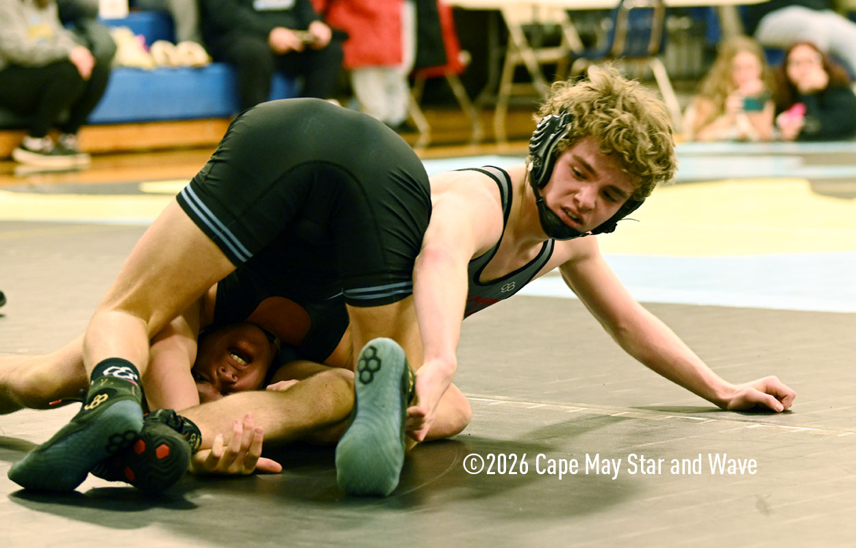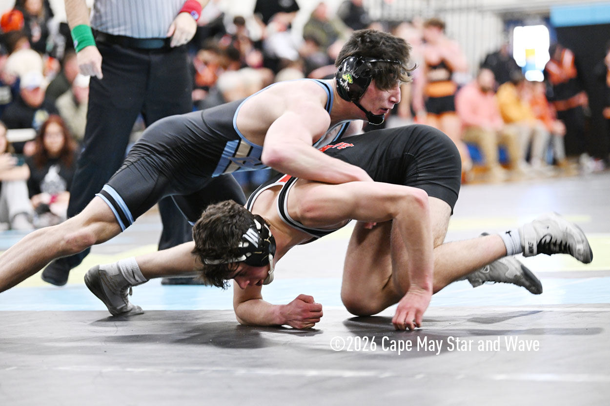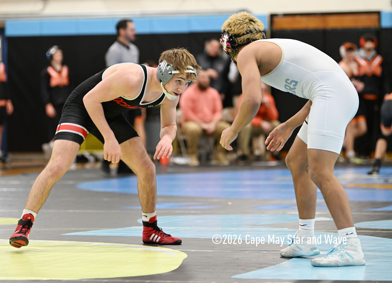 Ocean City’s Zarian Cabalo won a 6-0 decision over Ashton Ray at 165 pounds, but LCMR’s Shane Morrell (175) put 6 more points on the board with a pin of Ethan Miura at the 2:13 mark, pushing the Caper Tiger lead to 30-6.