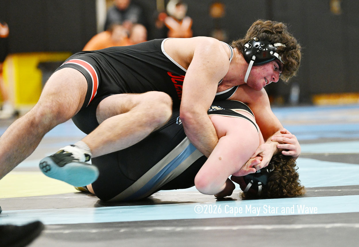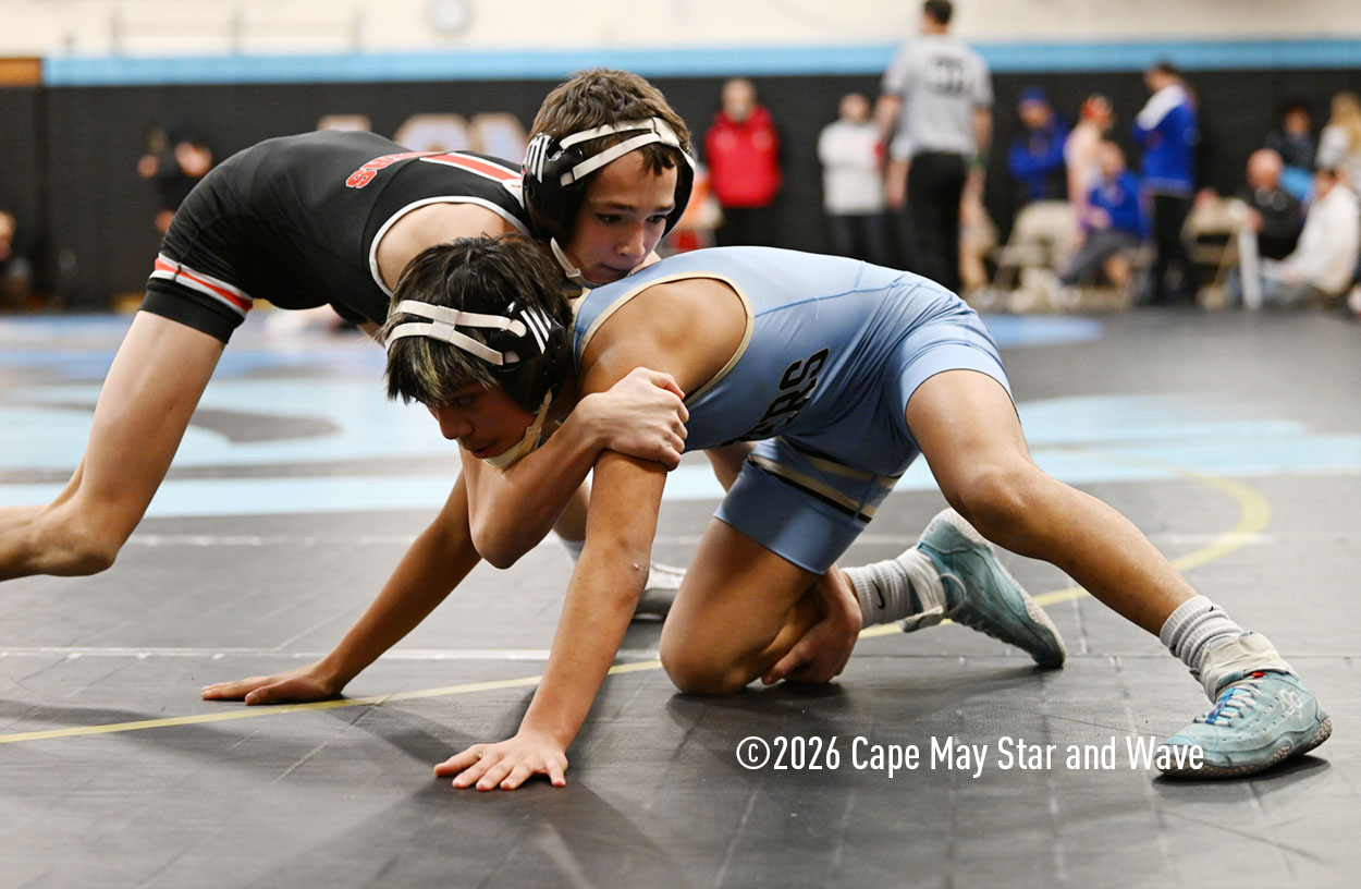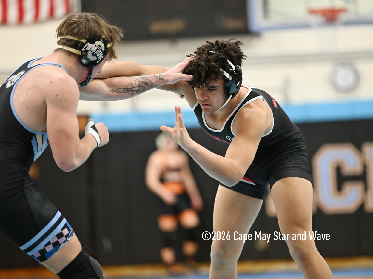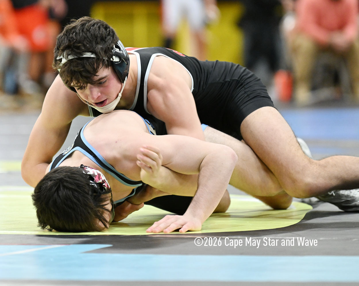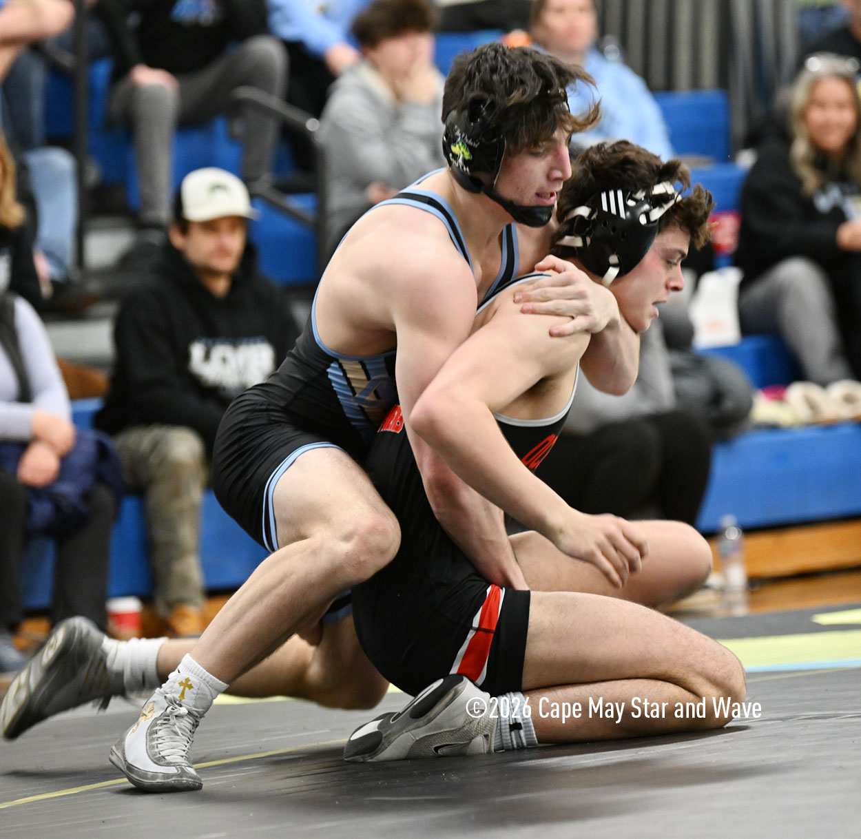 Ocean City’s Zarian Cabalo won a 6-0 decision over Ashton Ray at 165 pounds, but LCMR’s Shane Morrell (175) put 6 more points on the board with a pin of Ethan Miura at the 2:13 mark, pushing the Caper Tiger lead to 30-6.