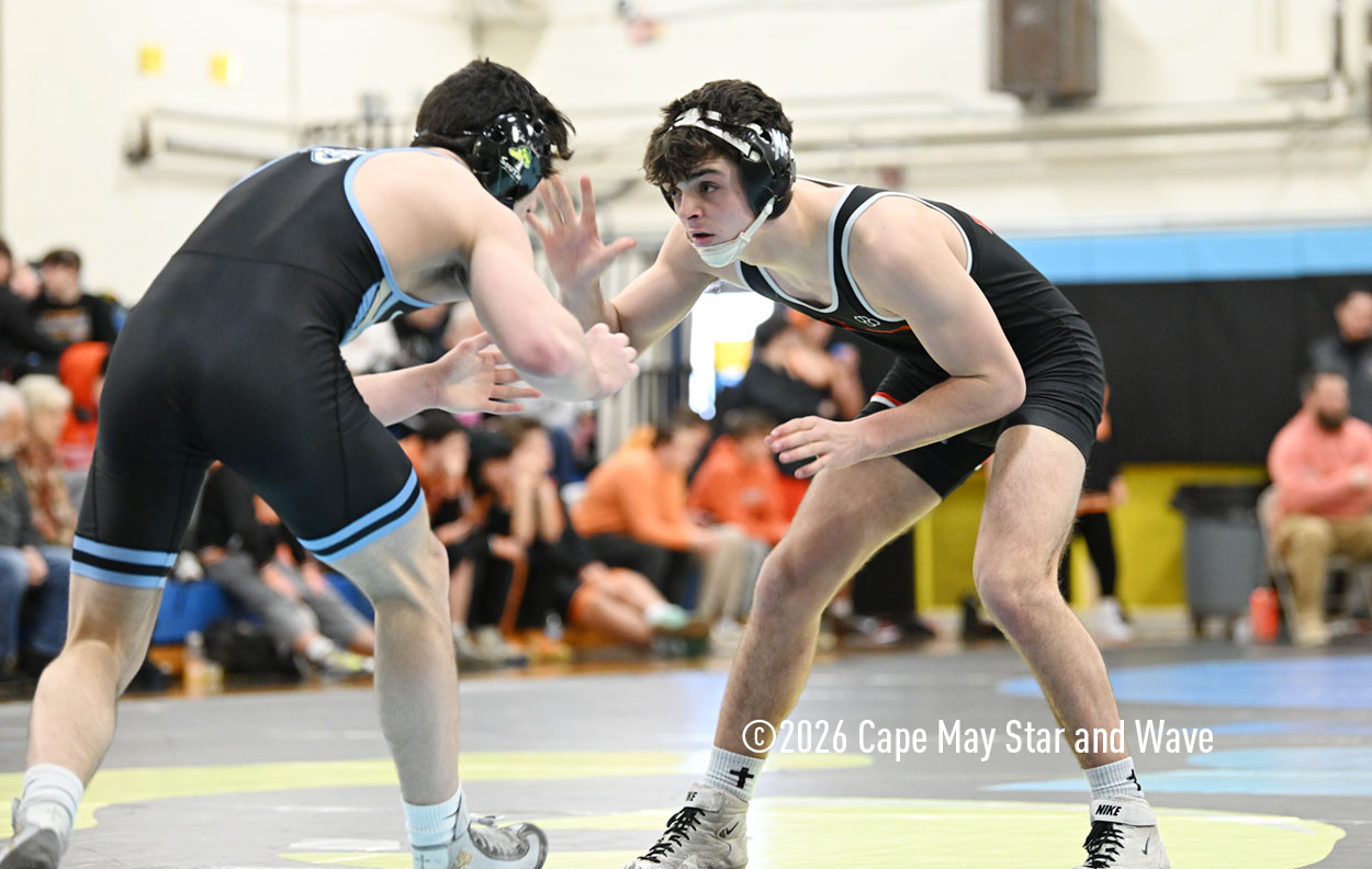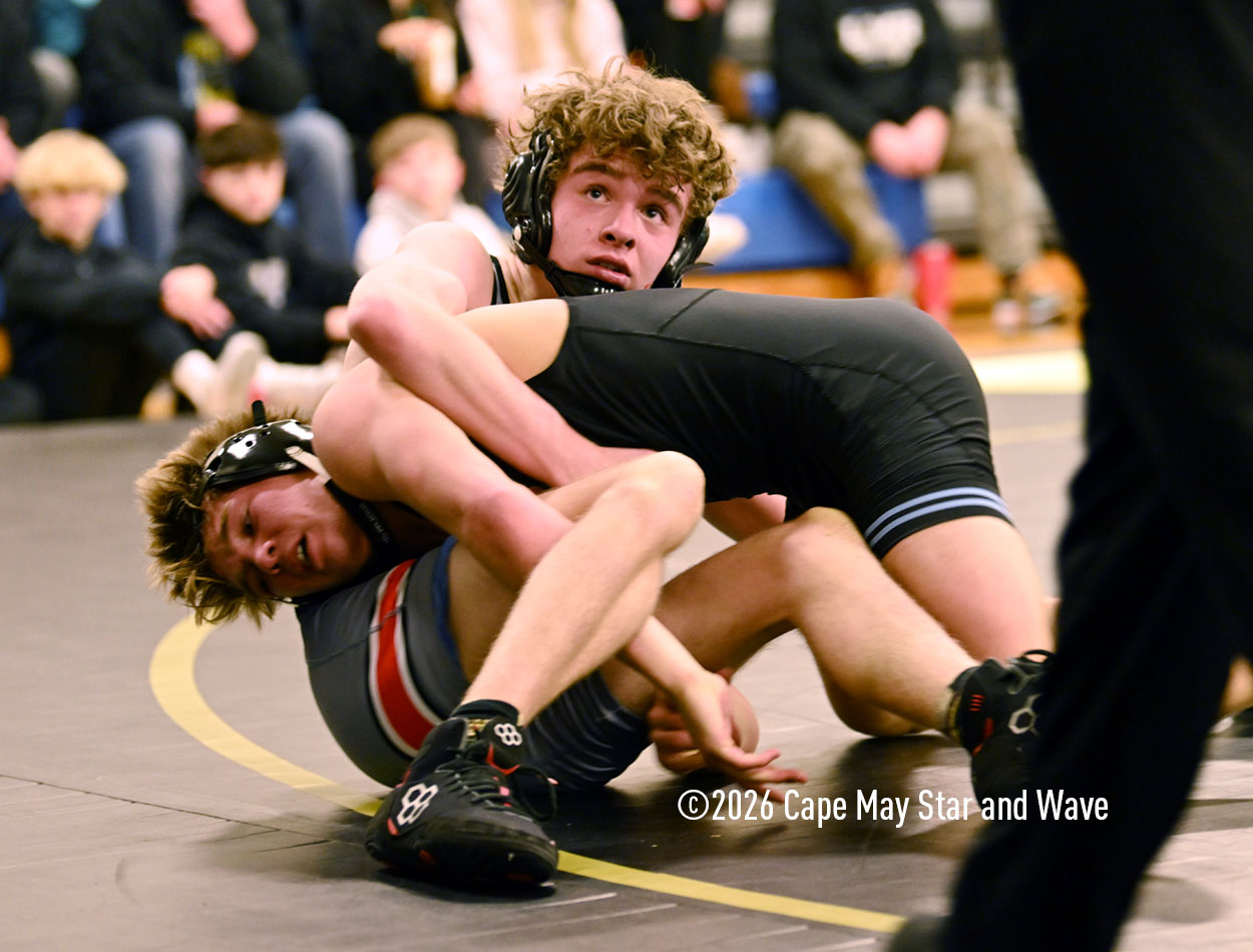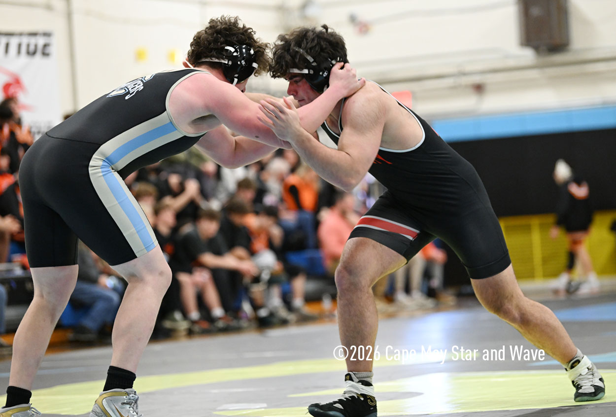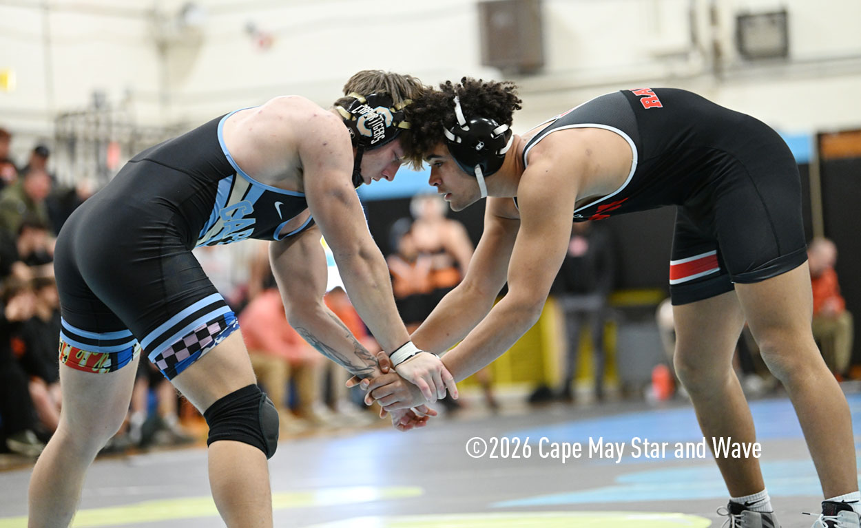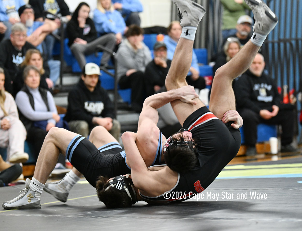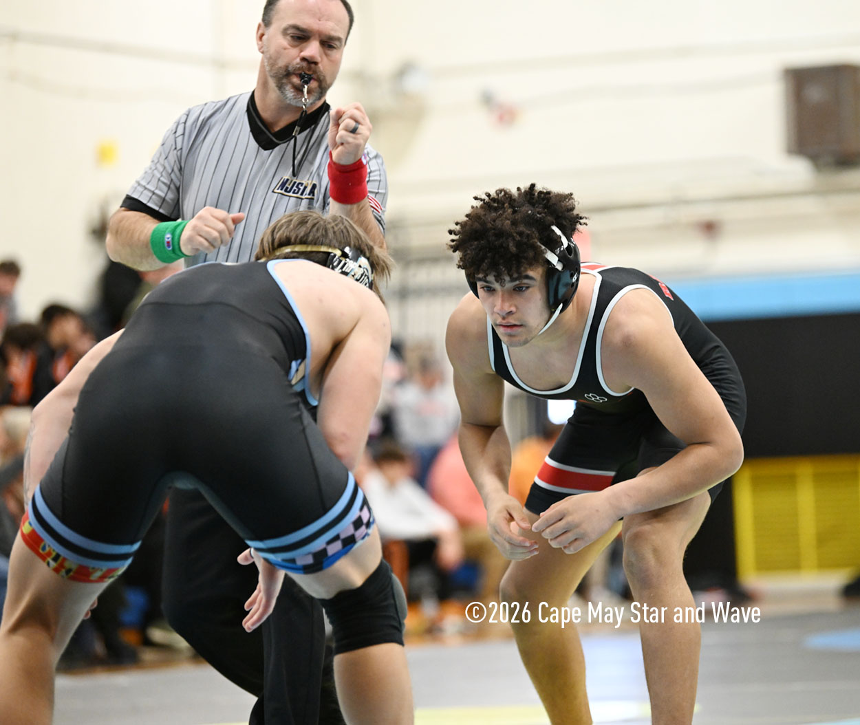 Ocean City’s Zarian Cabalo won a 6-0 decision over Ashton Ray at 165 pounds, but LCMR’s Shane Morrell (175) put 6 more points on the board with a pin of Ethan Miura at the 2:13 mark, pushing the Caper Tiger lead to 30-6.