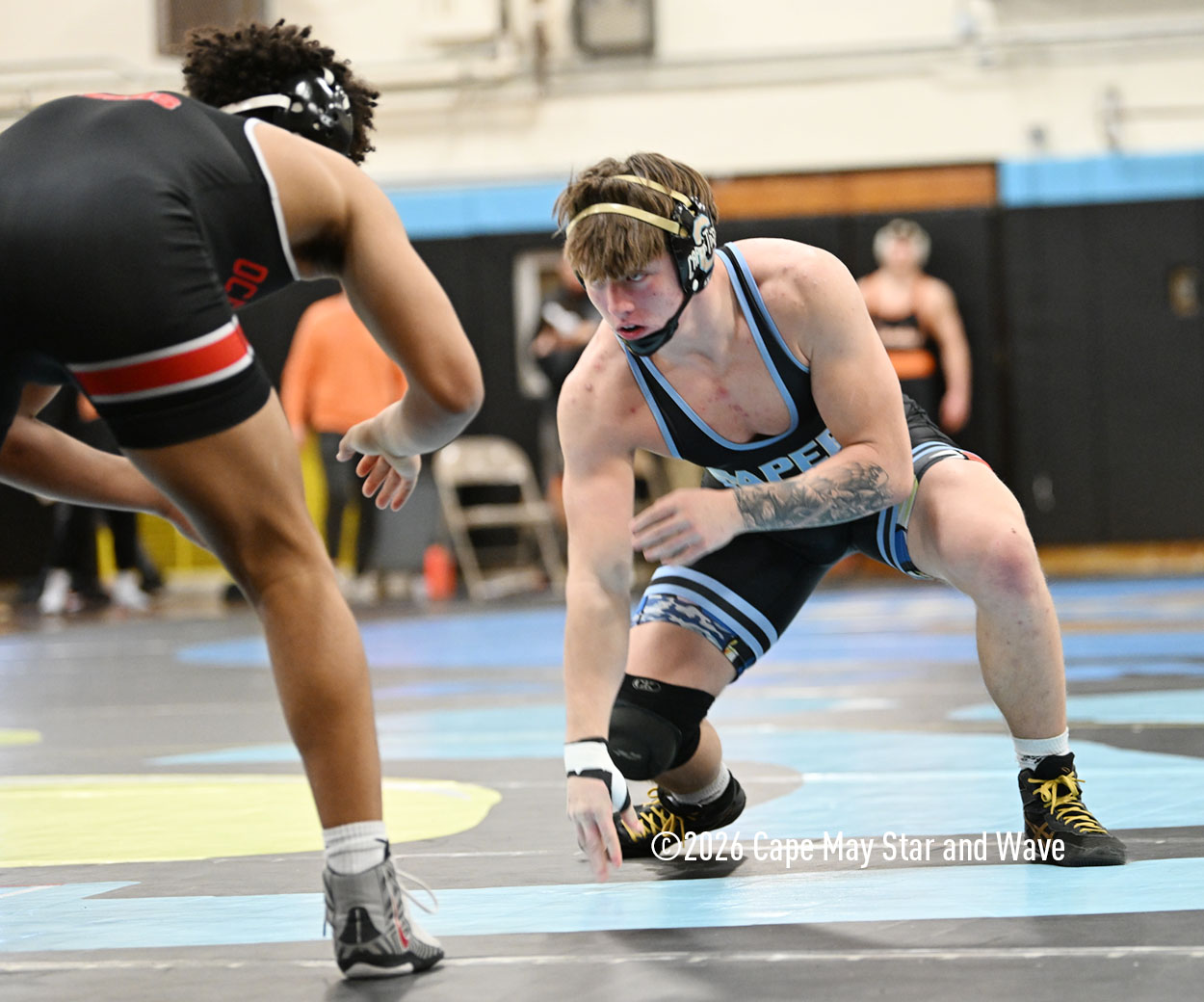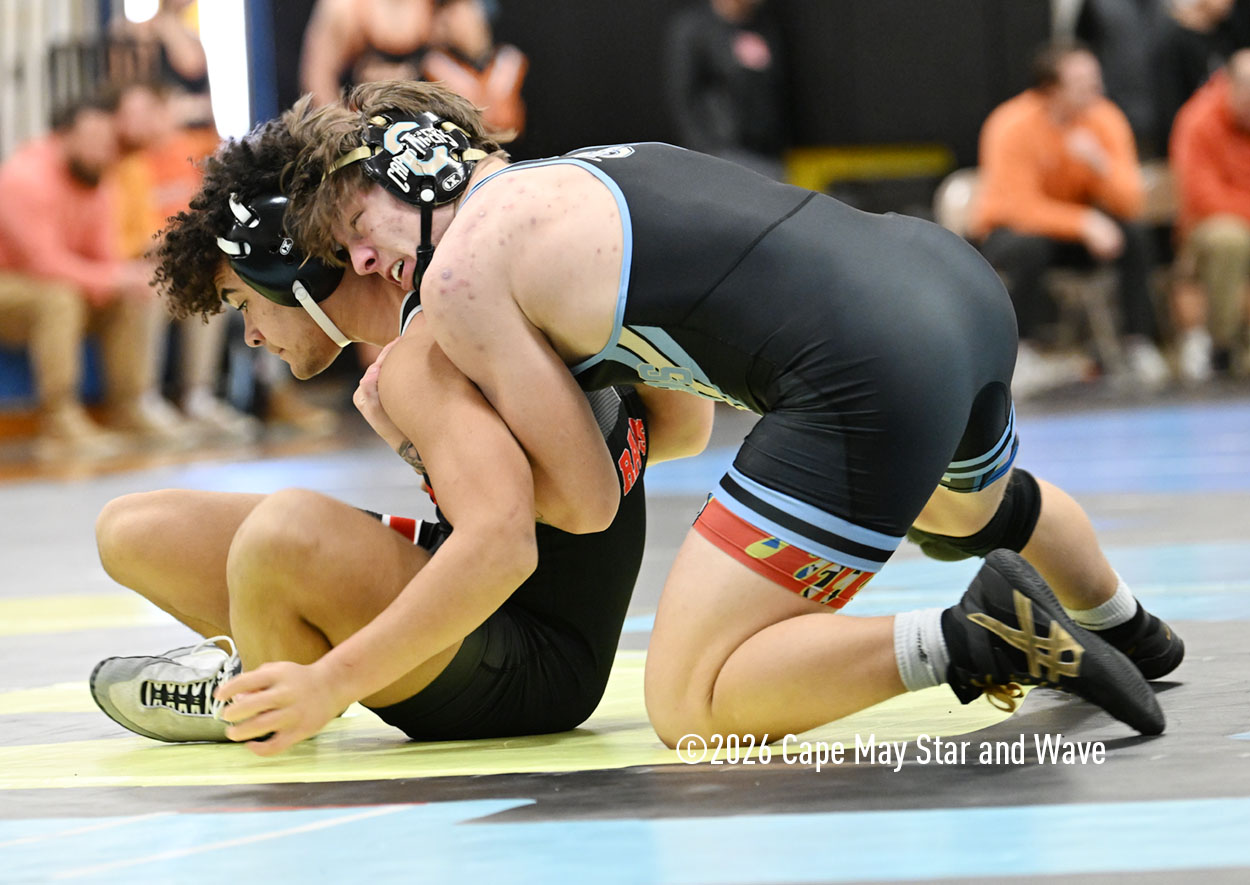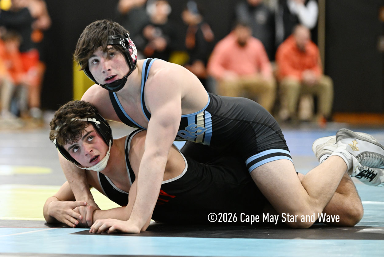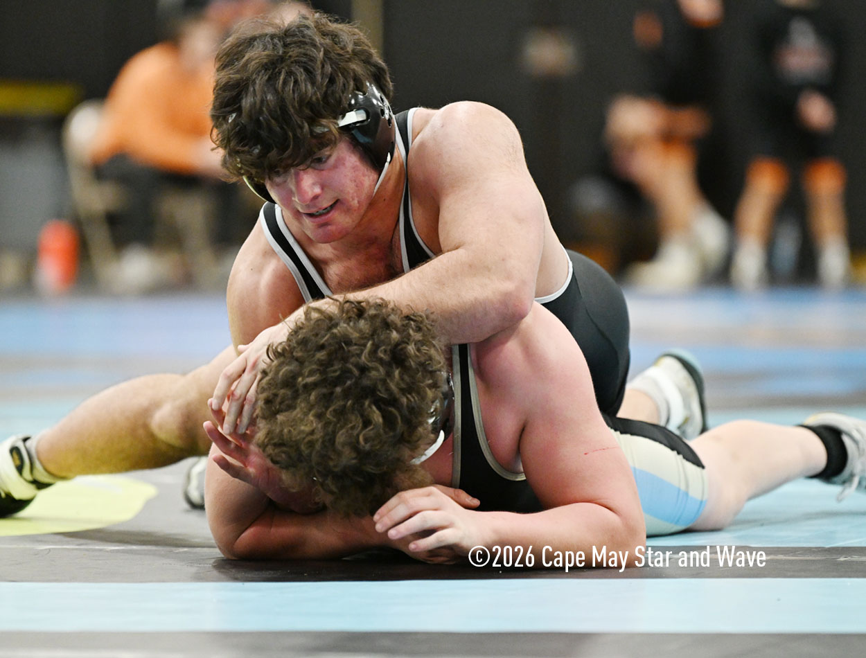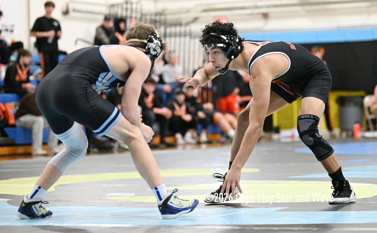 Ocean City’s Zarian Cabalo won a 6-0 decision over Ashton Ray at 165 pounds, but LCMR’s Shane Morrell (175) put 6 more points on the board with a pin of Ethan Miura at the 2:13 mark, pushing the Caper Tiger lead to 30-6.