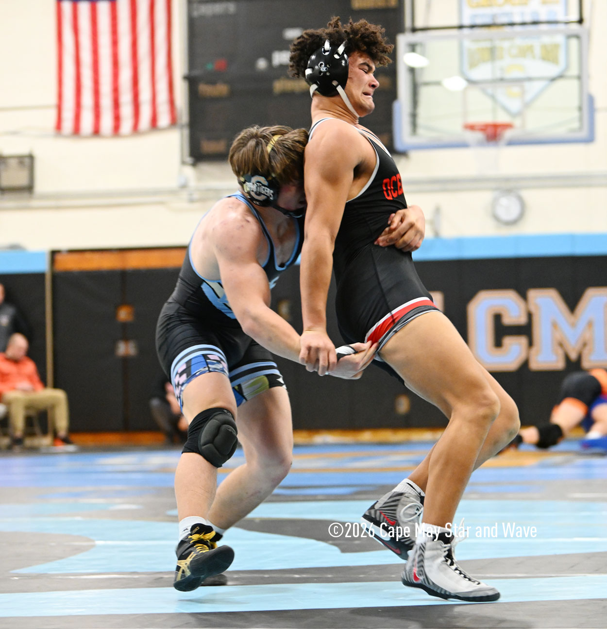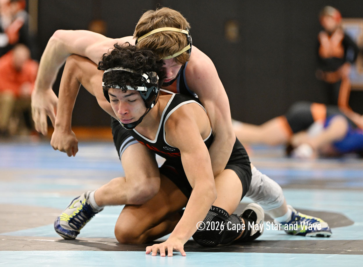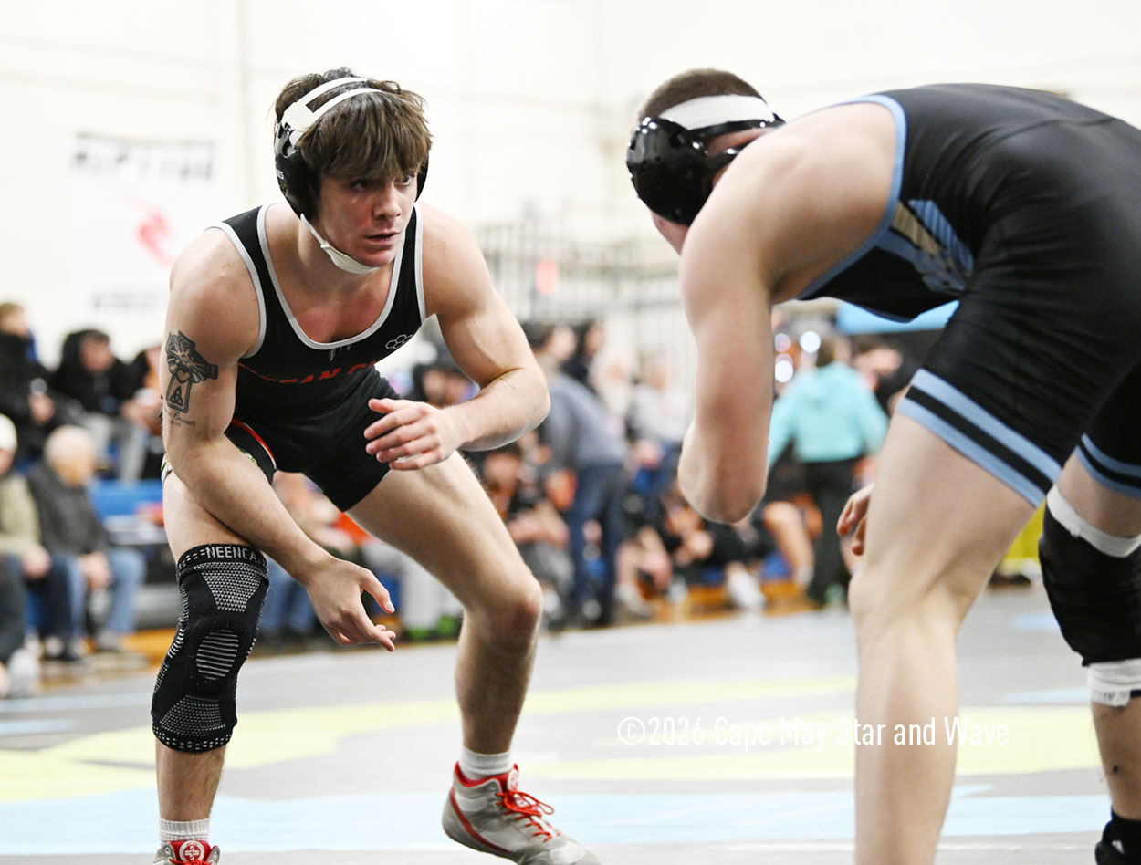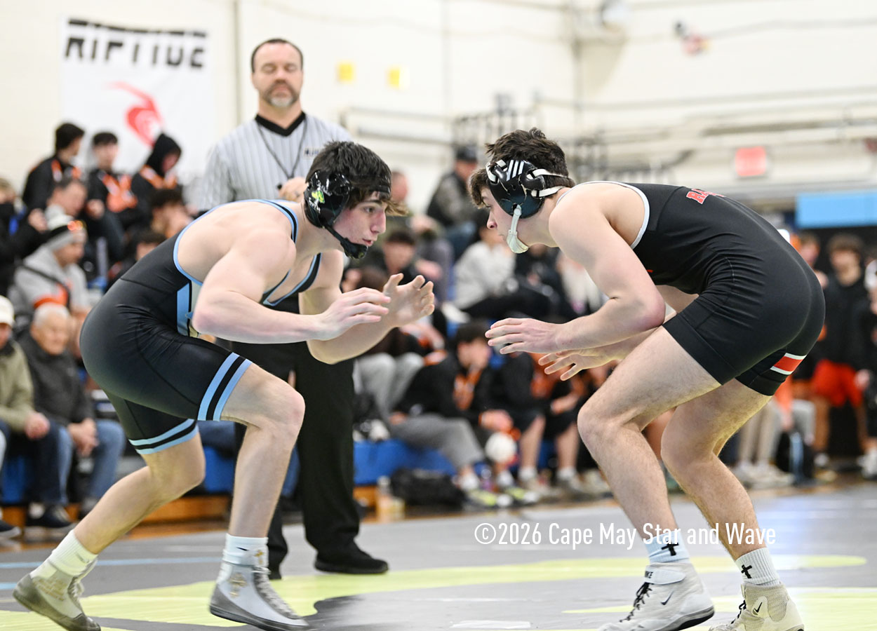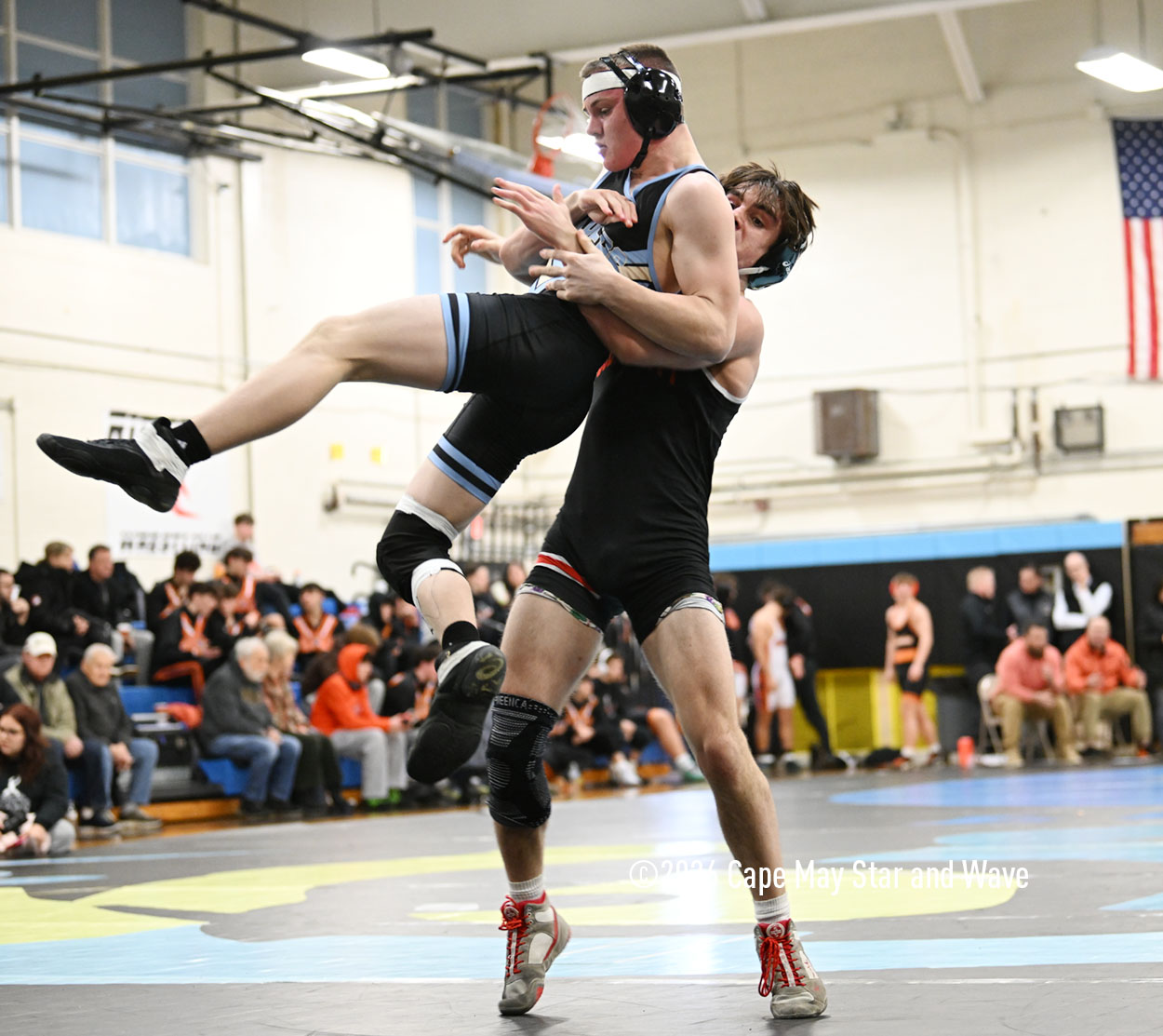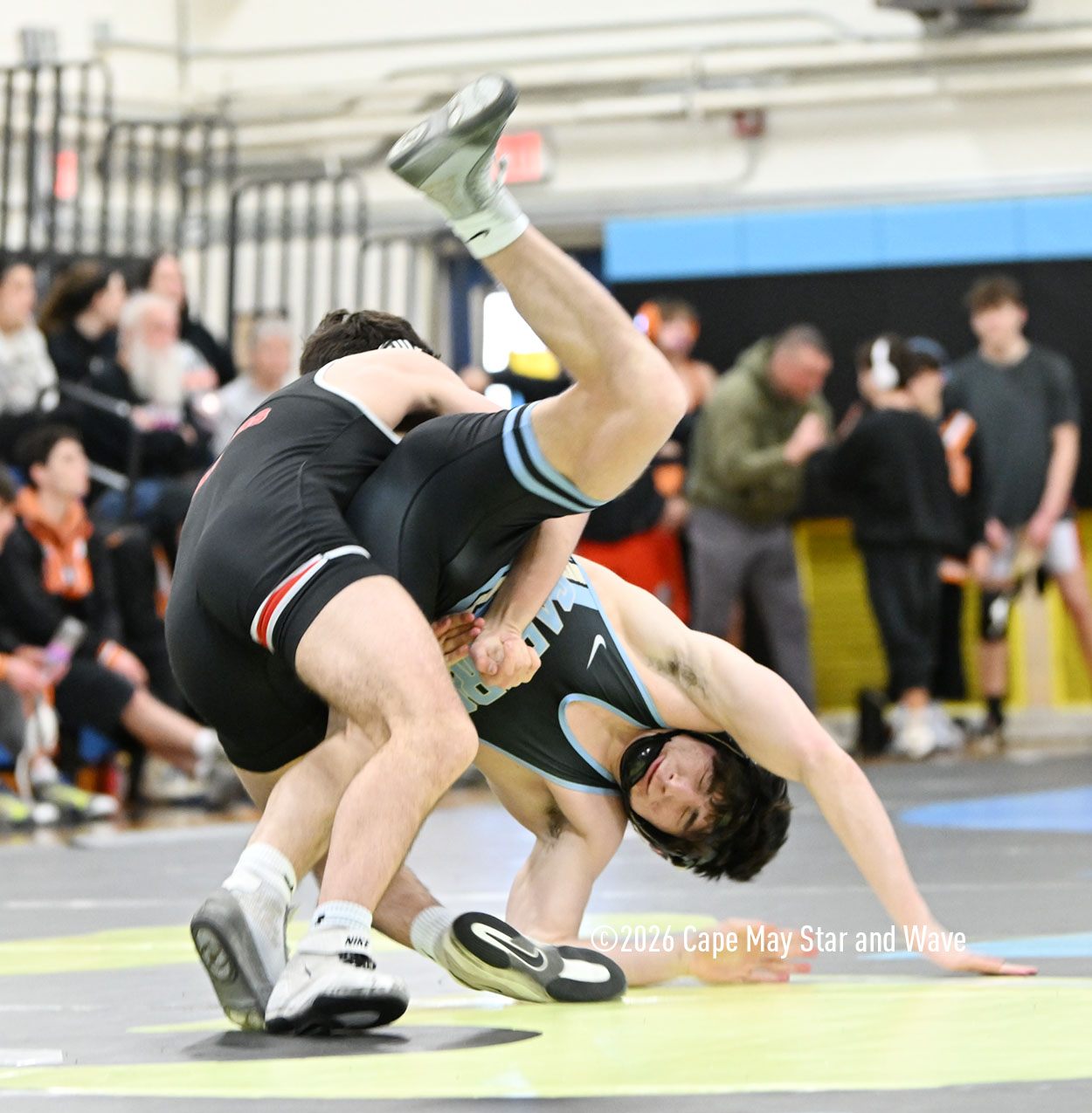 Ocean City’s Zarian Cabalo won a 6-0 decision over Ashton Ray at 165 pounds, but LCMR’s Shane Morrell (175) put 6 more points on the board with a pin of Ethan Miura at the 2:13 mark, pushing the Caper Tiger lead to 30-6.