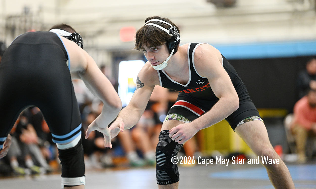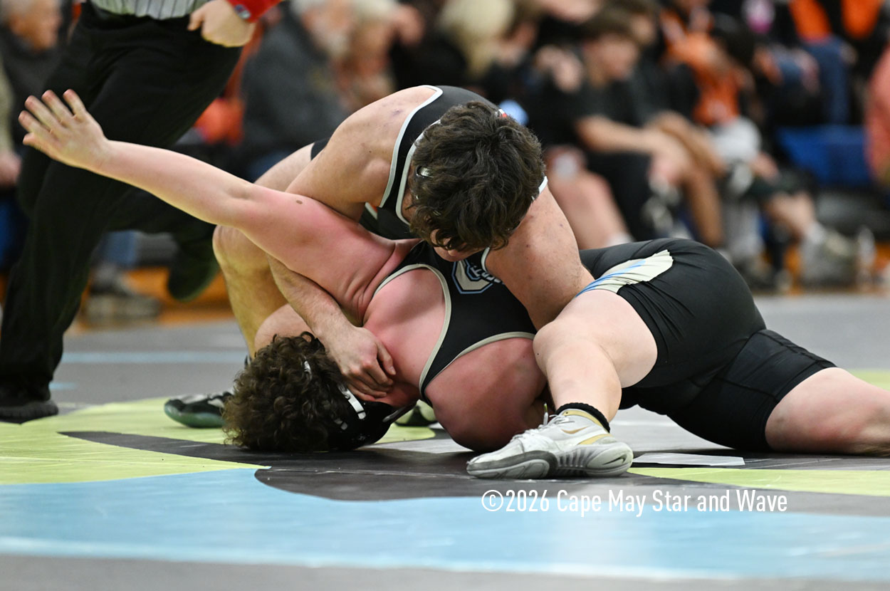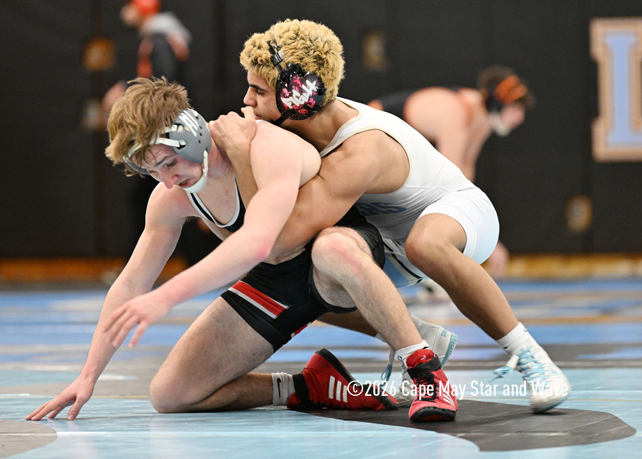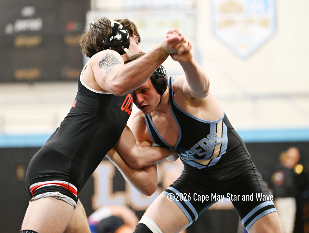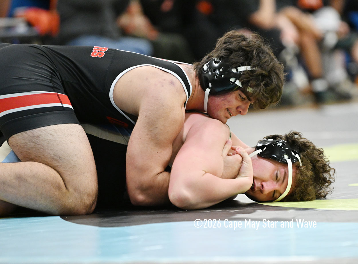 Ocean City’s Zarian Cabalo won a 6-0 decision over Ashton Ray at 165 pounds, but LCMR’s Shane Morrell (175) put 6 more points on the board with a pin of Ethan Miura at the 2:13 mark, pushing the Caper Tiger lead to 30-6.