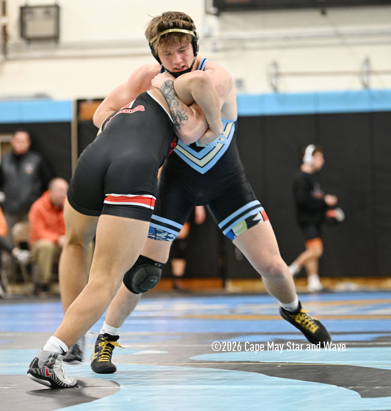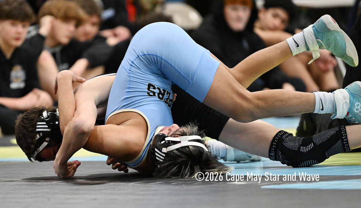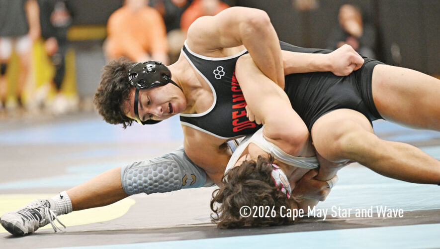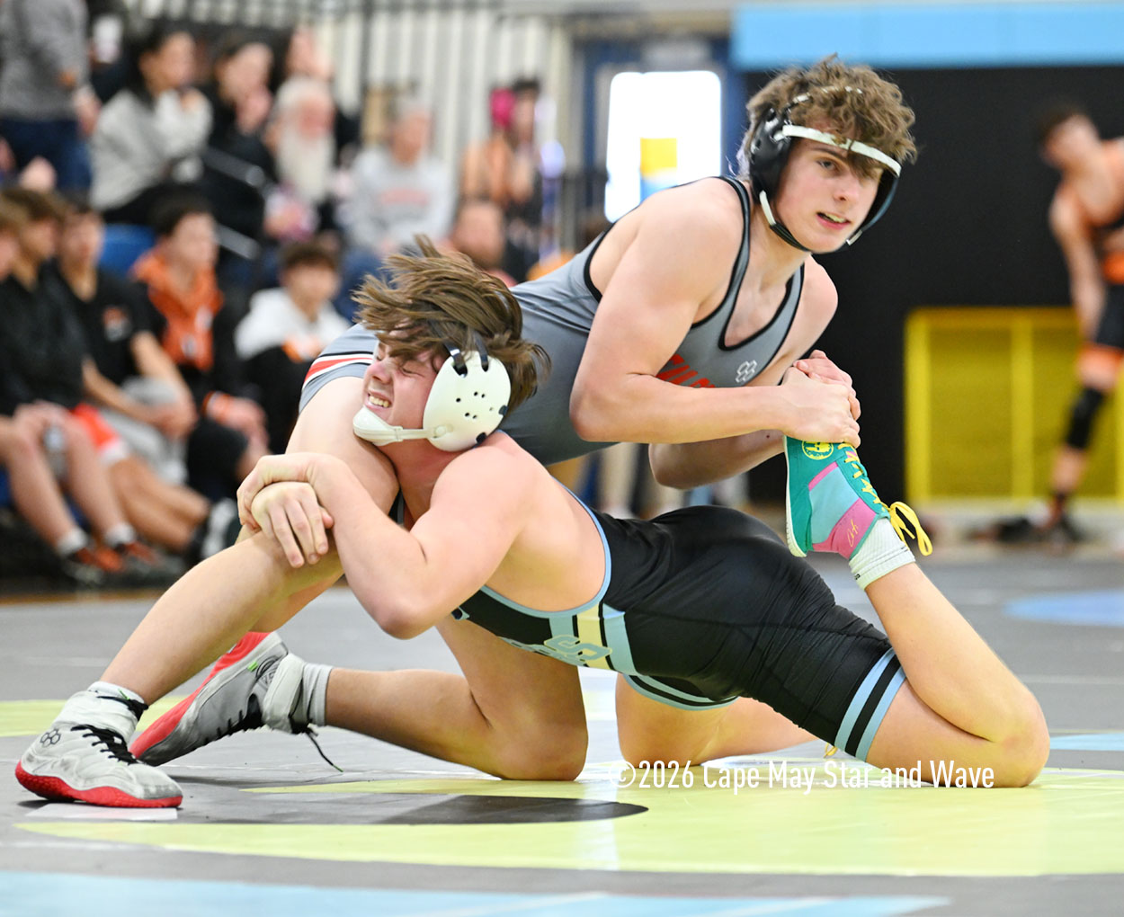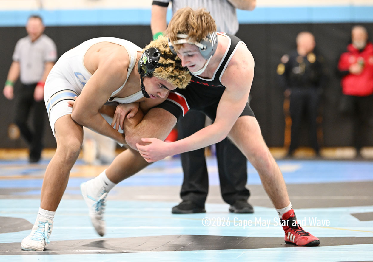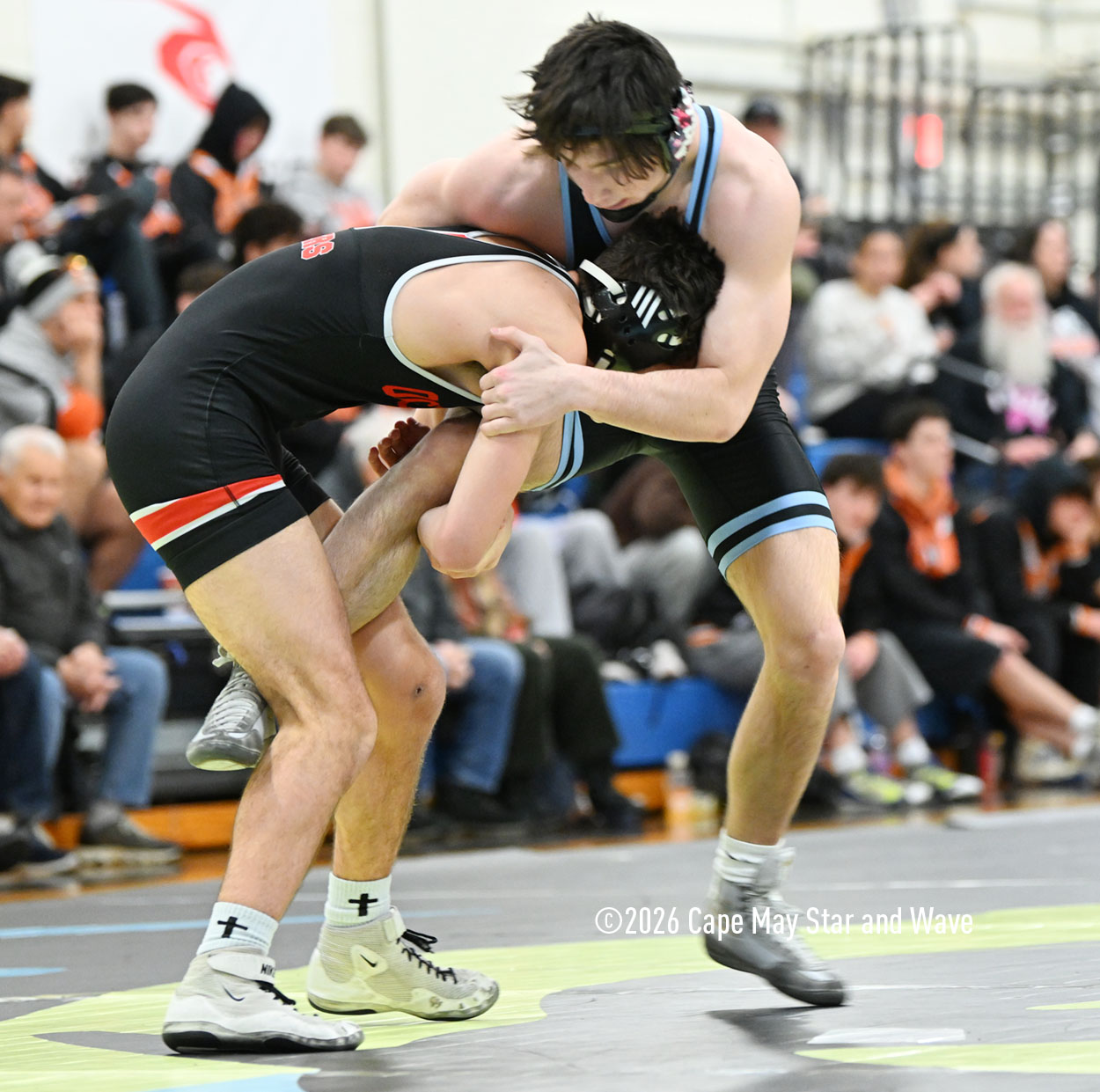 Ocean City’s Zarian Cabalo won a 6-0 decision over Ashton Ray at 165 pounds, but LCMR’s Shane Morrell (175) put 6 more points on the board with a pin of Ethan Miura at the 2:13 mark, pushing the Caper Tiger lead to 30-6.