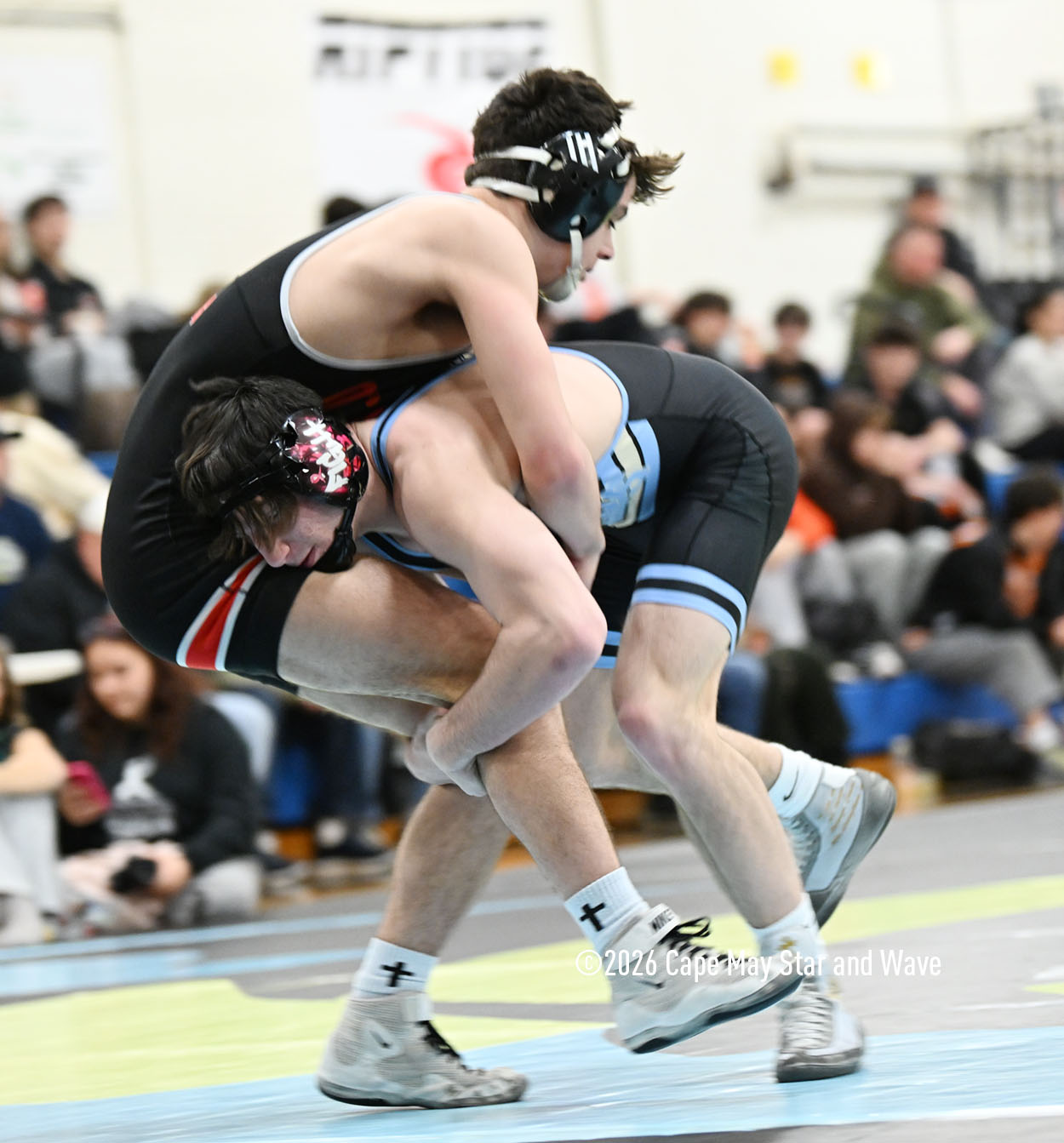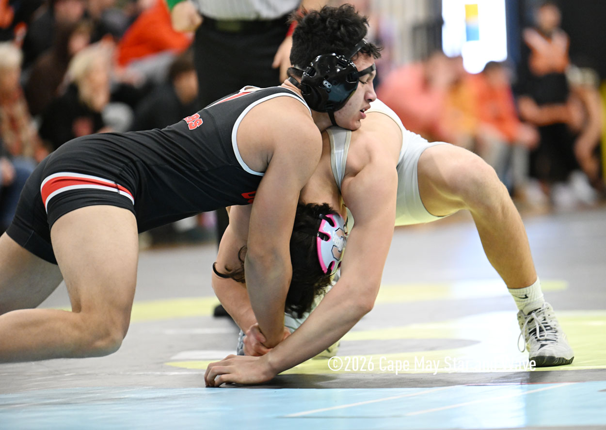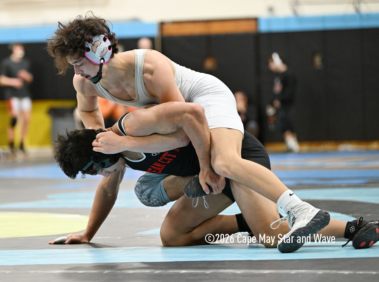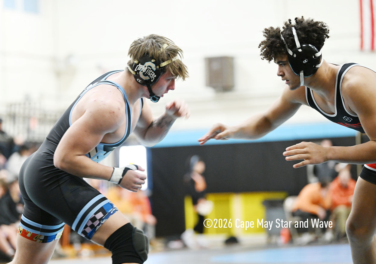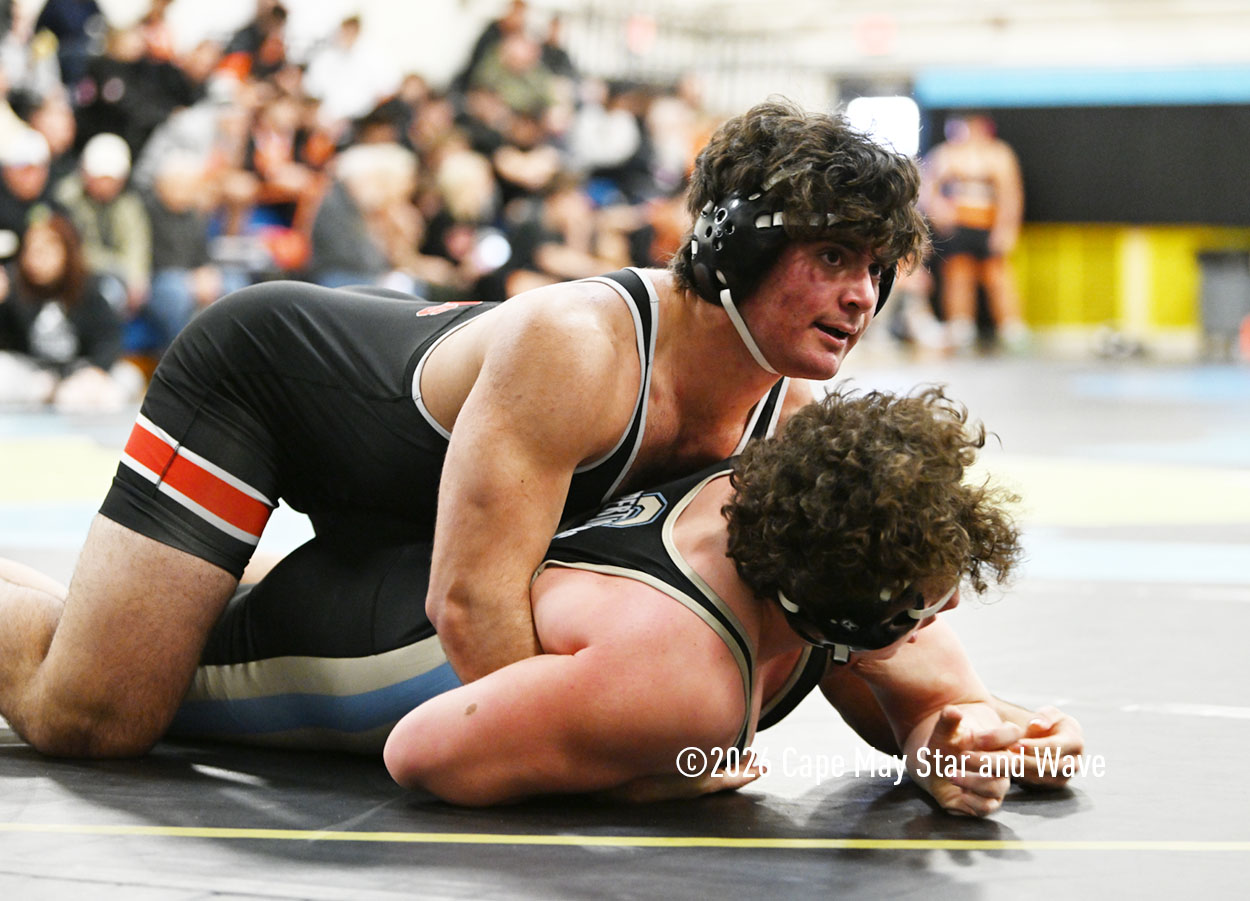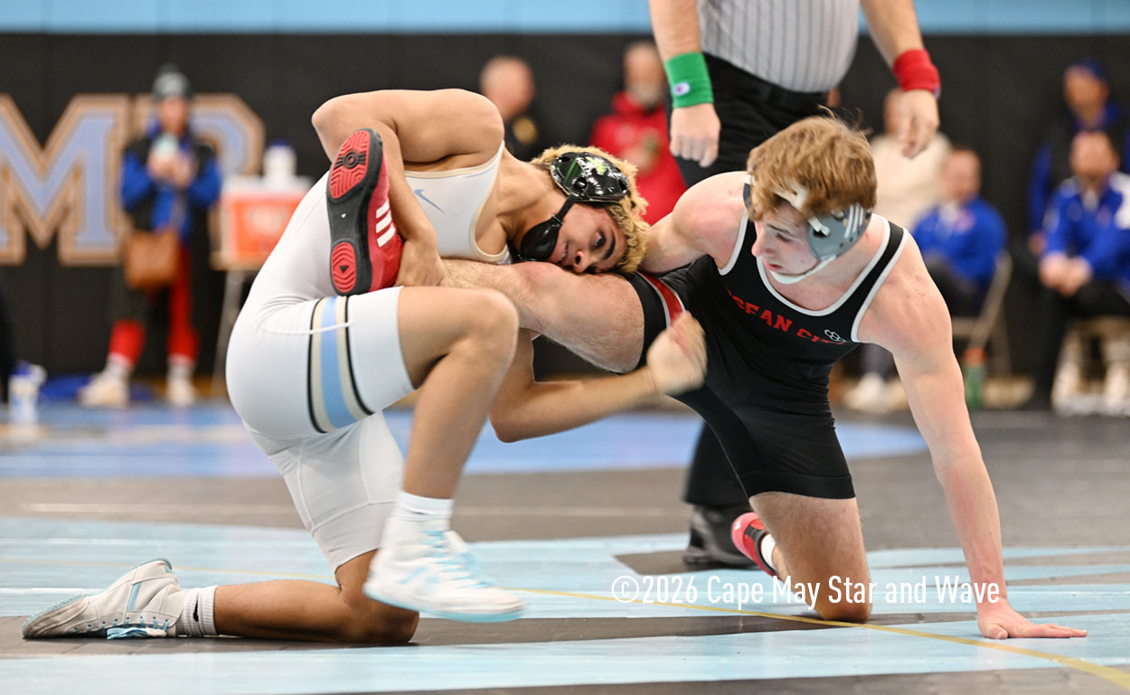 Ocean City’s Zarian Cabalo won a 6-0 decision over Ashton Ray at 165 pounds, but LCMR’s Shane Morrell (175) put 6 more points on the board with a pin of Ethan Miura at the 2:13 mark, pushing the Caper Tiger lead to 30-6.