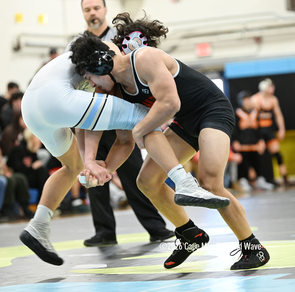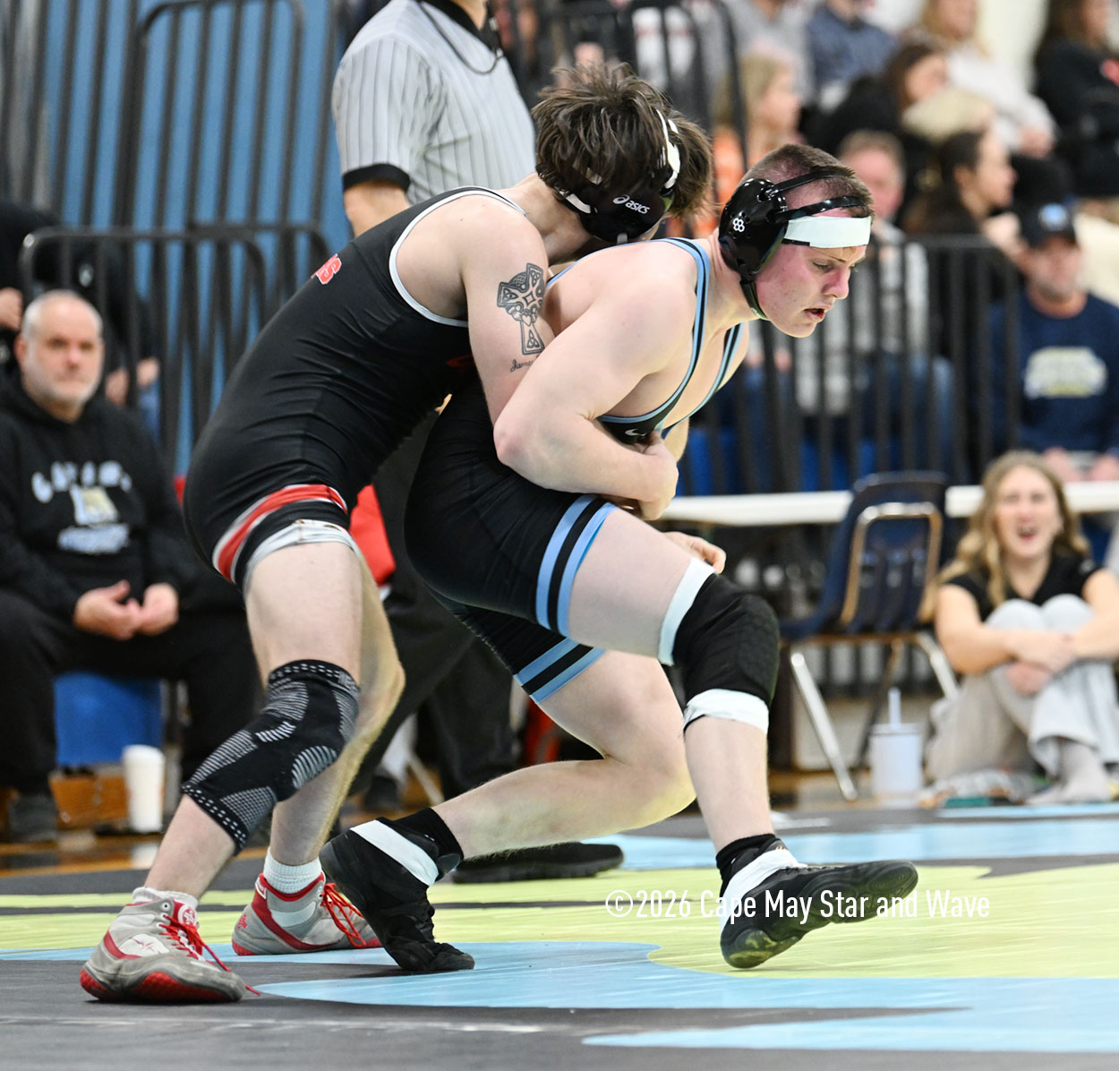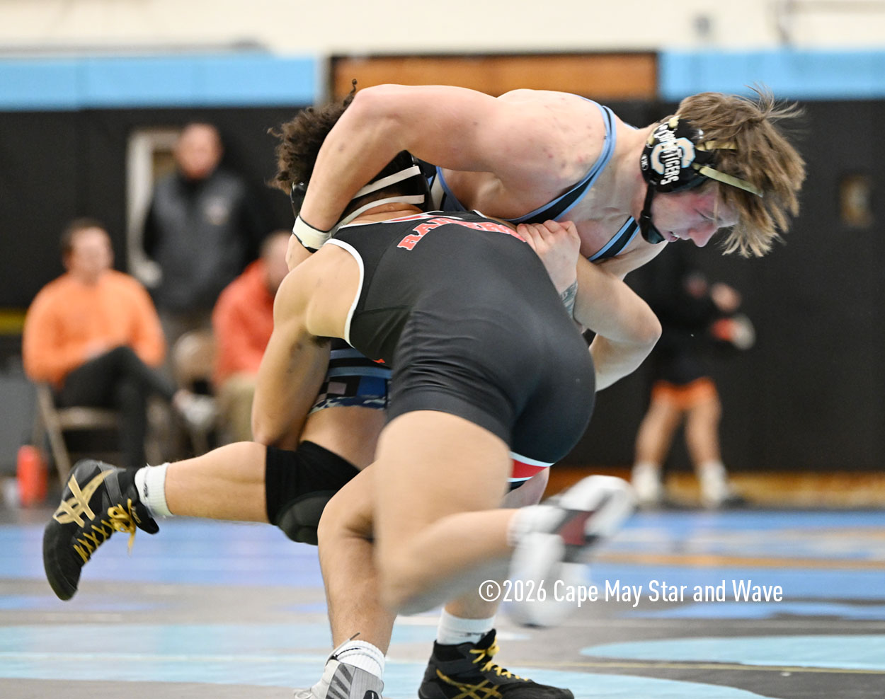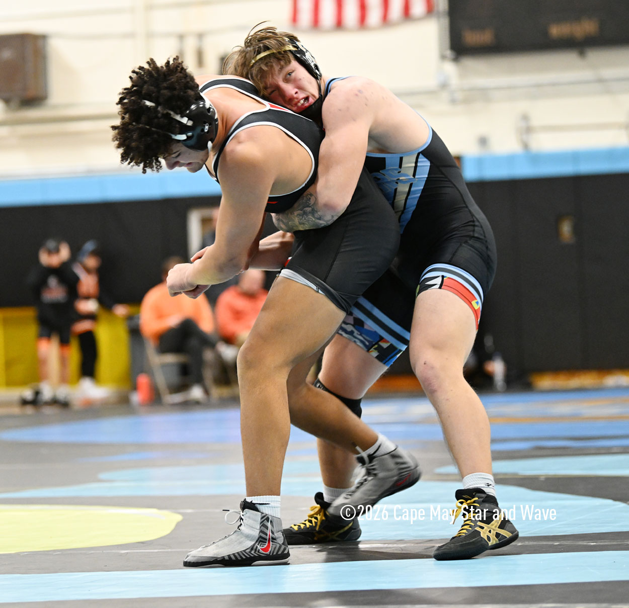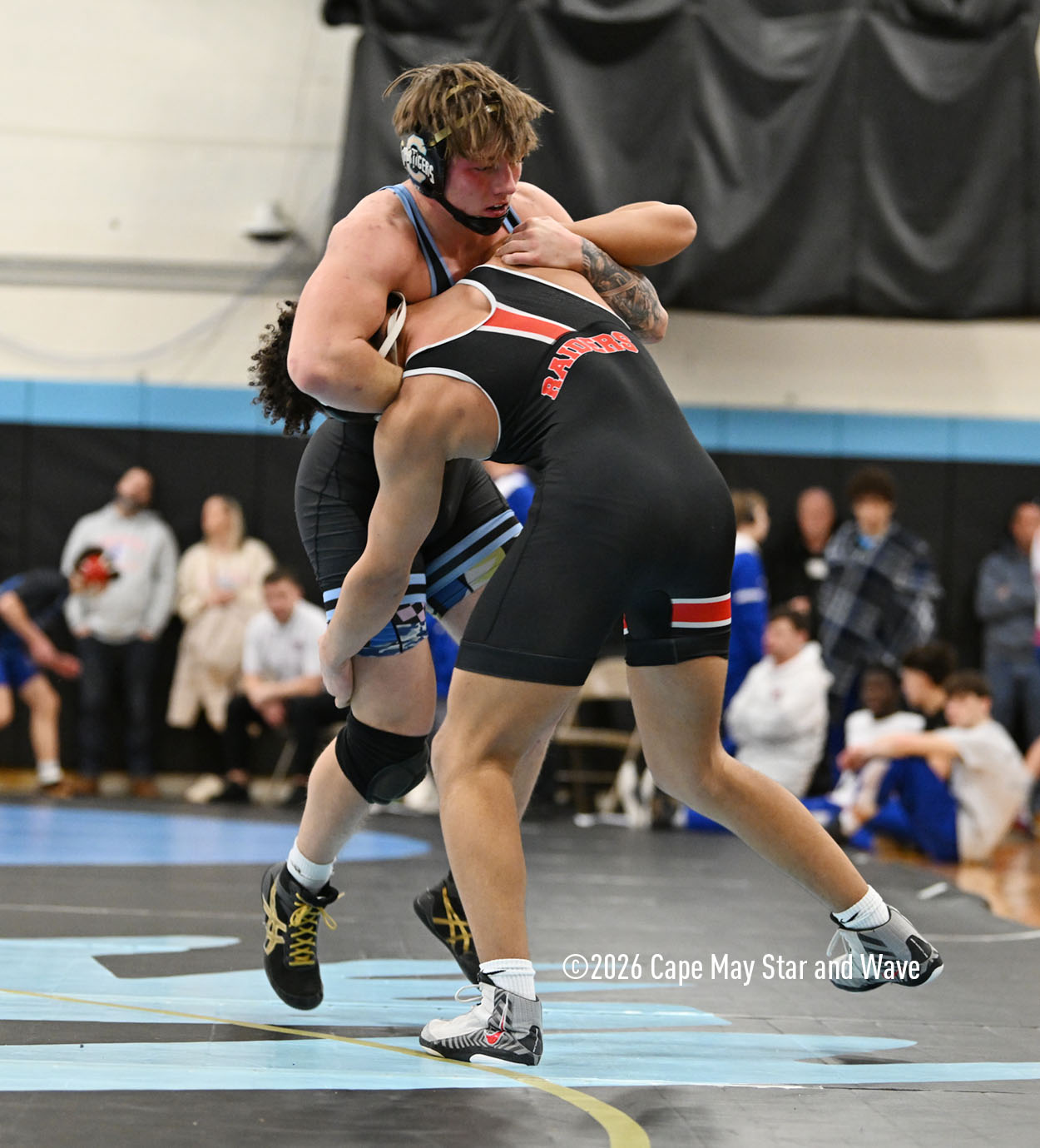 Ocean City’s Zarian Cabalo won a 6-0 decision over Ashton Ray at 165 pounds, but LCMR’s Shane Morrell (175) put 6 more points on the board with a pin of Ethan Miura at the 2:13 mark, pushing the Caper Tiger lead to 30-6.
